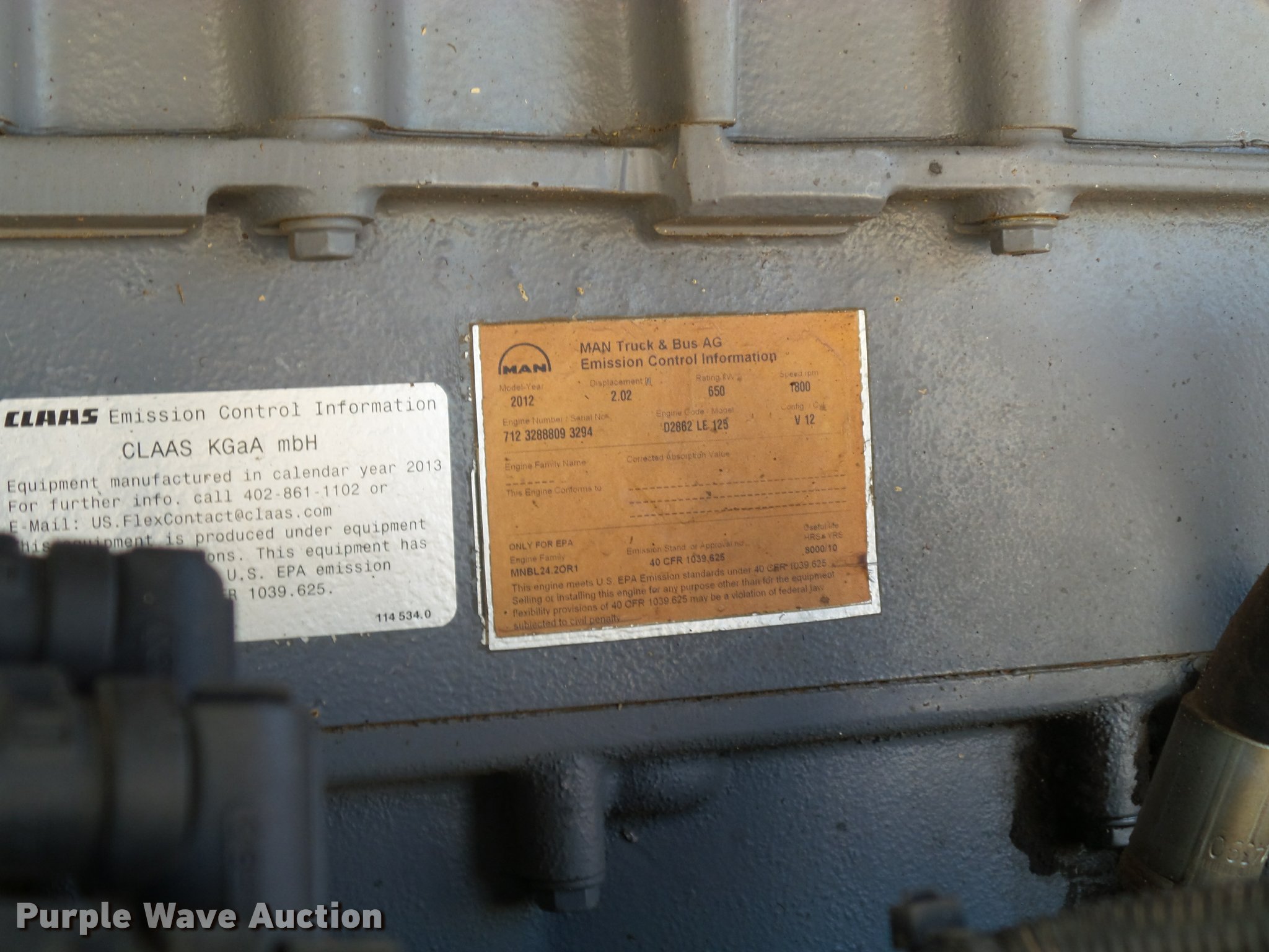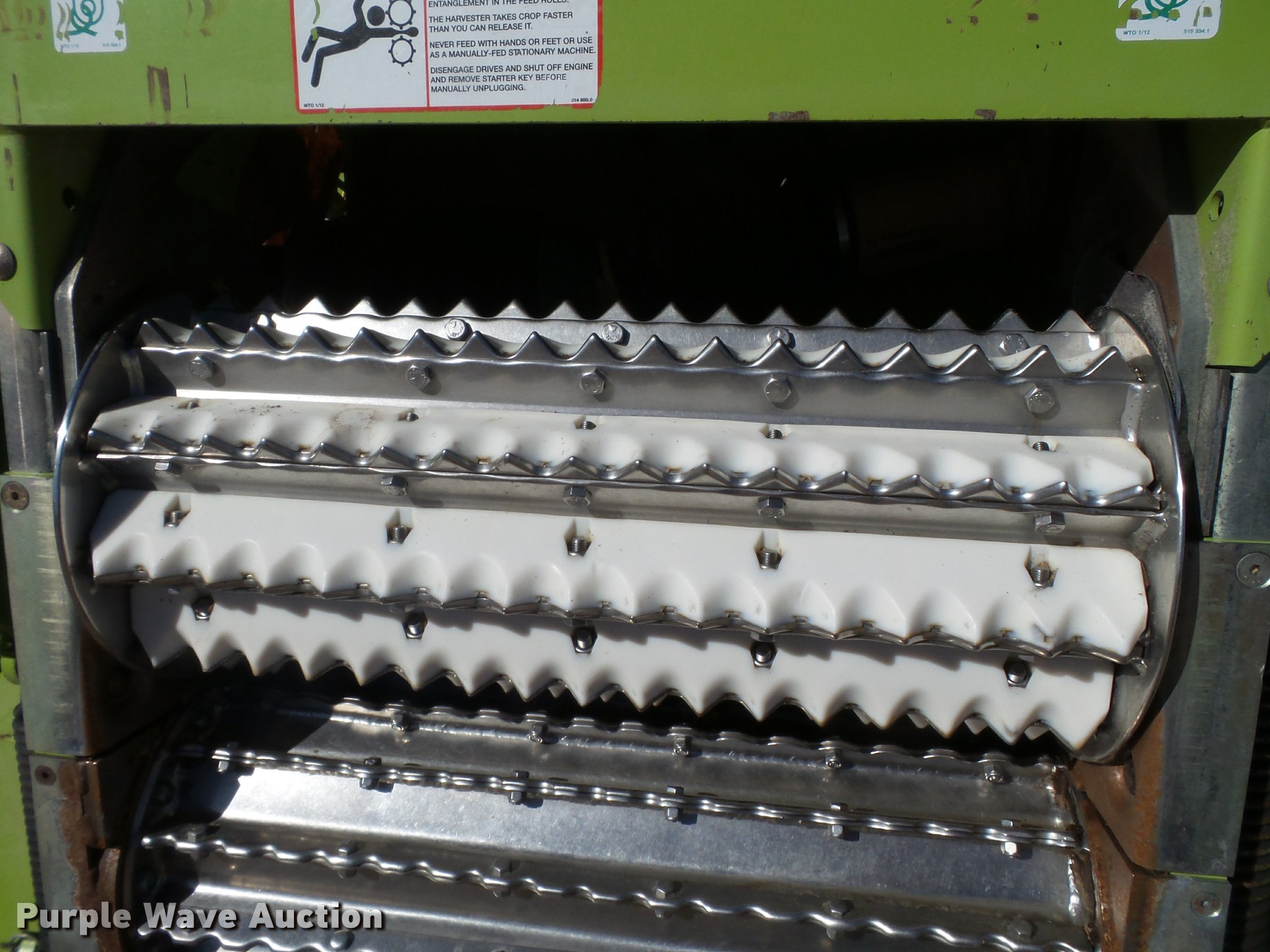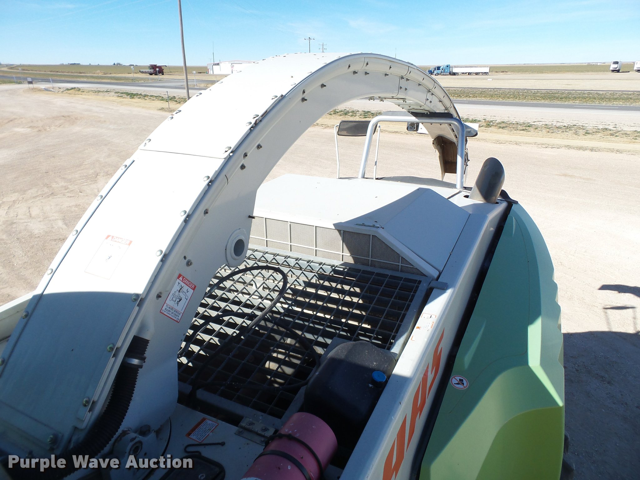Purple Wave is selling a used Forage Harvester in Texas. This item is a 2013 Claas 980 forage harvester with the following: 2,094 engine hours on meter, 1,499 cutter hours on meter, Mann 12 cylinder turbo diesel engine, 650 kW, Serial 71232888093294, Hydrostatic transmission, AC and heat, Tilt steering wheel, AM/FM, Air suspension seat, Instructor's seat, On-board air, Kernal processor, Auto lube, High arch hydraulic adjust spout, Operator manual, Large 1000 PTO, Rear hitch, 710/70R38 front tires, 600/65R28 rear tires