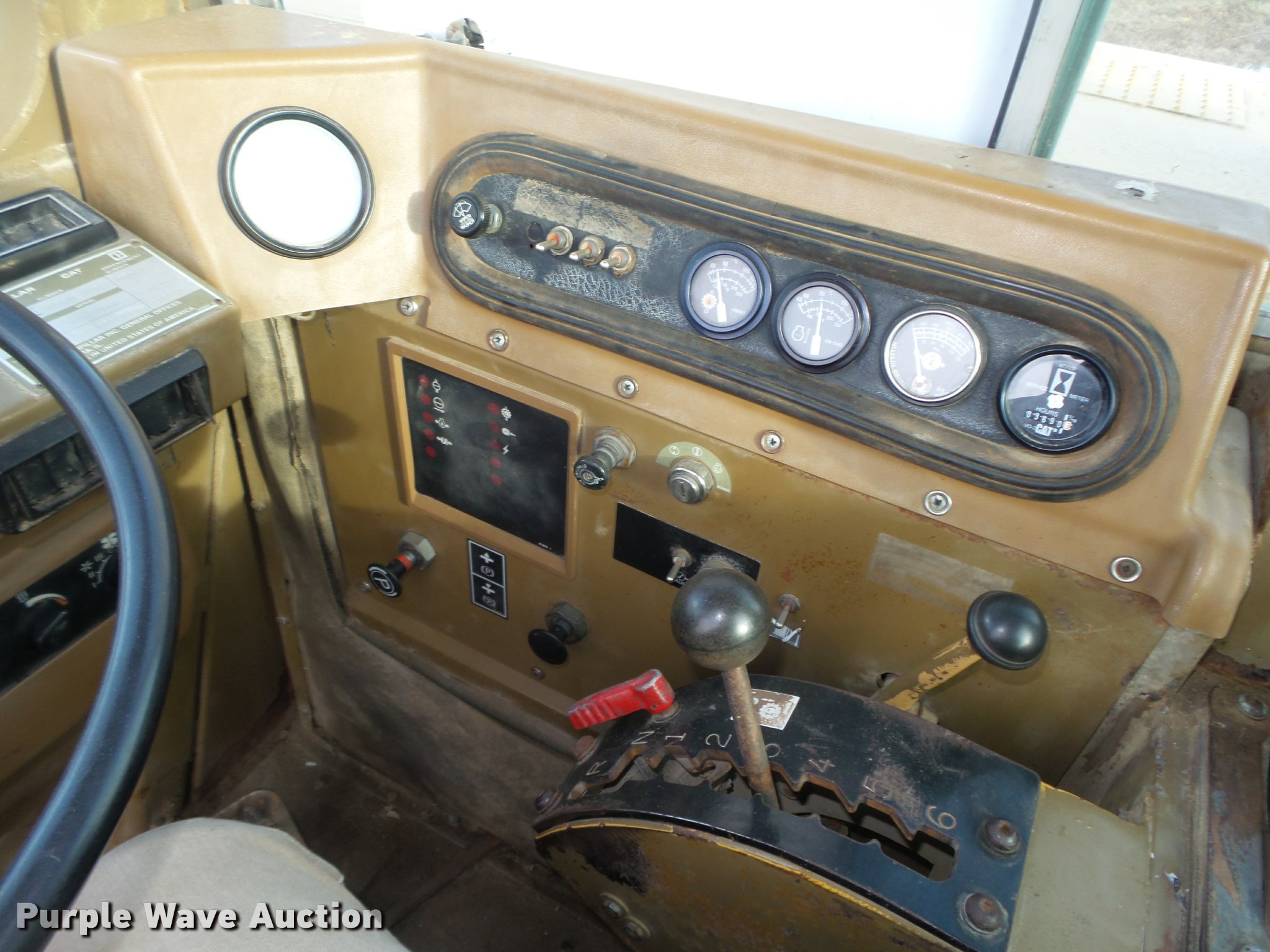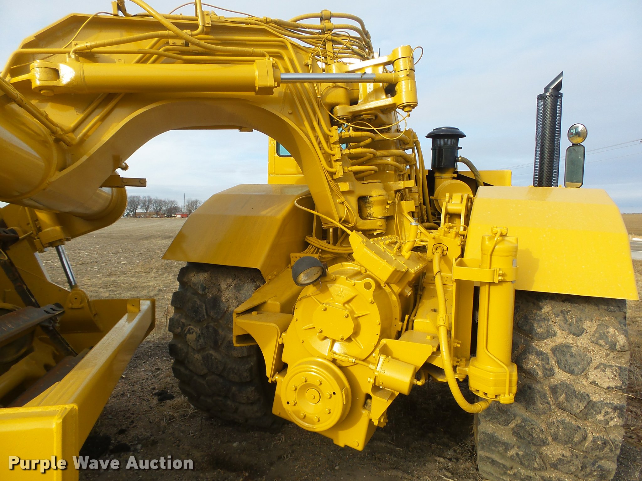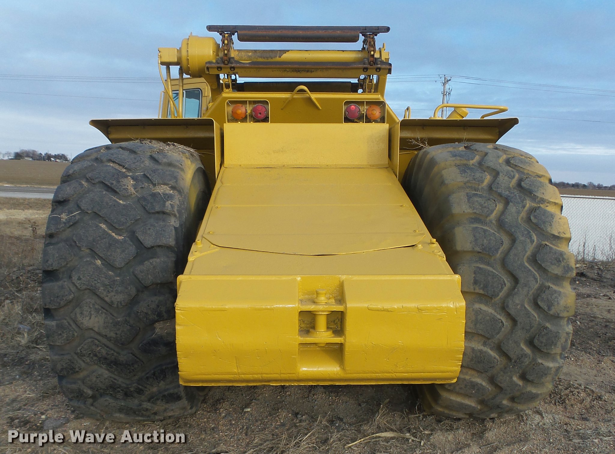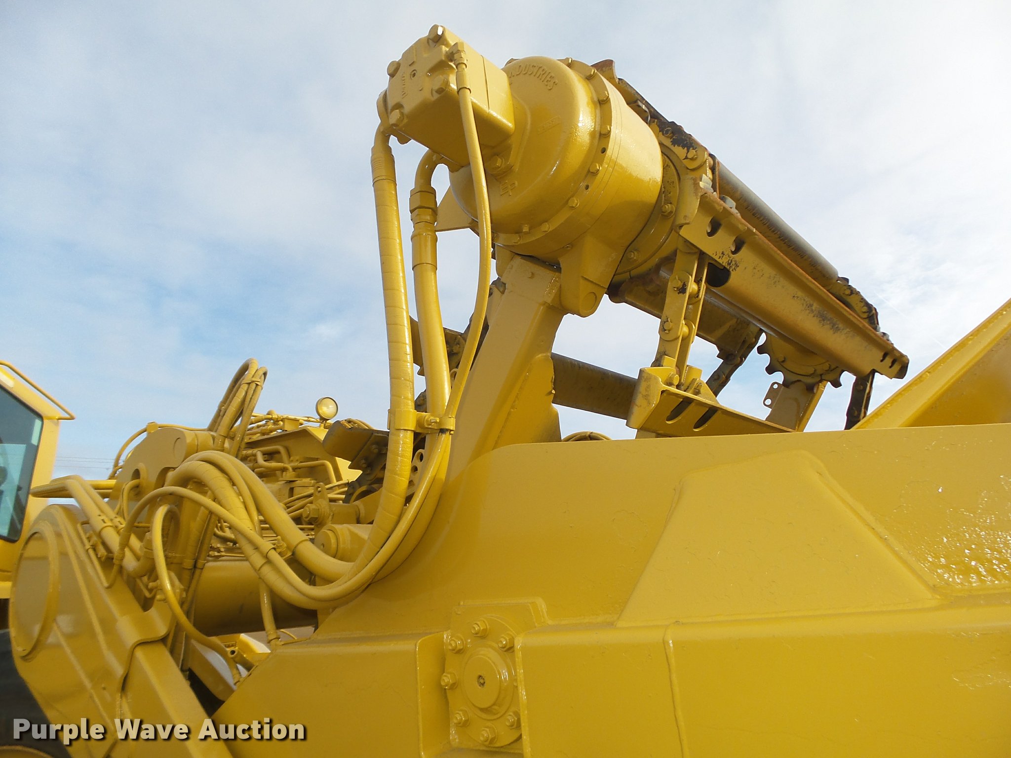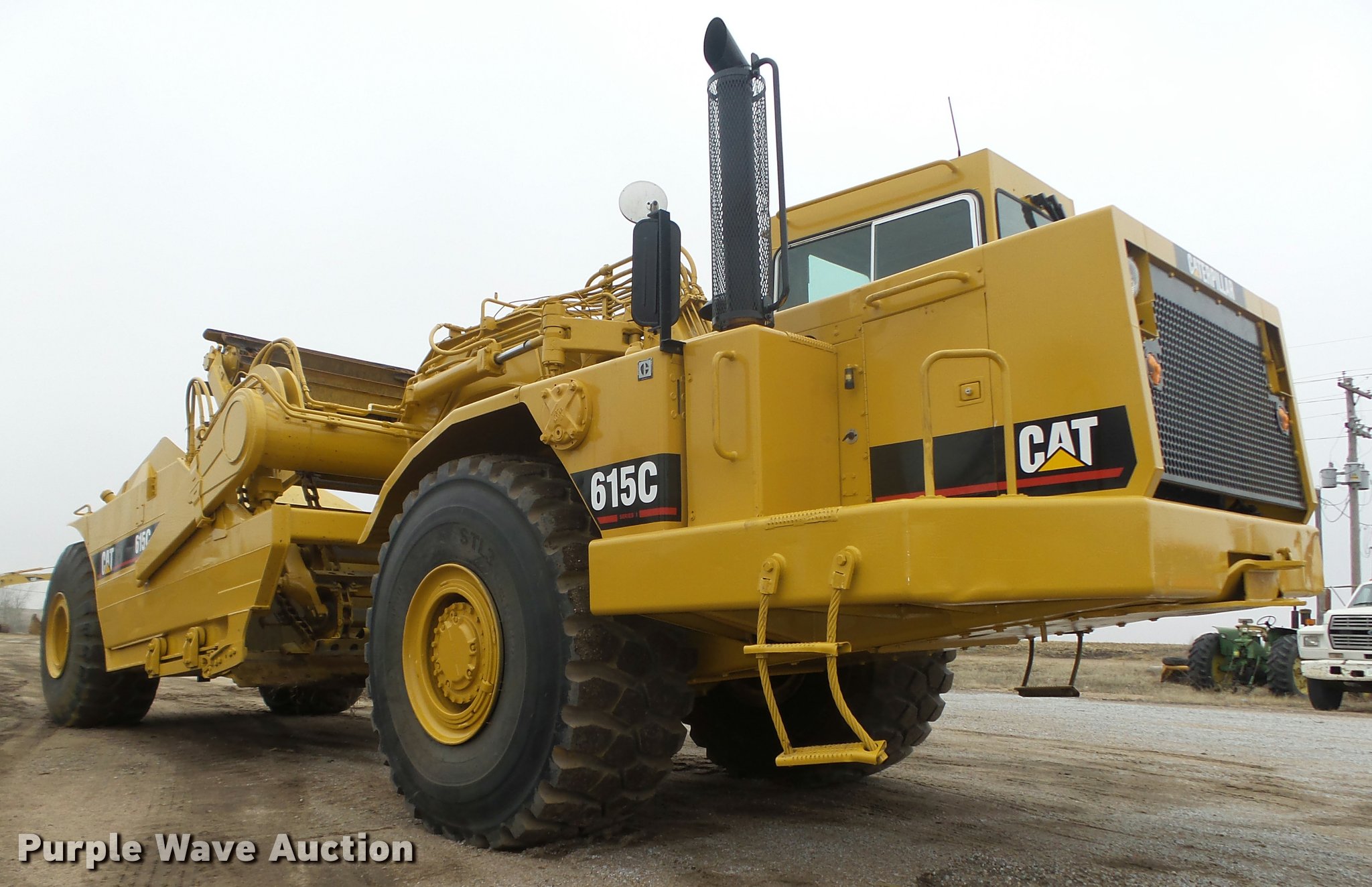 Purple Wave is selling a used Elevating Scraper in Nebraska. This item is a Caterpillar 615C Series I elevating scraper with the following: 3,691 hours on meter, Caterpillar 3306 six cylinder diesel engine, Serial 08Z51771, Powershift transmission, 6F-1R, Serial 4WAD1353, Arrangement No. 8P7900, Differential lock, Enclosed cab, AC and heat, AM/FM/cassette, 103"W I.D. bowl, 78"W paddle, Rear pin hitch, 29.5R25 tires, Serial 5TF00242
