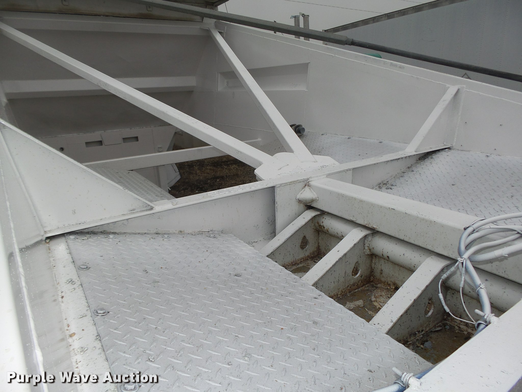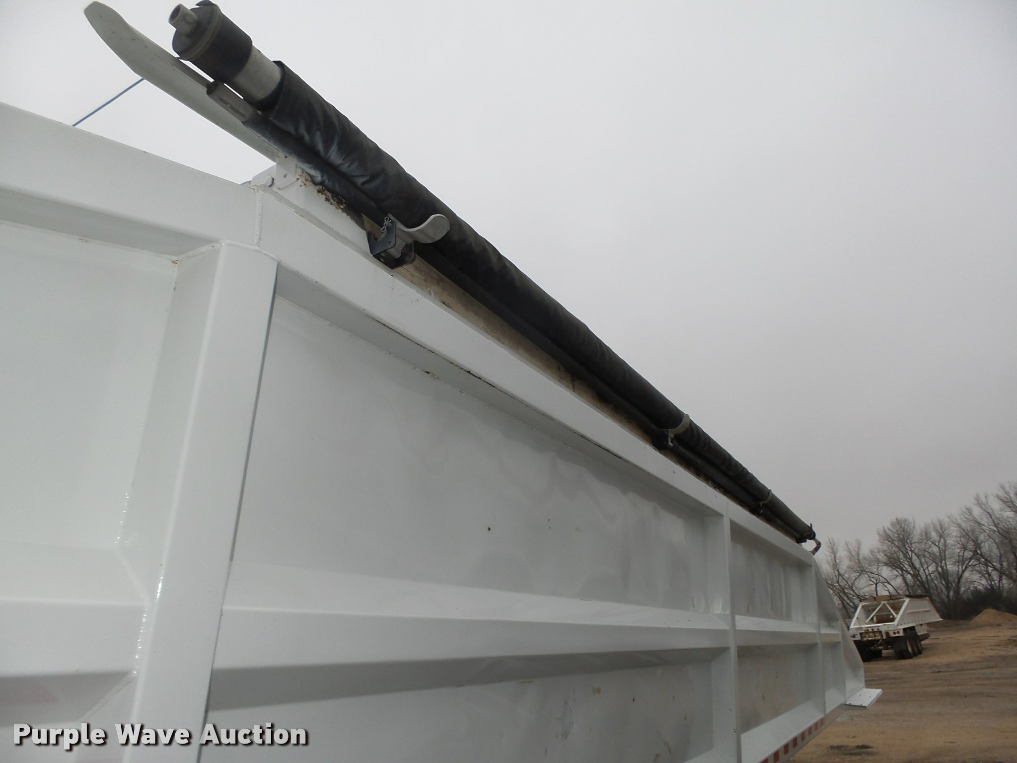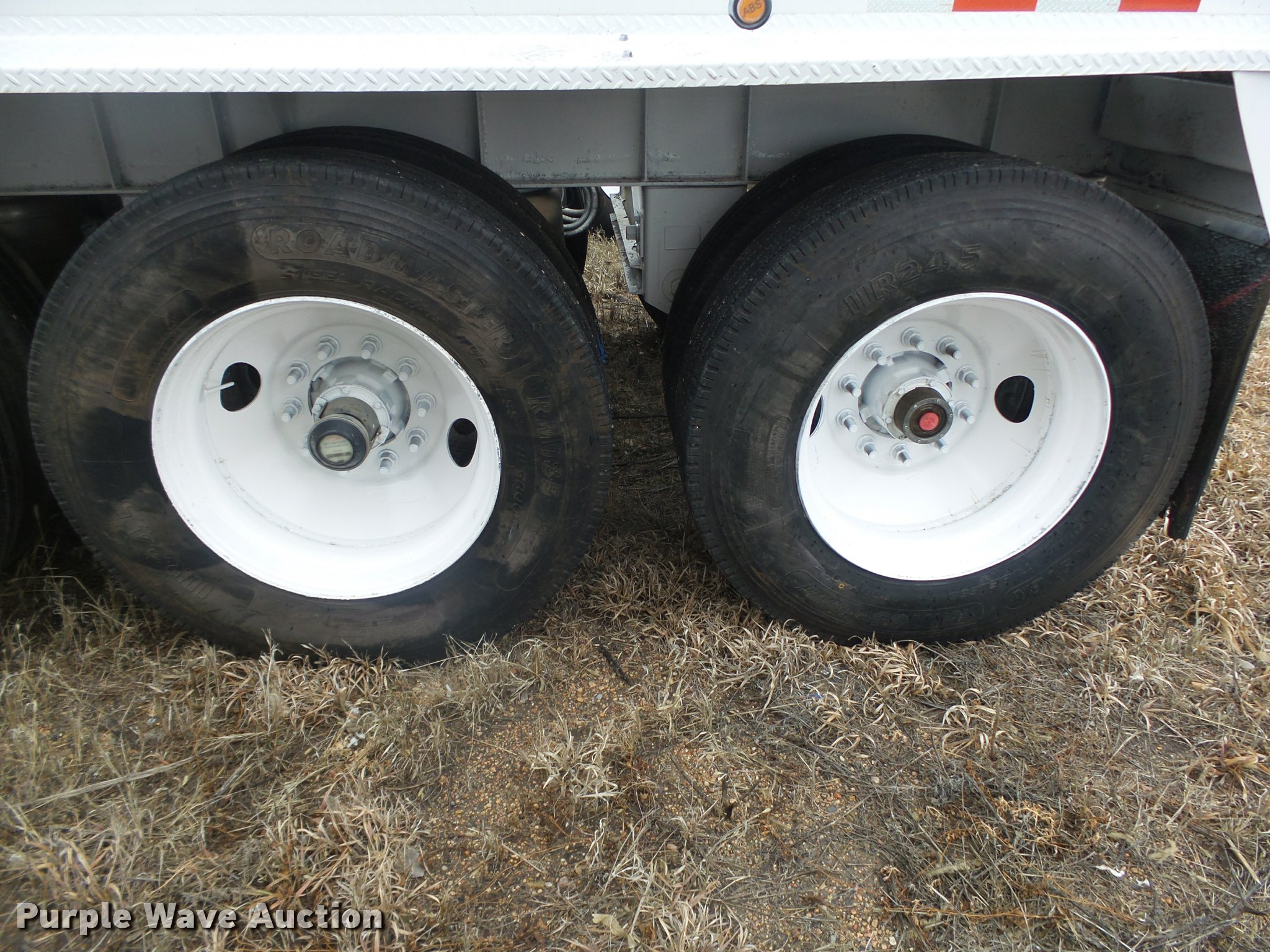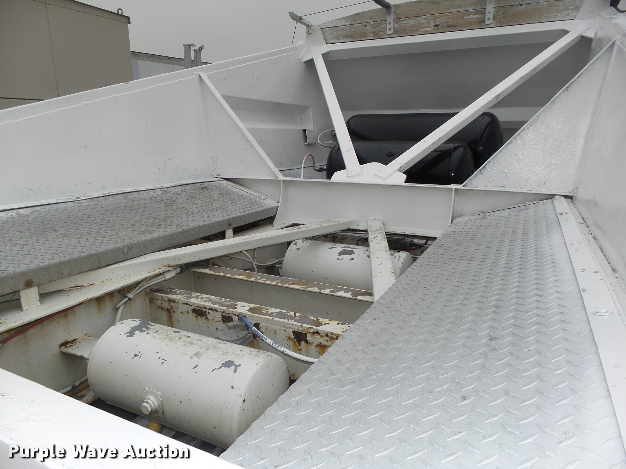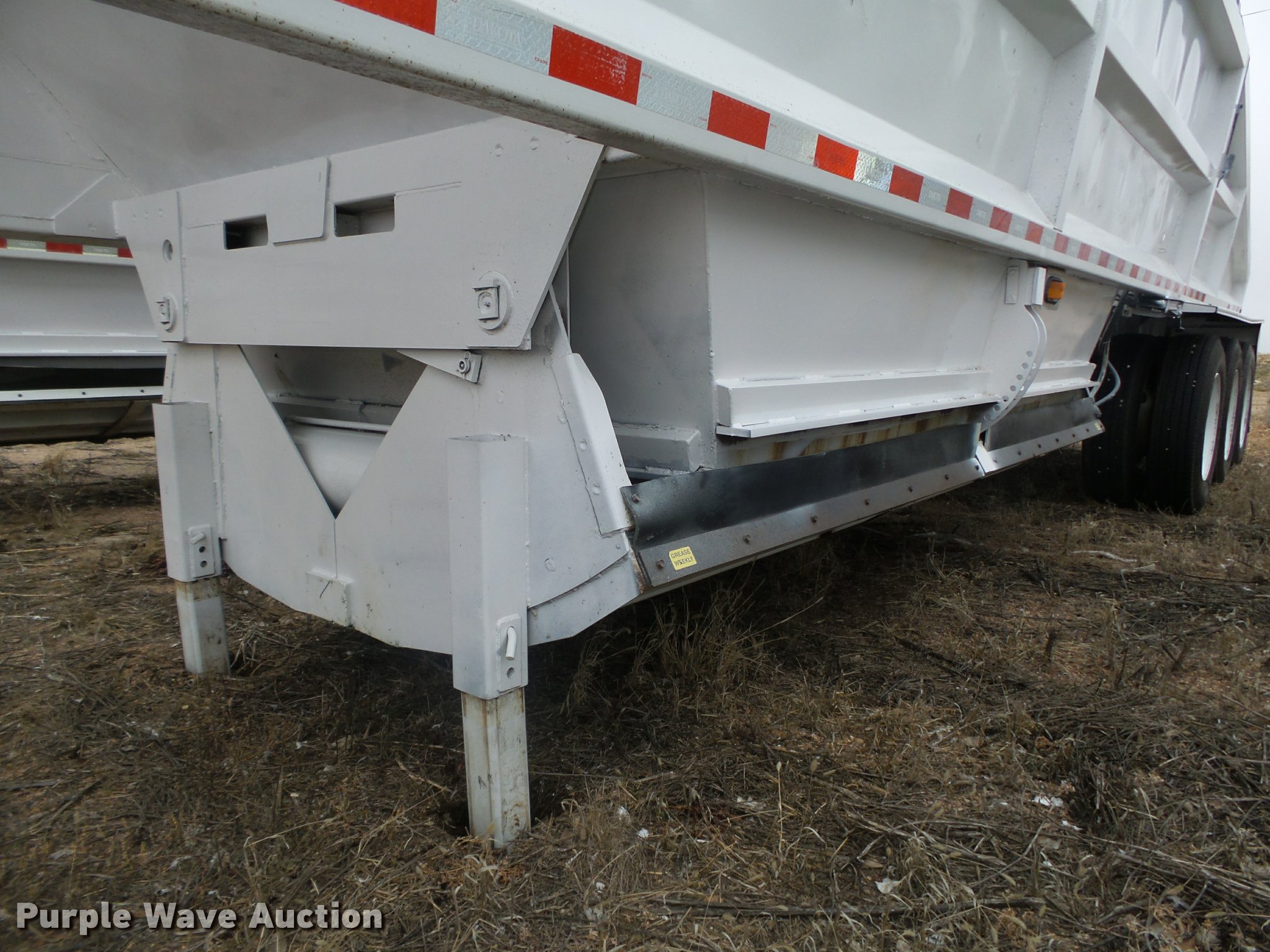 Purple Wave is selling a used Bottom Dump Trailer in Nebraska. This item is a 2012 Dakota 4300BDT bottom dump trailer with the following: 45' overall length, 43'L x 96"W, 2" x 6" side boards, Dual hydraulic cylinders, Air operated clamshell gate, Manual tarp, Rear push block, Trailer controls, Dual leg landing gear, Fifth wheel plate, Triple axle, Four pin and seven pin trailer wiring, Gladhand connectors, Air suspension, Air brakes, Steel wheels, 11R24.5 tires, GVWR 66,000 lbs, GAWR 20,000 lbs, Serial 1111-0175, Unit# 246