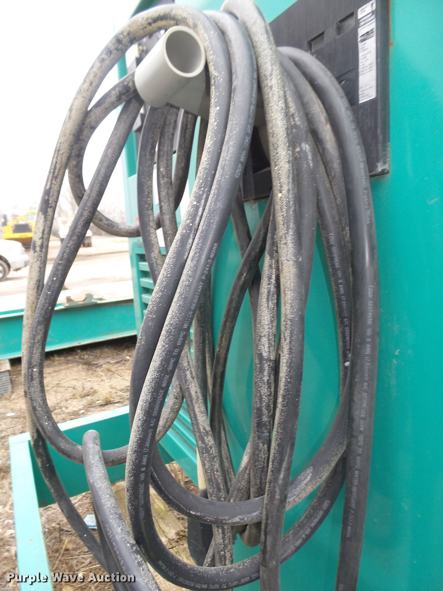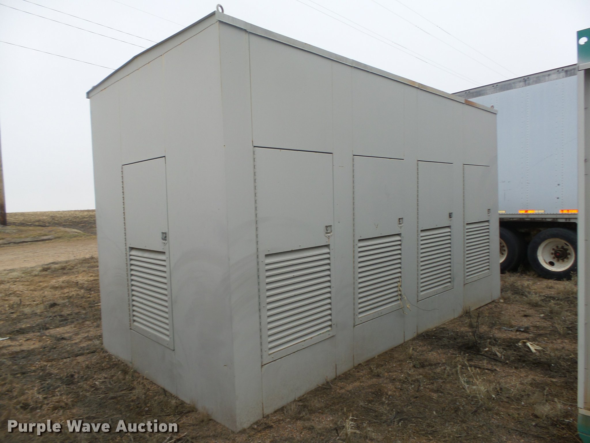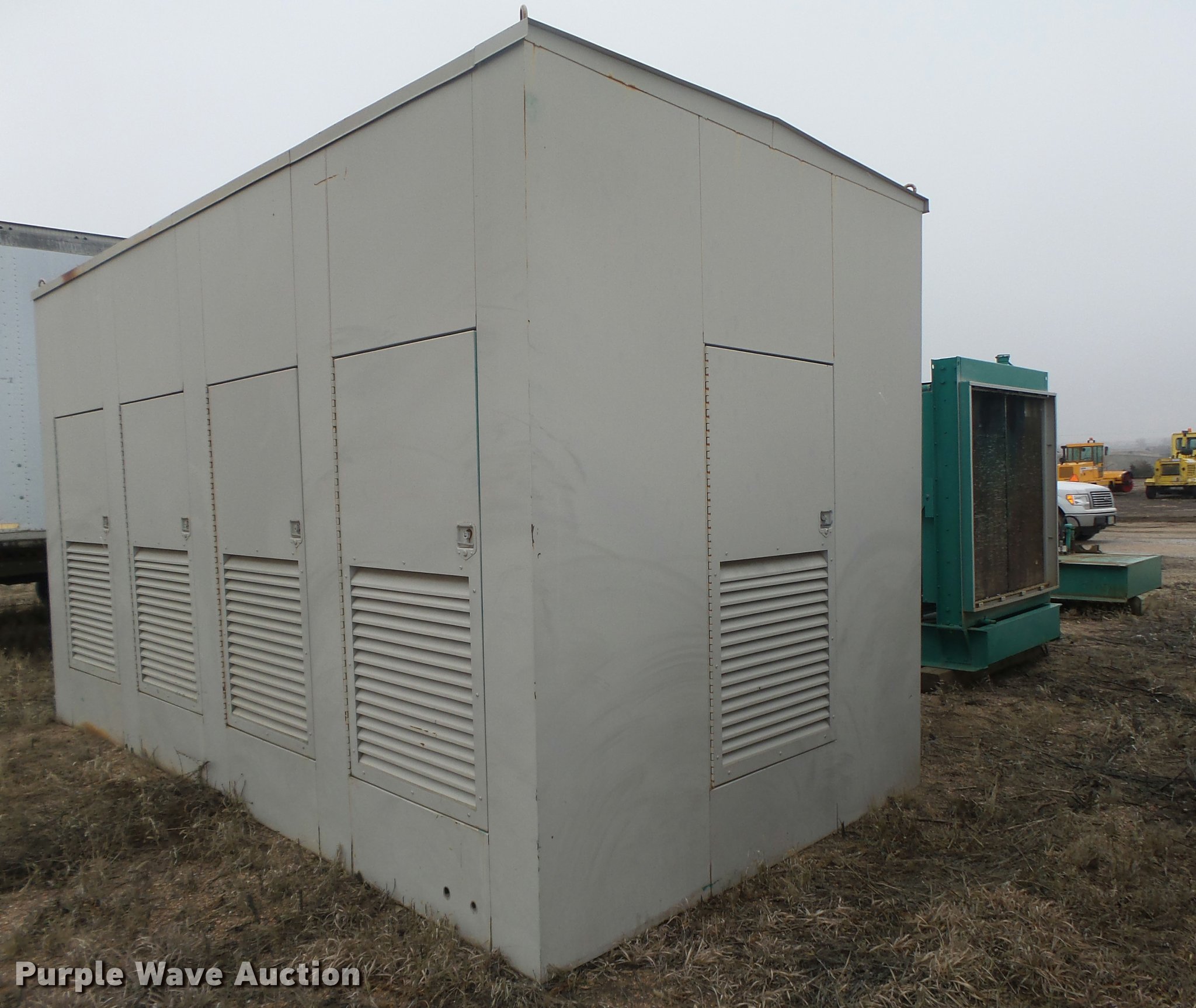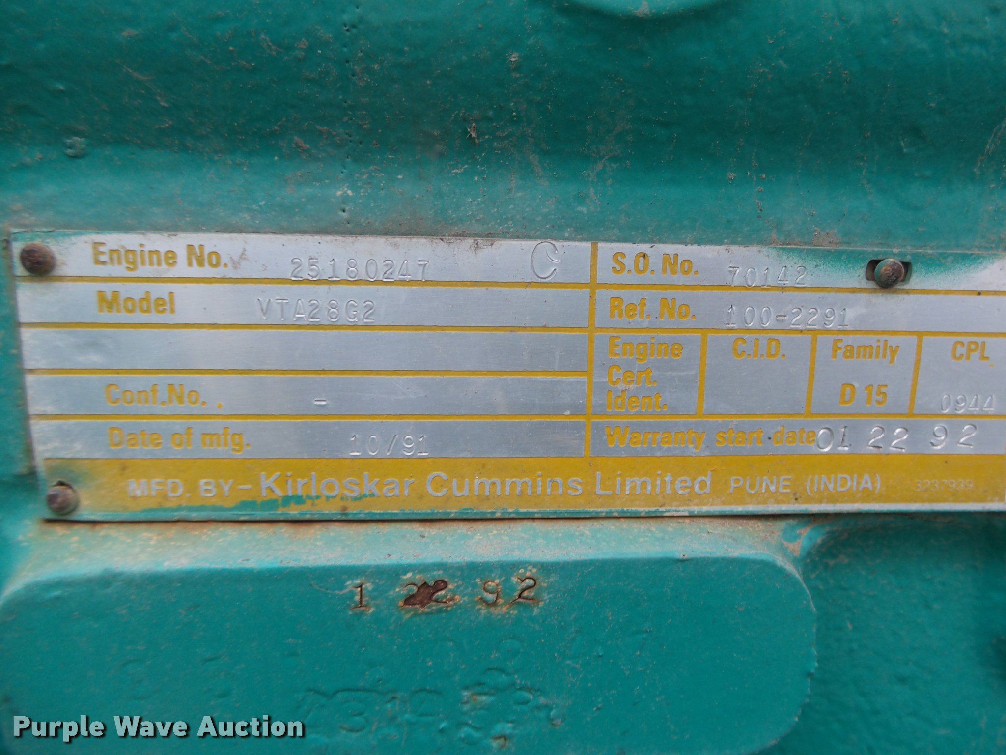 Purple Wave is selling a used Generator Set in Nebraska. This item is a 1991 Cummings Onan 600DFGB generator set with the following: 597 hours on meter, Cummins VTA28G2 eight cylinder turbo diesel engine, 900 HP, Serial 25180247, Onan generator, Control panel, Electric start, Integrated Lowe fuel tank removed but included, 14' 1 1/2"L x 5'3"W O.D., Fuel hose, Piping, 600 kW, Single and three phase, 14'2"L x 72"W x 90"H O.D. main unit, Removable exhaust stack, Approximately 200"L x 102"W x 118"H O.D. enclosure, Side and end doors, Vents, 600V 8AWG SE00W/SCE electrical cord, Four prong adapter, Serial J910431458