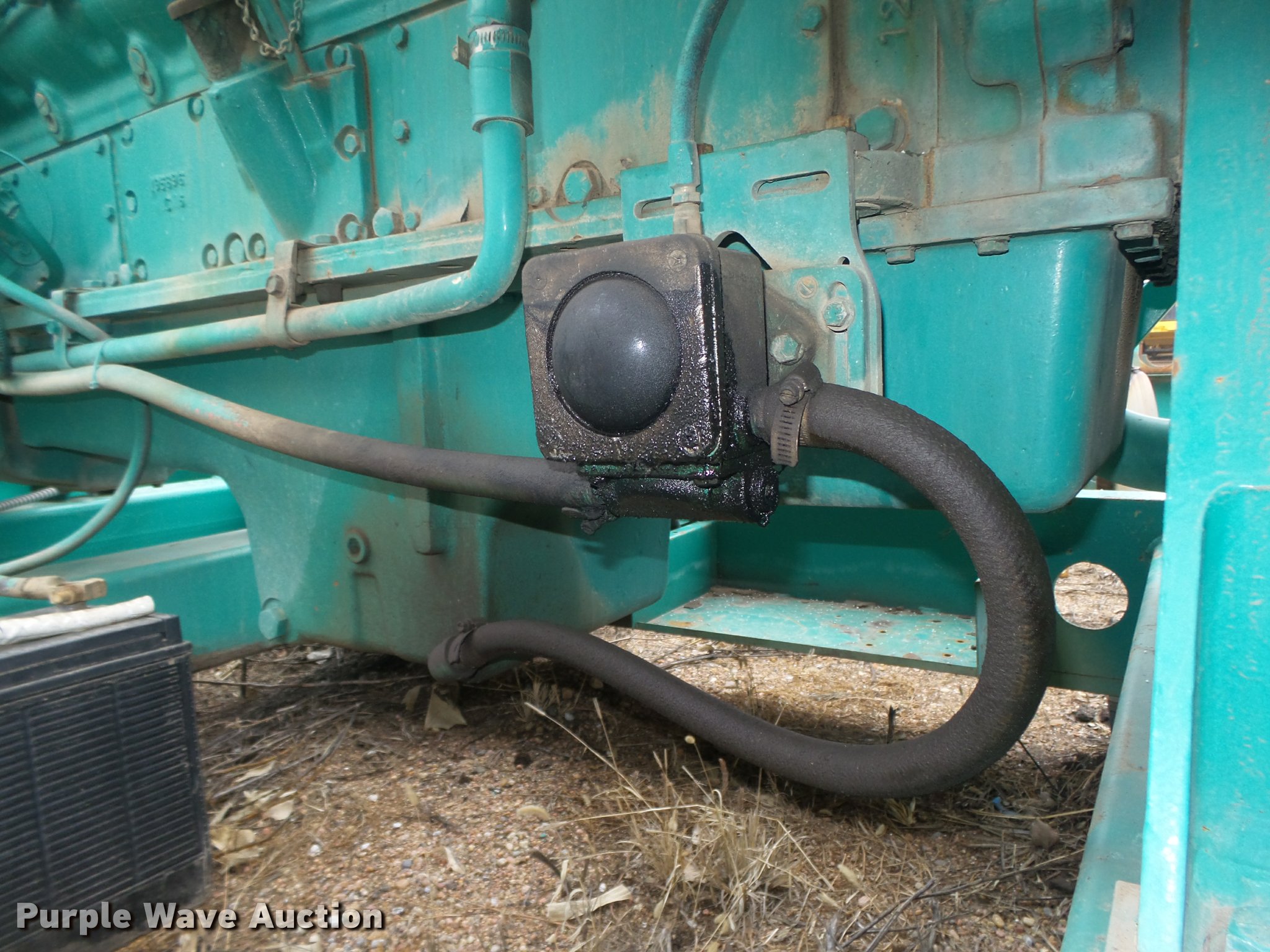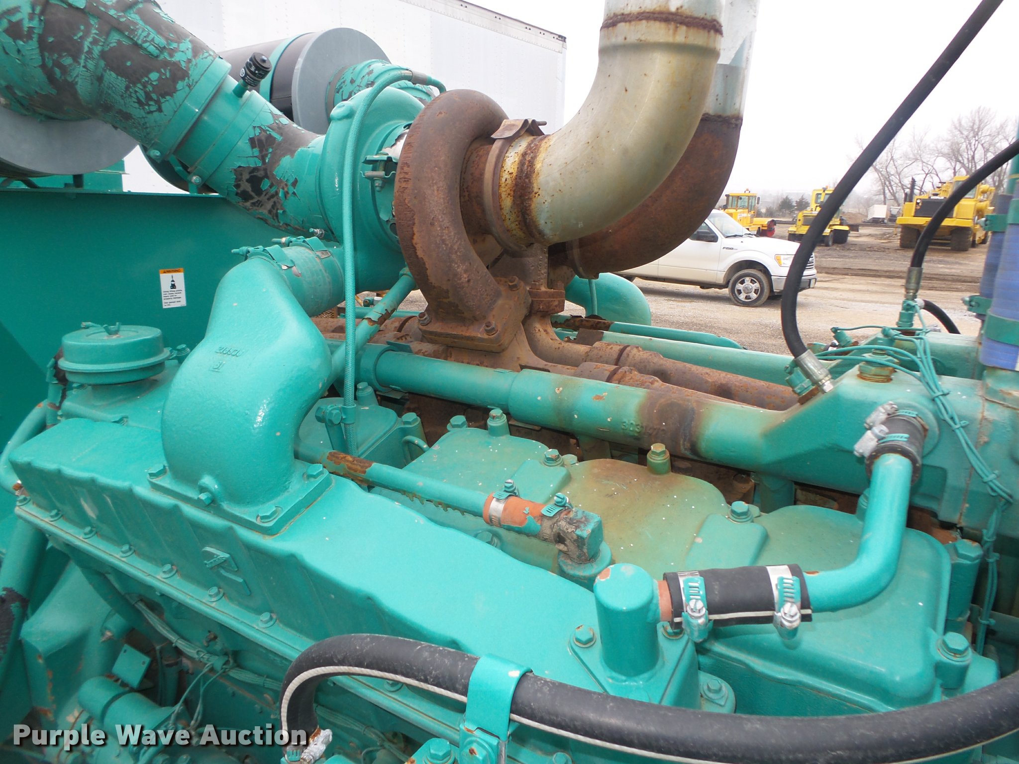 1991 Cummings Onan 600DFGB generator set. 597 hours on meter, Cummins VTA28G2 eight cylinder turbo diesel engine 900 HP, Serial 25180247, Onan generator Control panel, Electric start, Integrated Lowe fuel tank removed but included 14' 1 1/2"L x 5'3"W O.D., Fuel hose, Piping, 600 kW, Single and three phase, 14'2"L x 72"W x 90"H O.D. main unit, Removable exhaust stack, Approximately 200"L x 102"W x 118"H O.D. enclosure Side and end doors, Vents, 600V 8AWG SE00W/SCE electrical cord Four prong adapter, Serial J910431458. Vontz Paving - Open inspection February 22. 2355 W. Highway 6. Hastings, NE 68901