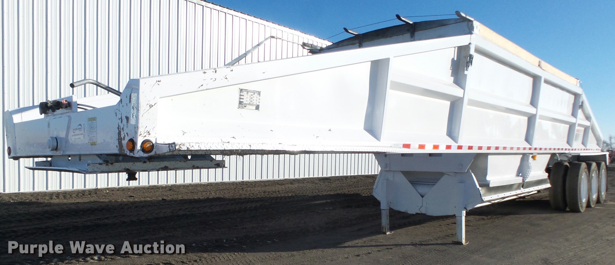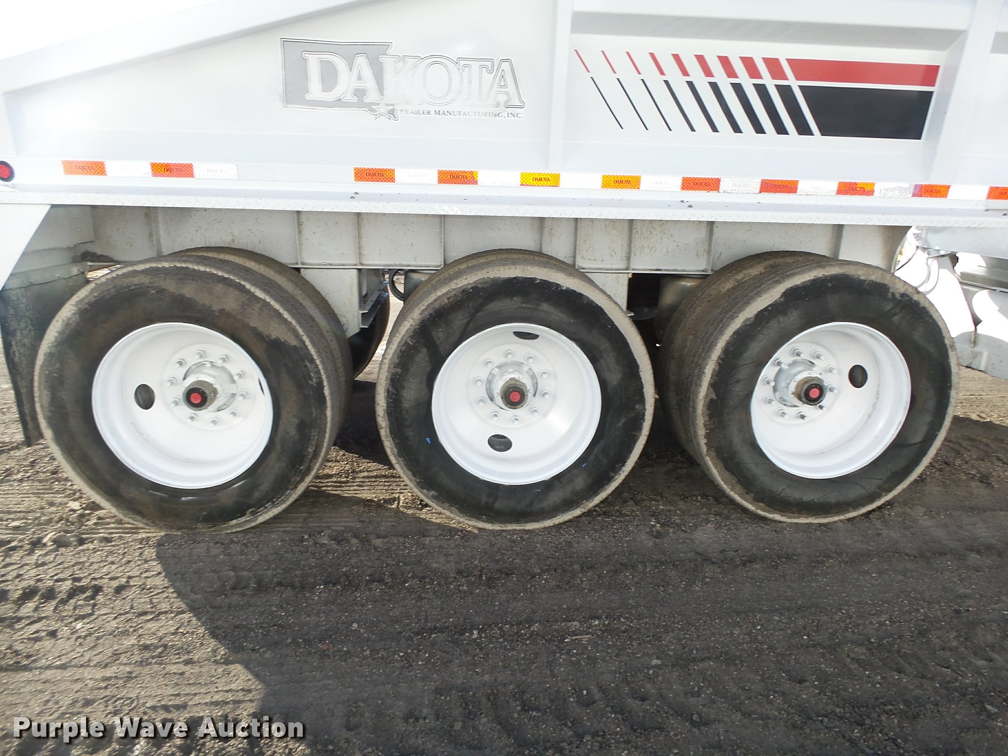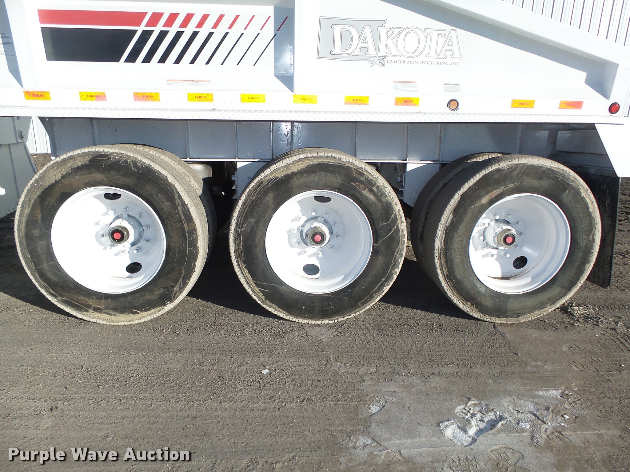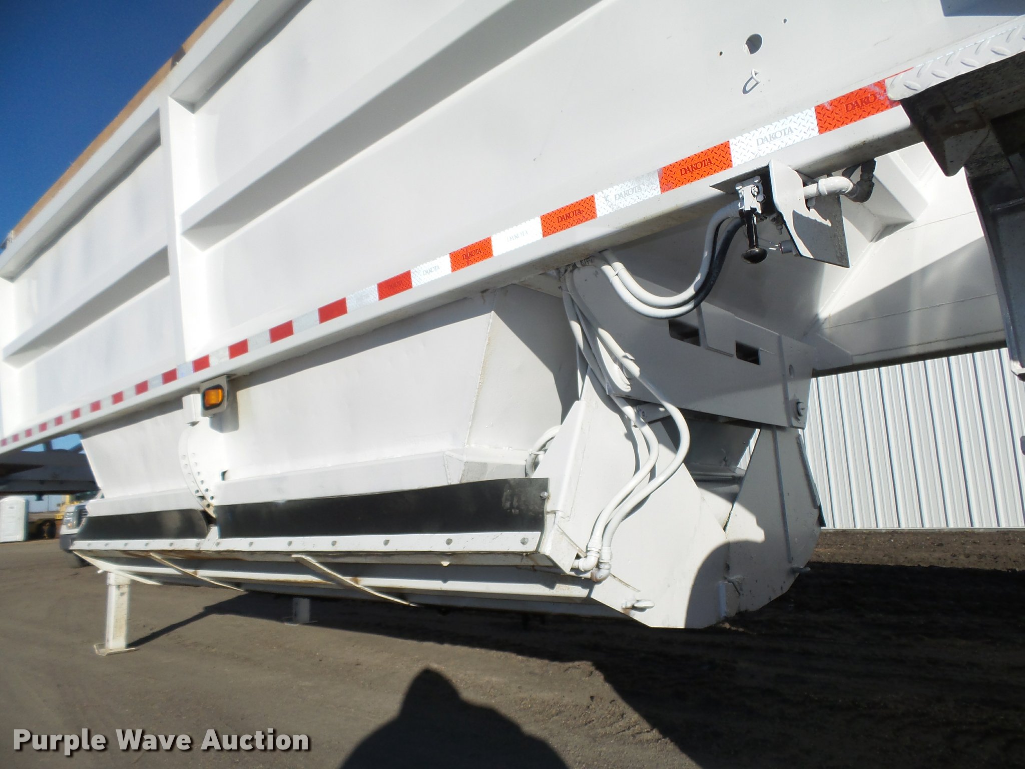 Purple Wave is selling a used Bottom Dump Trailer in Nebraska. This item is a 2013 Dakota 4300BDT bottom dump trailer with the following: 45'L x 96"W overall, 43'L body, Dual hydraulic cylinders, Air operated clamshell gate, Rear push block, Manual tarp, 2" x 6" side boards, Steel construction, Fifth wheel plate, Dual leg landing gear, Air brakes, Air suspension, Triple axle, Steel wheels, 11R24.5 tires, GVWR 66,000 lbs, GAWR 20,000 lbs, Serial 0412-0351, Unit# 250