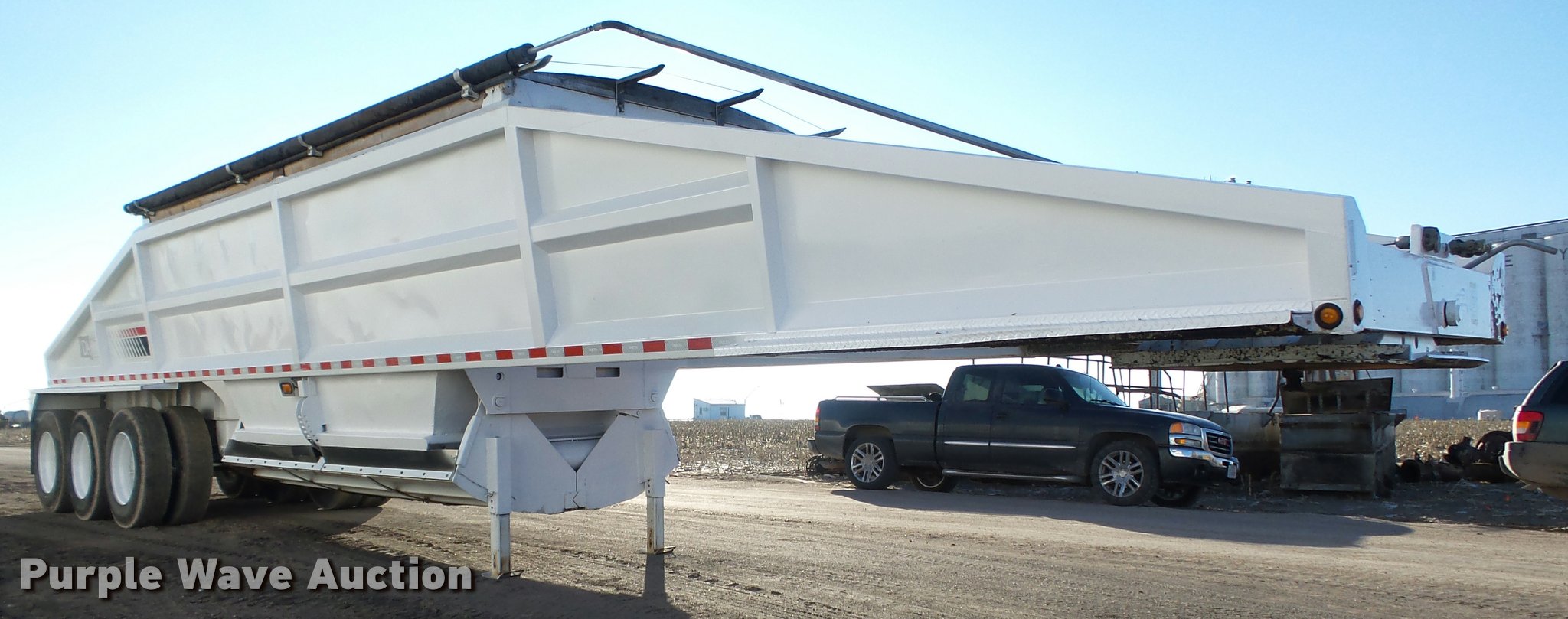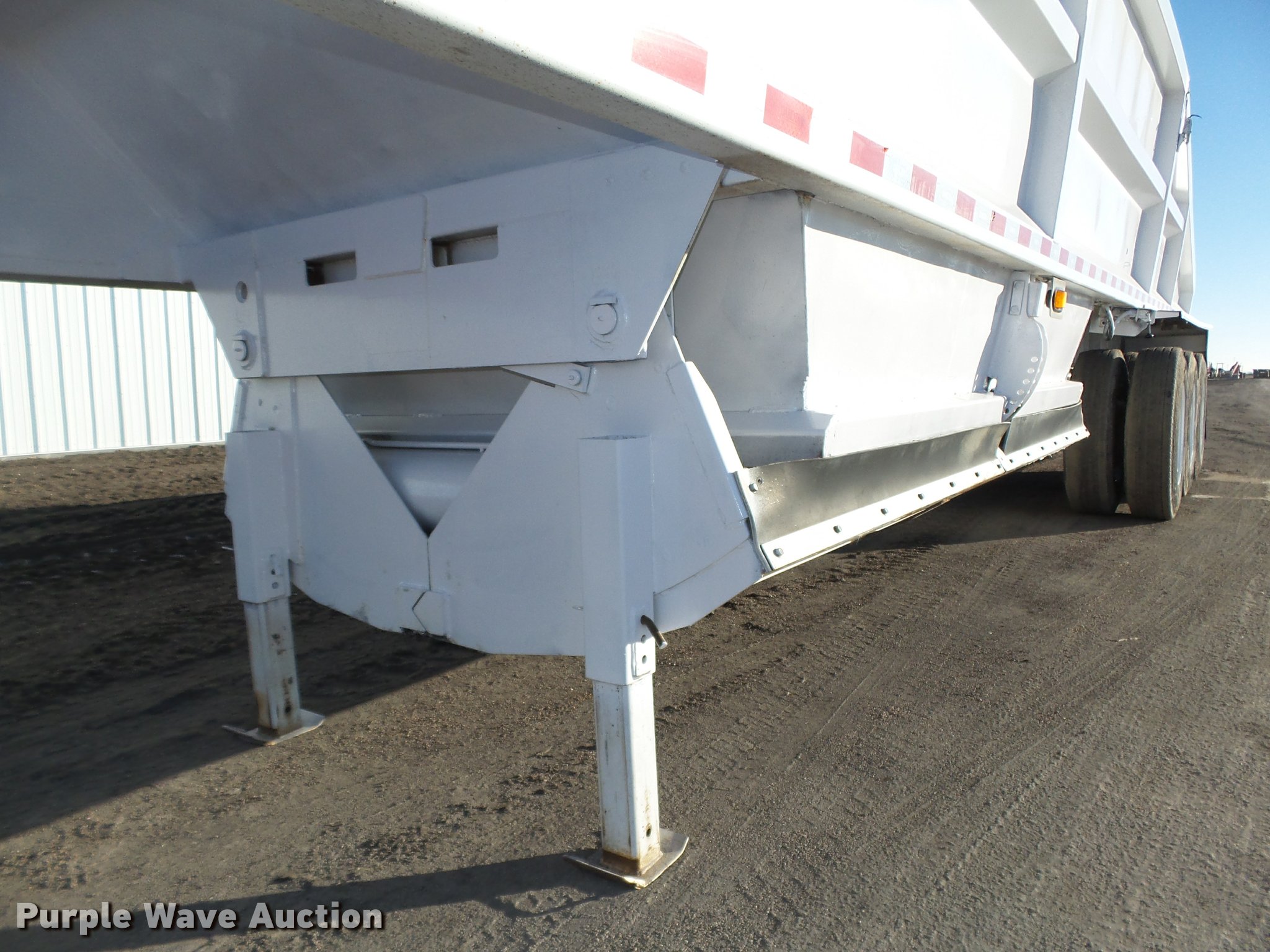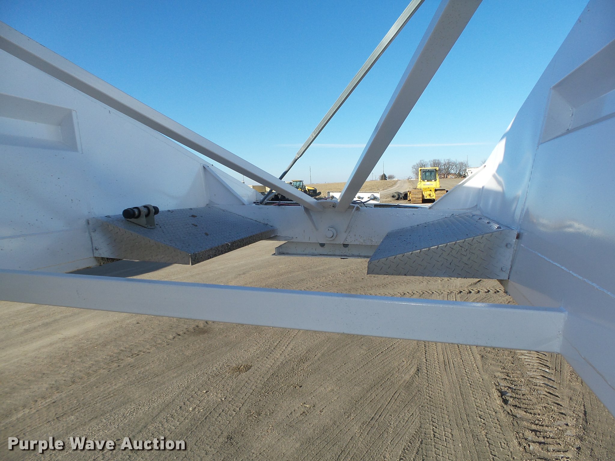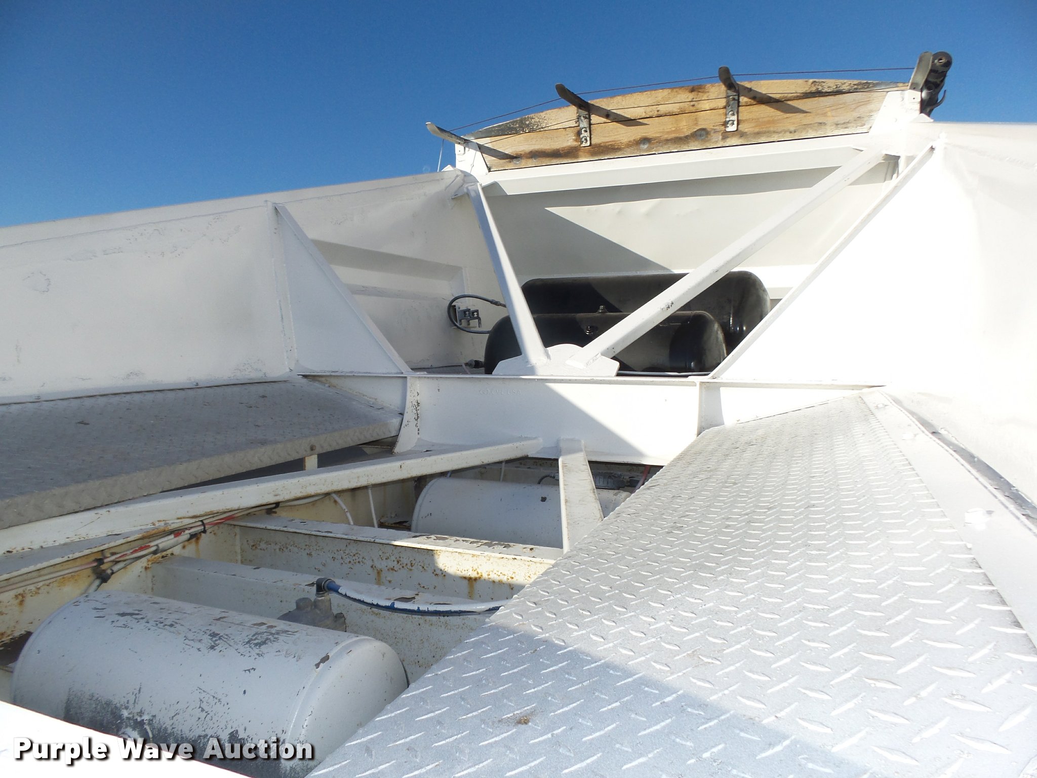 Purple Wave is selling a used Bottom Dump Trailer in Nebraska. This item is a 2013 Dakota 4300BDT bottom dump trailer with the following: 45'L x 96"W overall, 43'L body, Dual hydraulic cylinders, Air operated clamshell gate, Rear push block, Manual tarp, 2" x 6" side boards, Steel construction, Fifth wheel plate, Dual leg landing gear, Air brakes, Air suspension, Triple axle, Steel wheels, 11R24.5 tires, GVWR 66,000 lbs, GAWR 20,000 lbs, Serial 0412-0351, Unit# 250