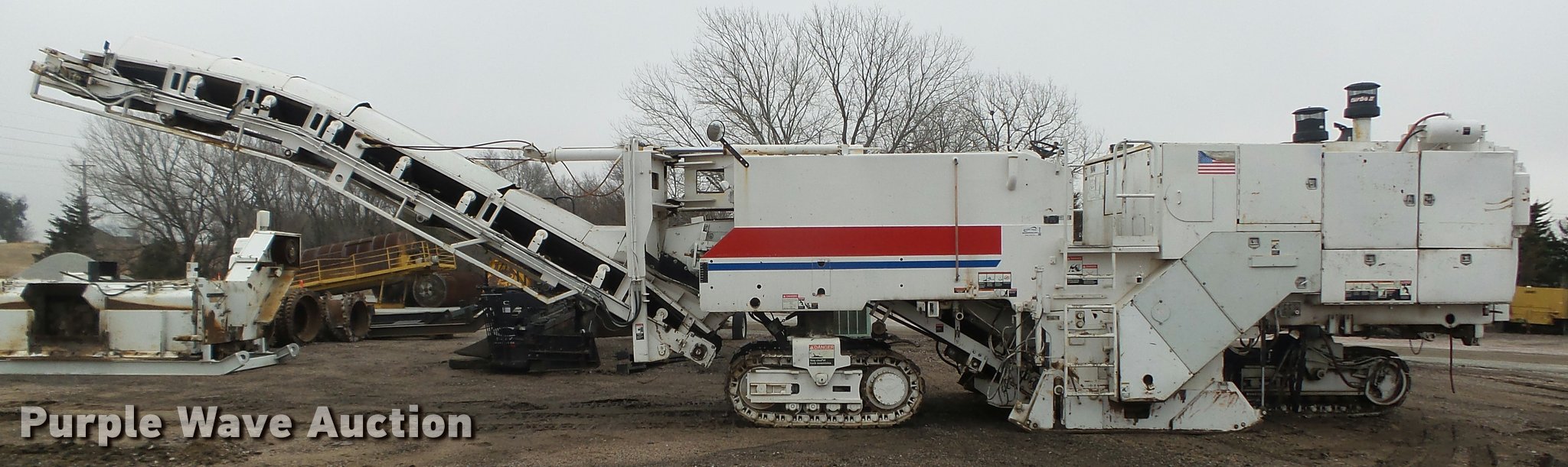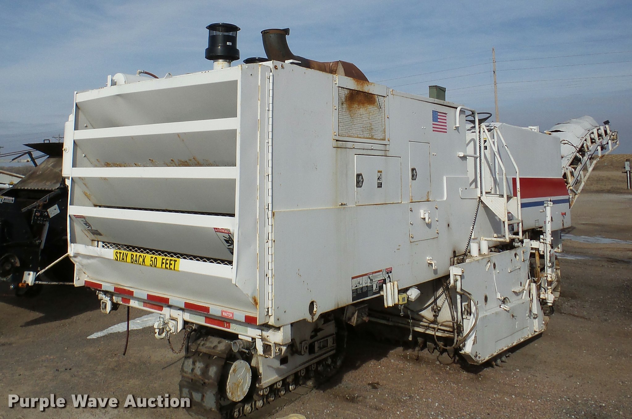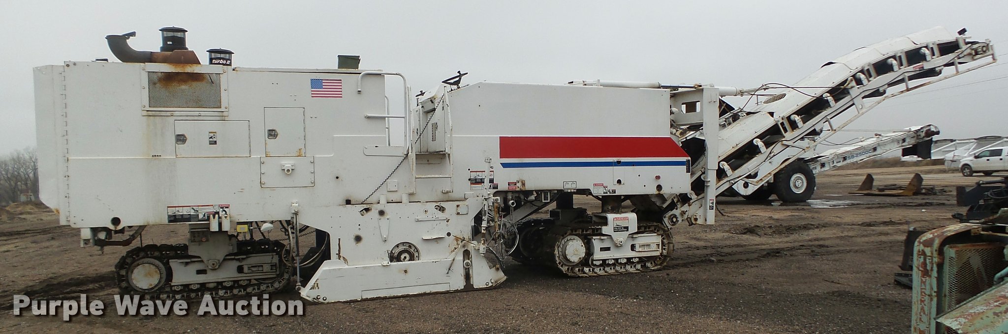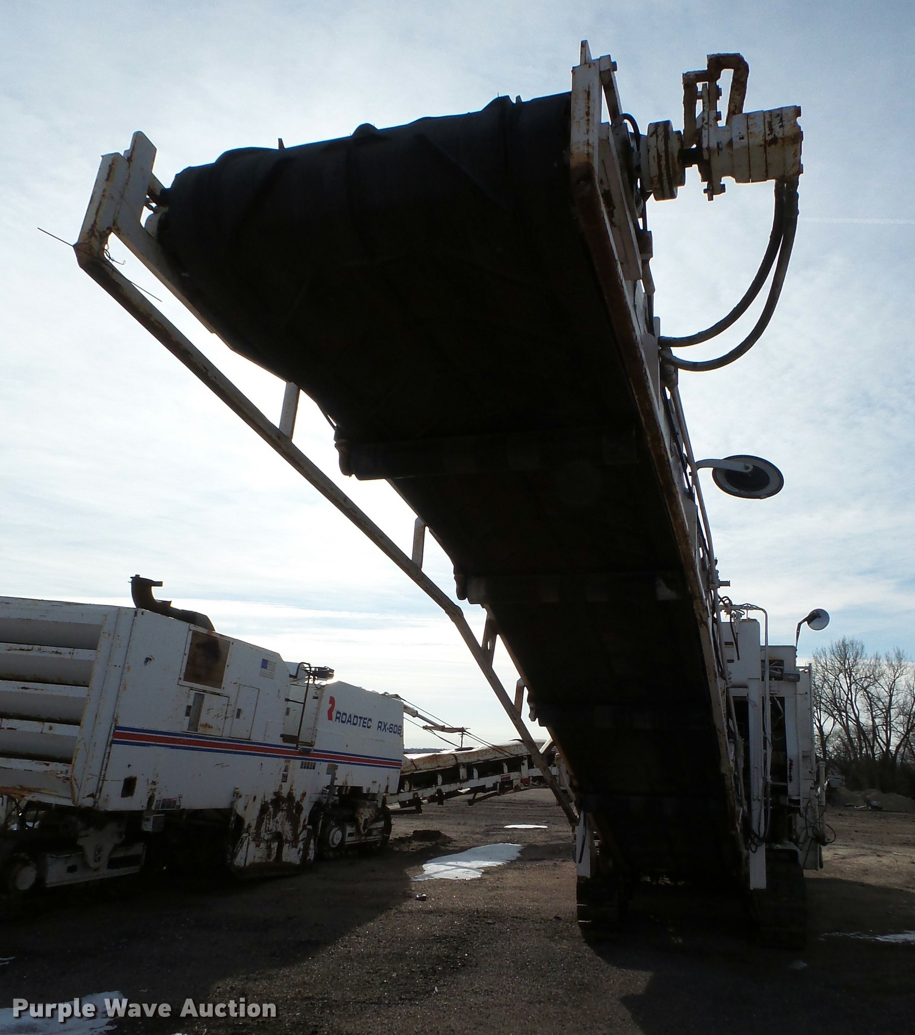 Purple Wave is selling a used Planer or Milling Machine in Nebraska. This item is a 2002 Roadtec RX60C milling machine with the following: Caterpillar 3412 12 cylinder turbo diesel engine, 42"W cleated discharge belt, Approx. 20'L, 8'W drum, Work lights, Pintle hitch, 16"W track pads, Serial RX60C-131, Unit# 1006