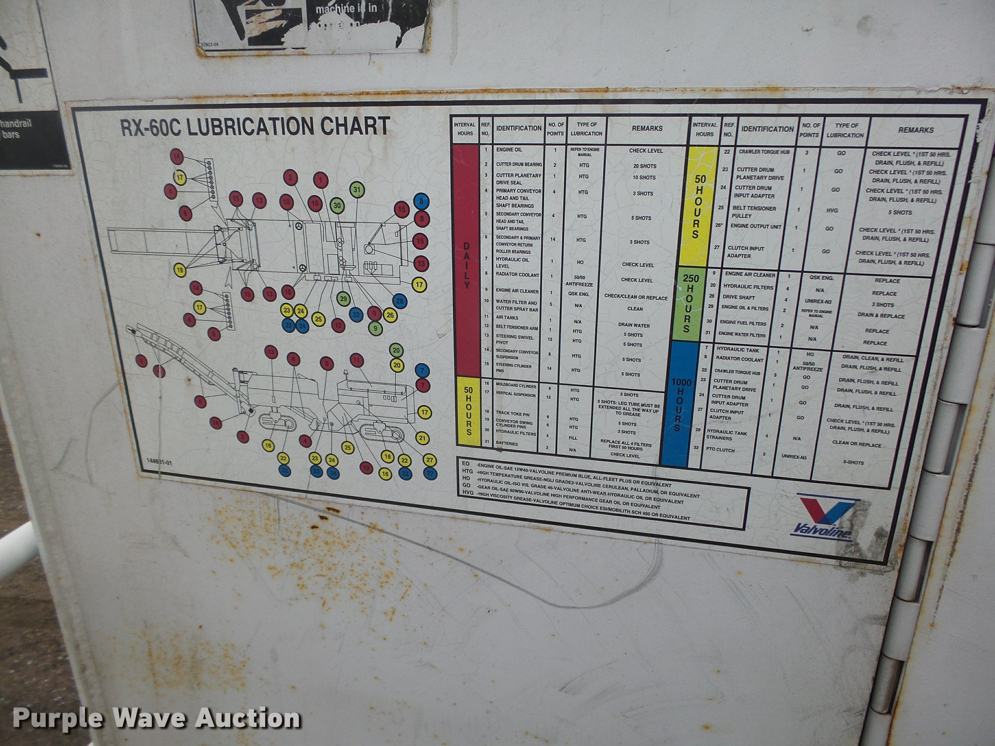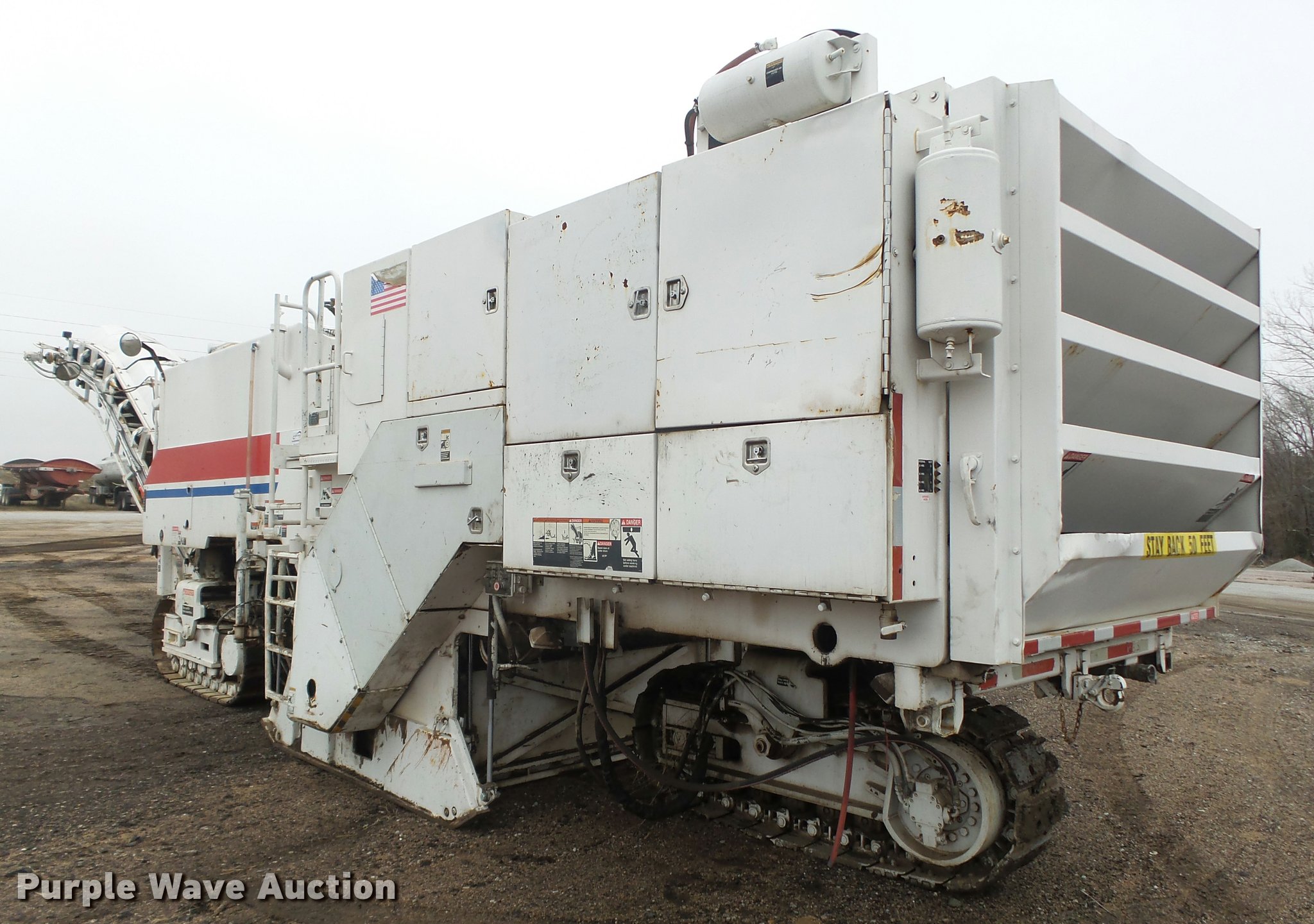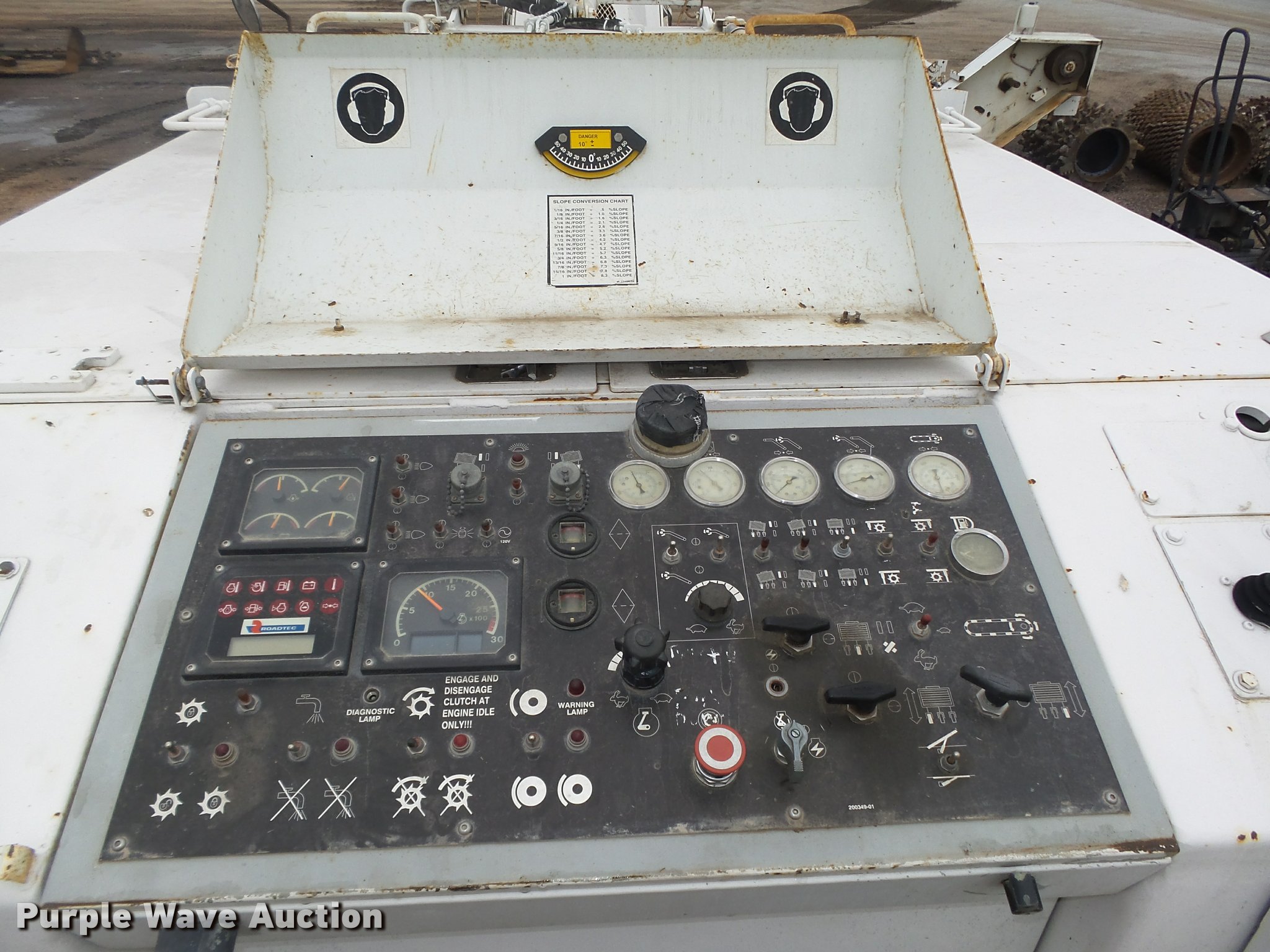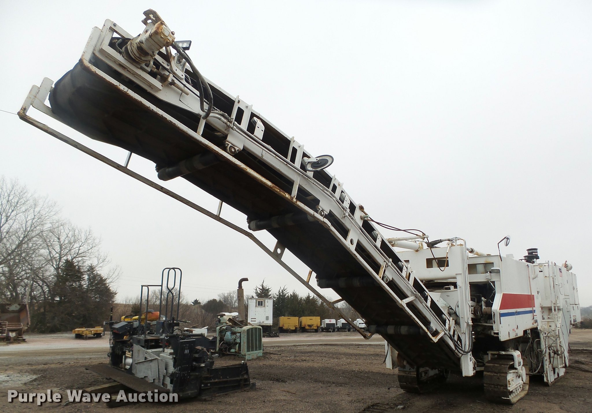 Purple Wave is selling a used Planer or Milling Machine in Nebraska. This item is a 2002 Roadtec RX60C milling machine with the following: Caterpillar 3412 12 cylinder turbo diesel engine, 42"W cleated discharge belt, Approx. 20'L, 8'W drum, Work lights, Pintle hitch, 16"W track pads, Serial RX60C-131, Unit# 1006
