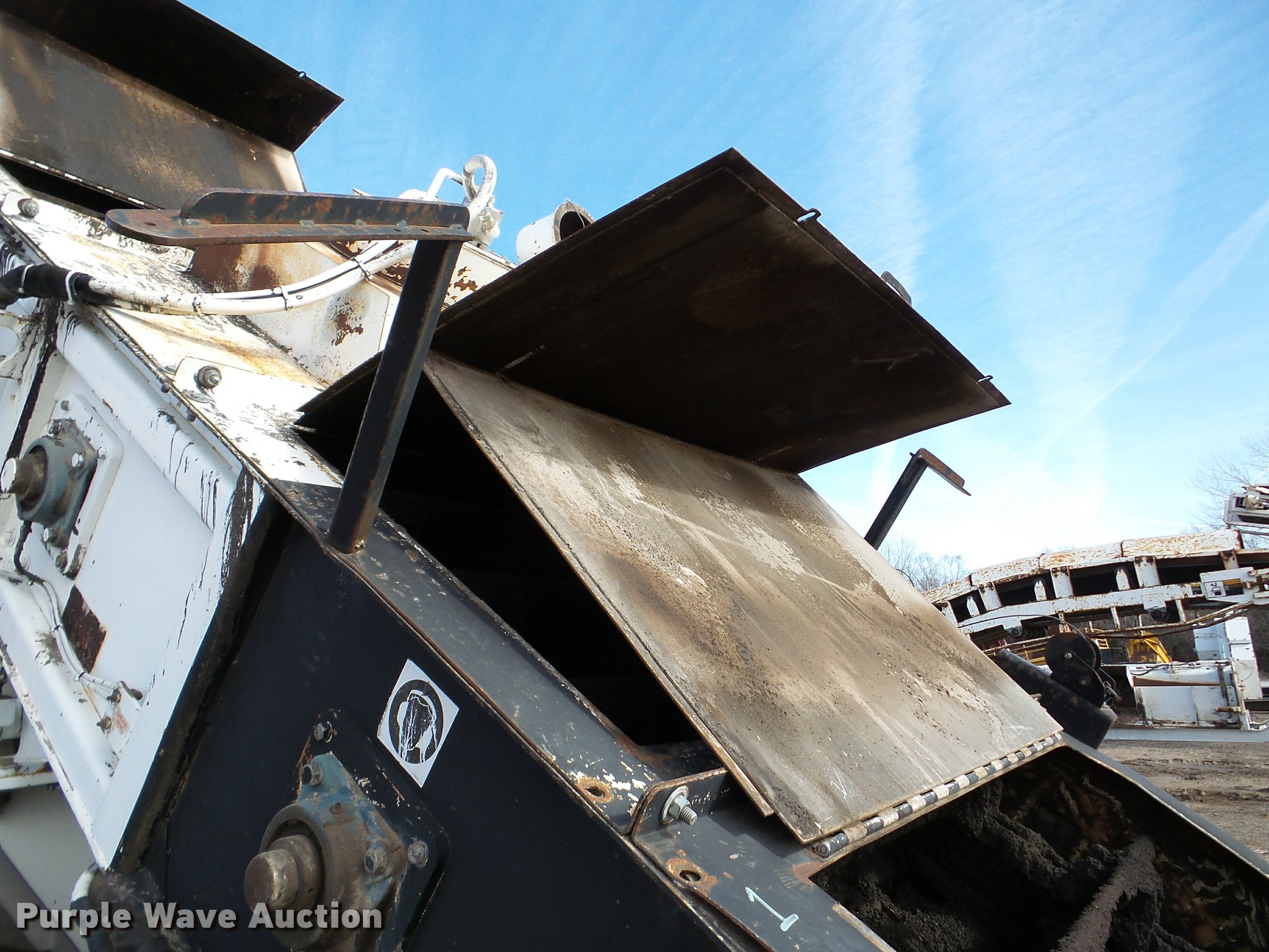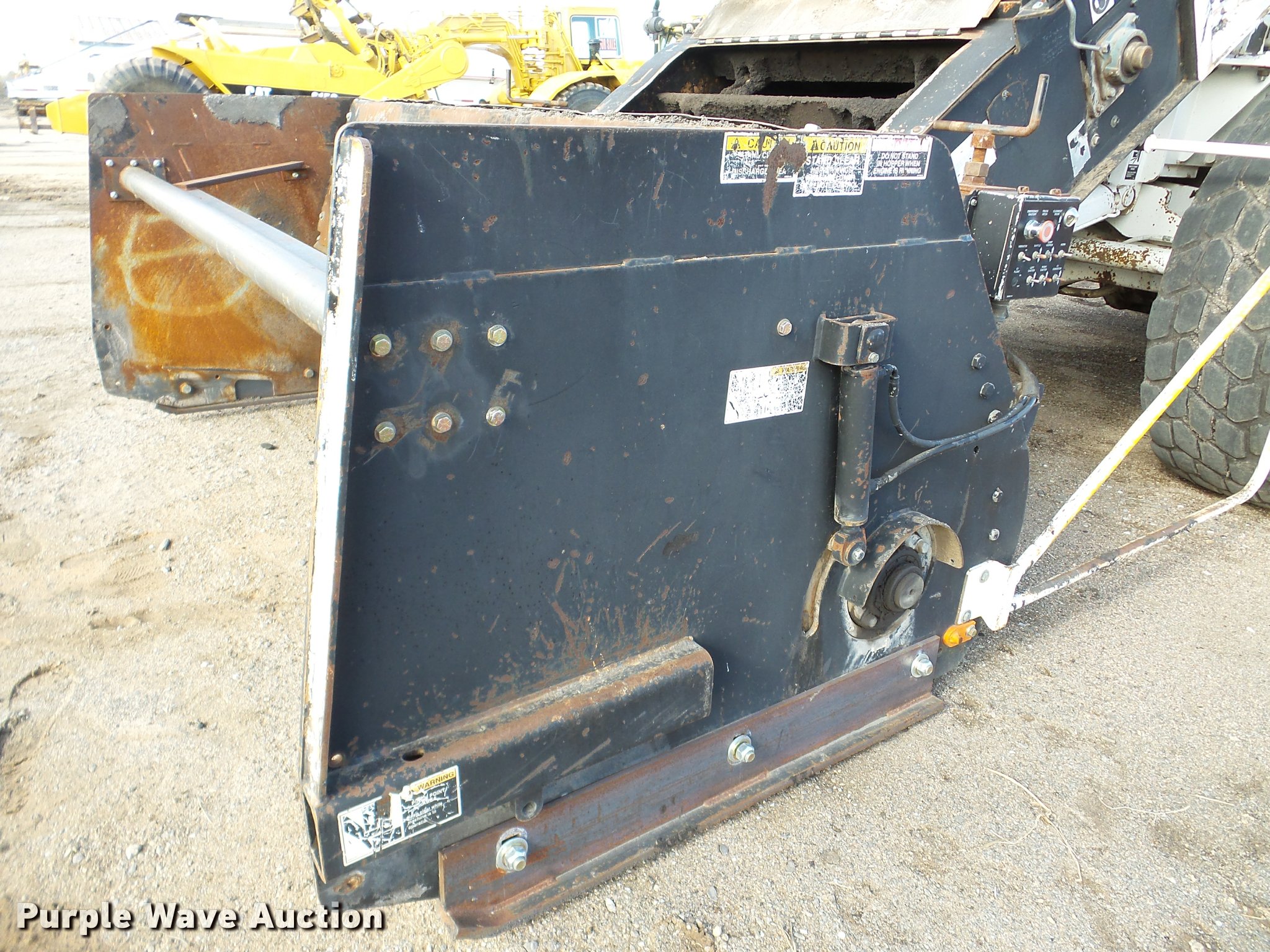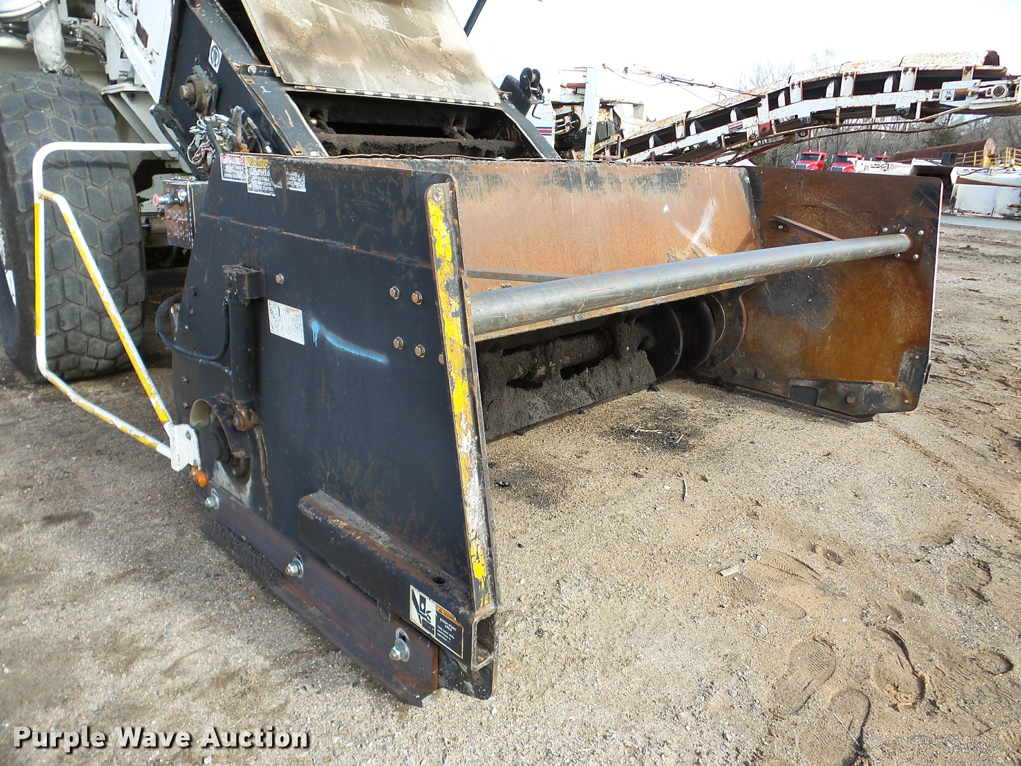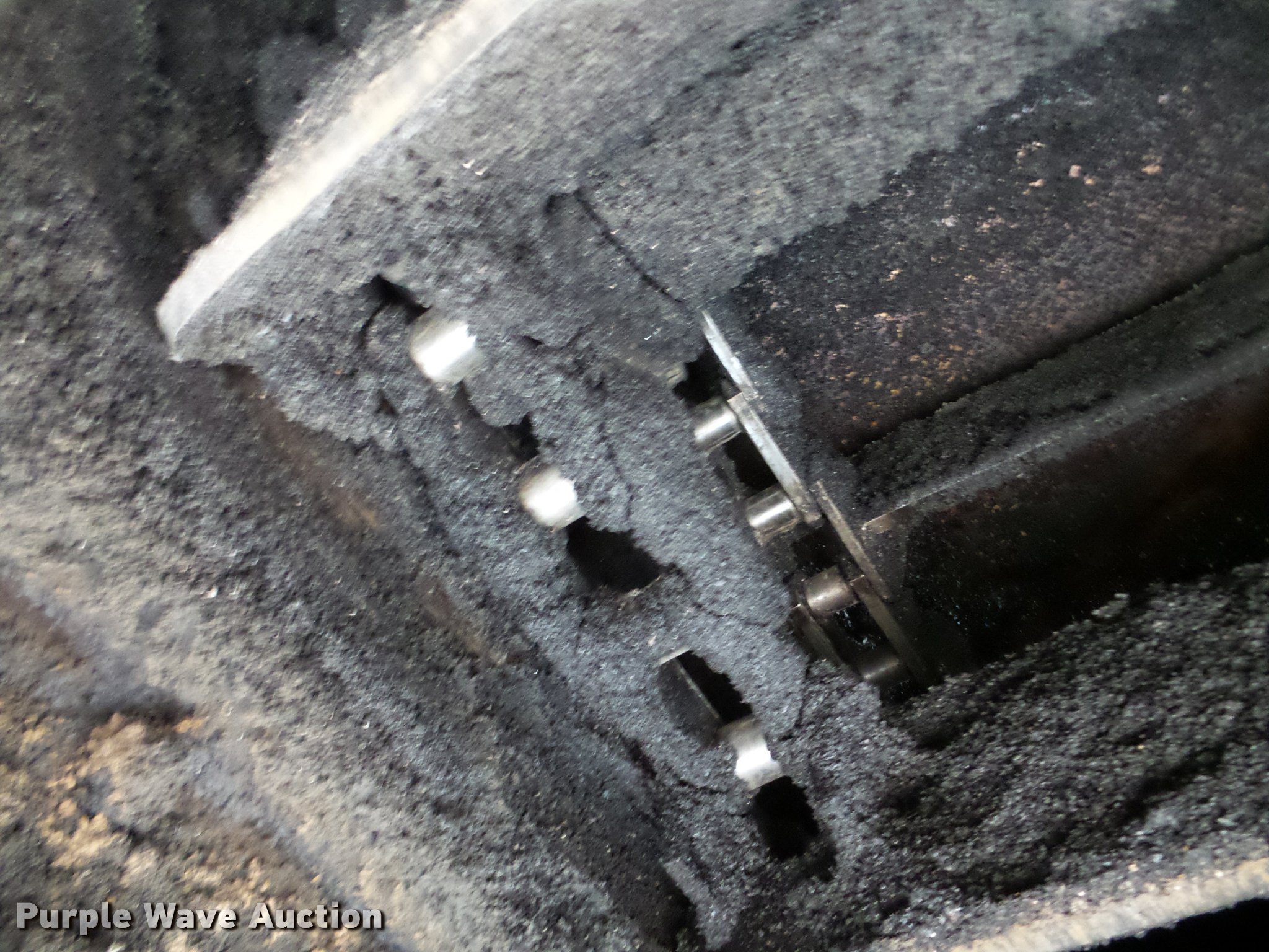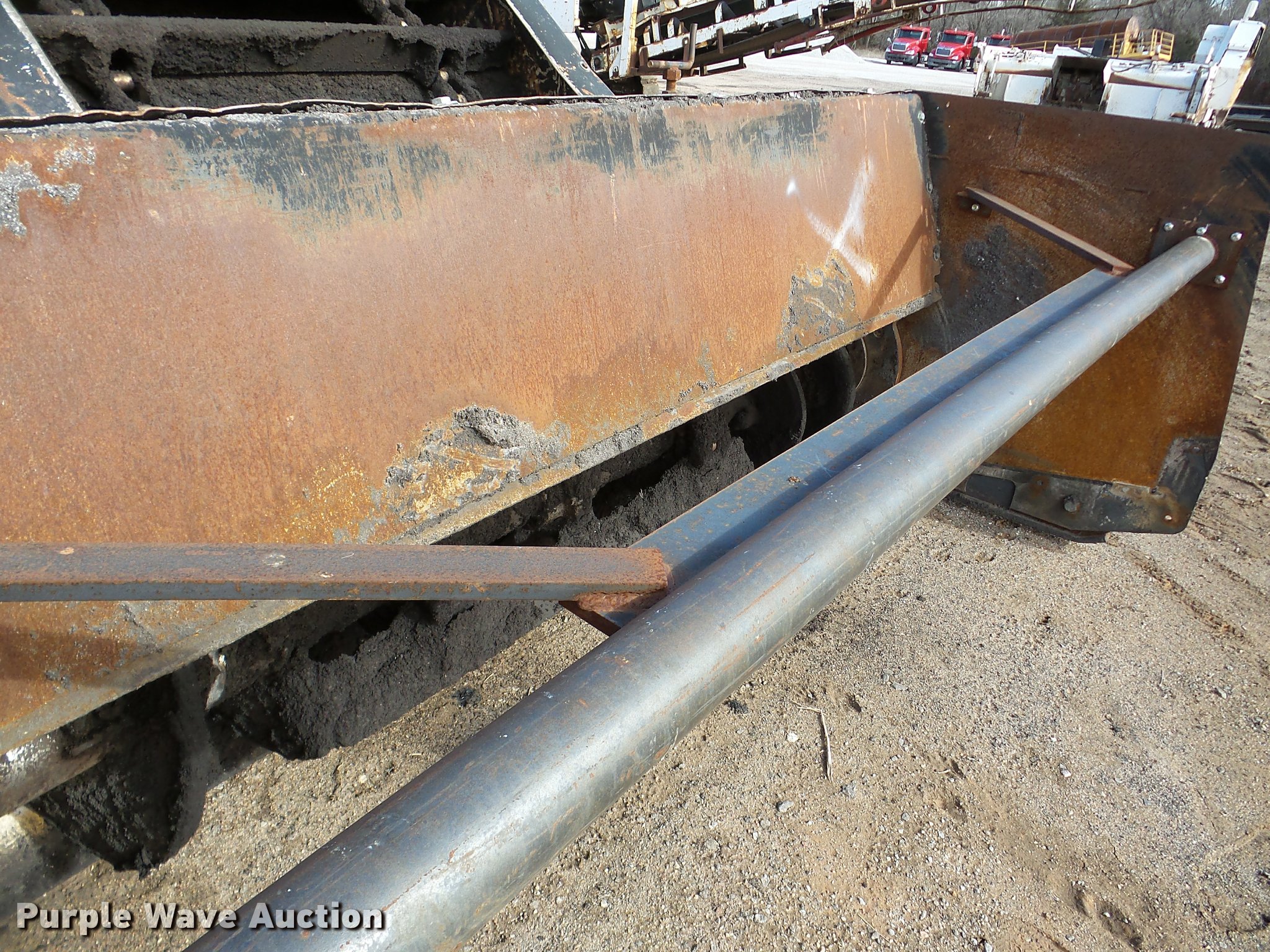 Purple Wave is selling a used Planer or Milling Machine in Nebraska. This item is a 2002 Roadtec SB2500C Shuttle Buggy material transfer vehicle with the following: 6,341 hours on meter, Six cylinder turbo diesel engine, Hydrostatic transmission, Operator station, 55' overall length, Approximately 112" overall width, Approximately 14' overall height, 25'L x 31"W conveyor, 9'L x 9'8"W x 9'D hopper, Windrow pickup attachment, Bridgestone 21.00R25 tires, Unit# 434