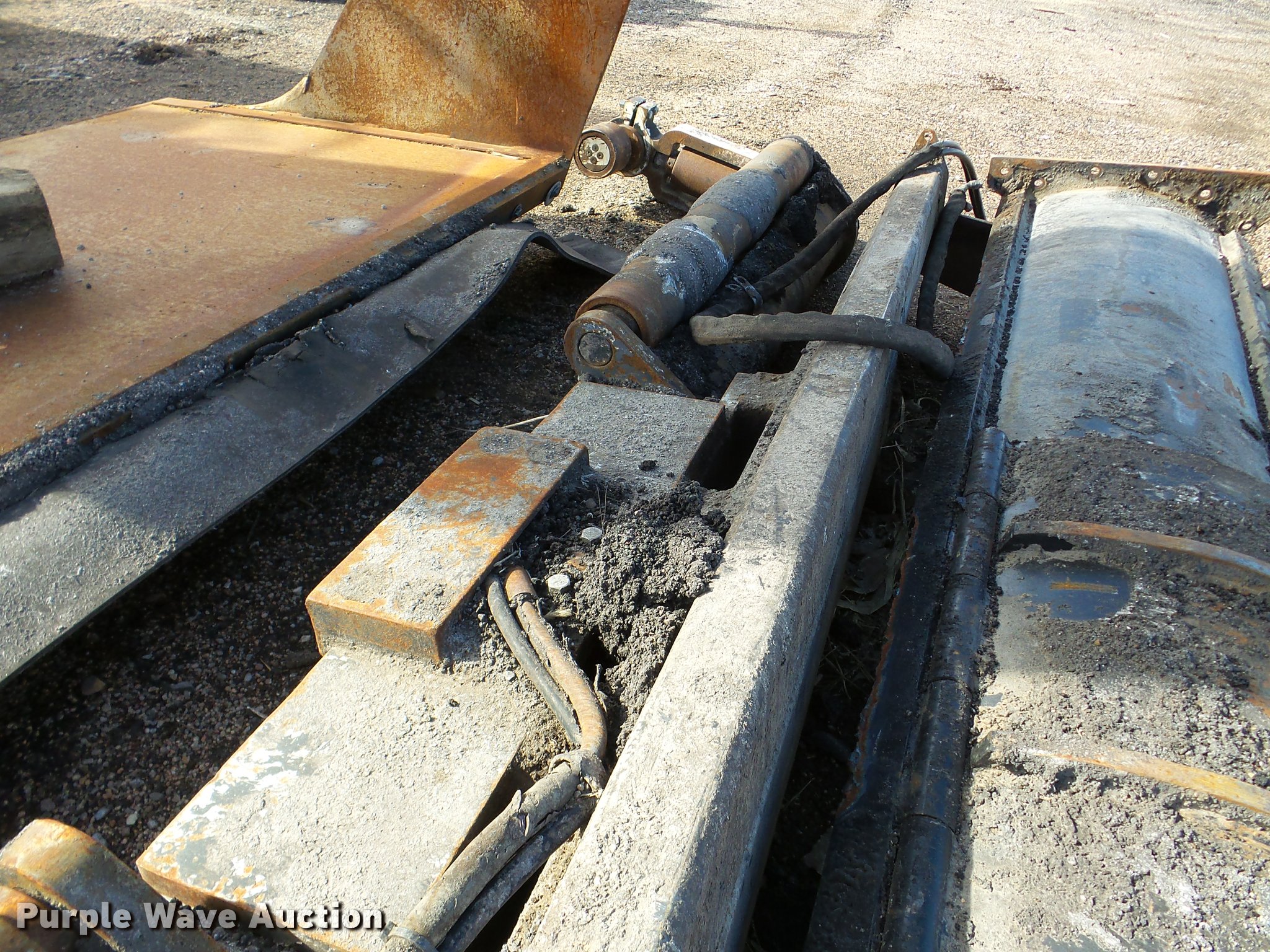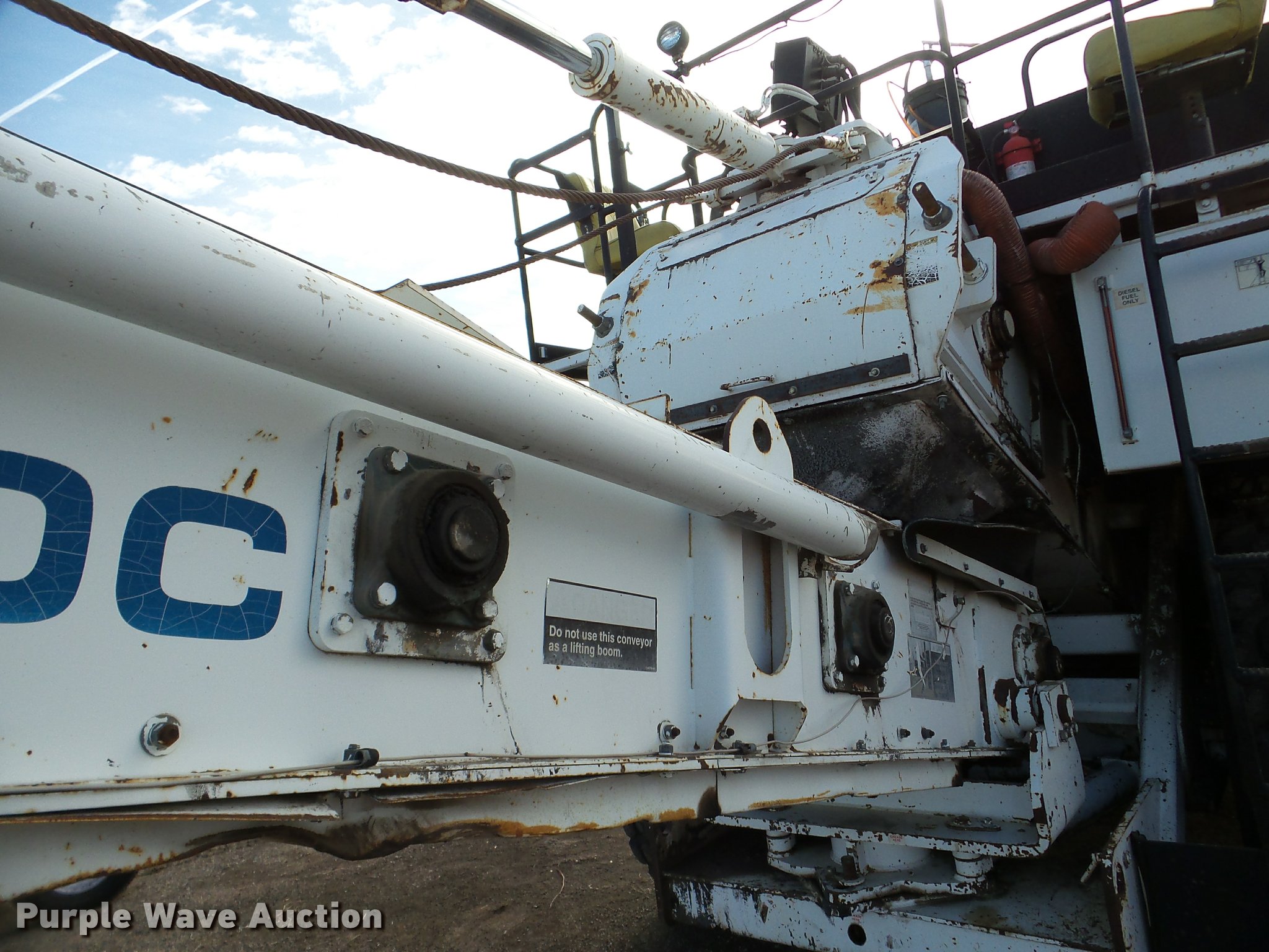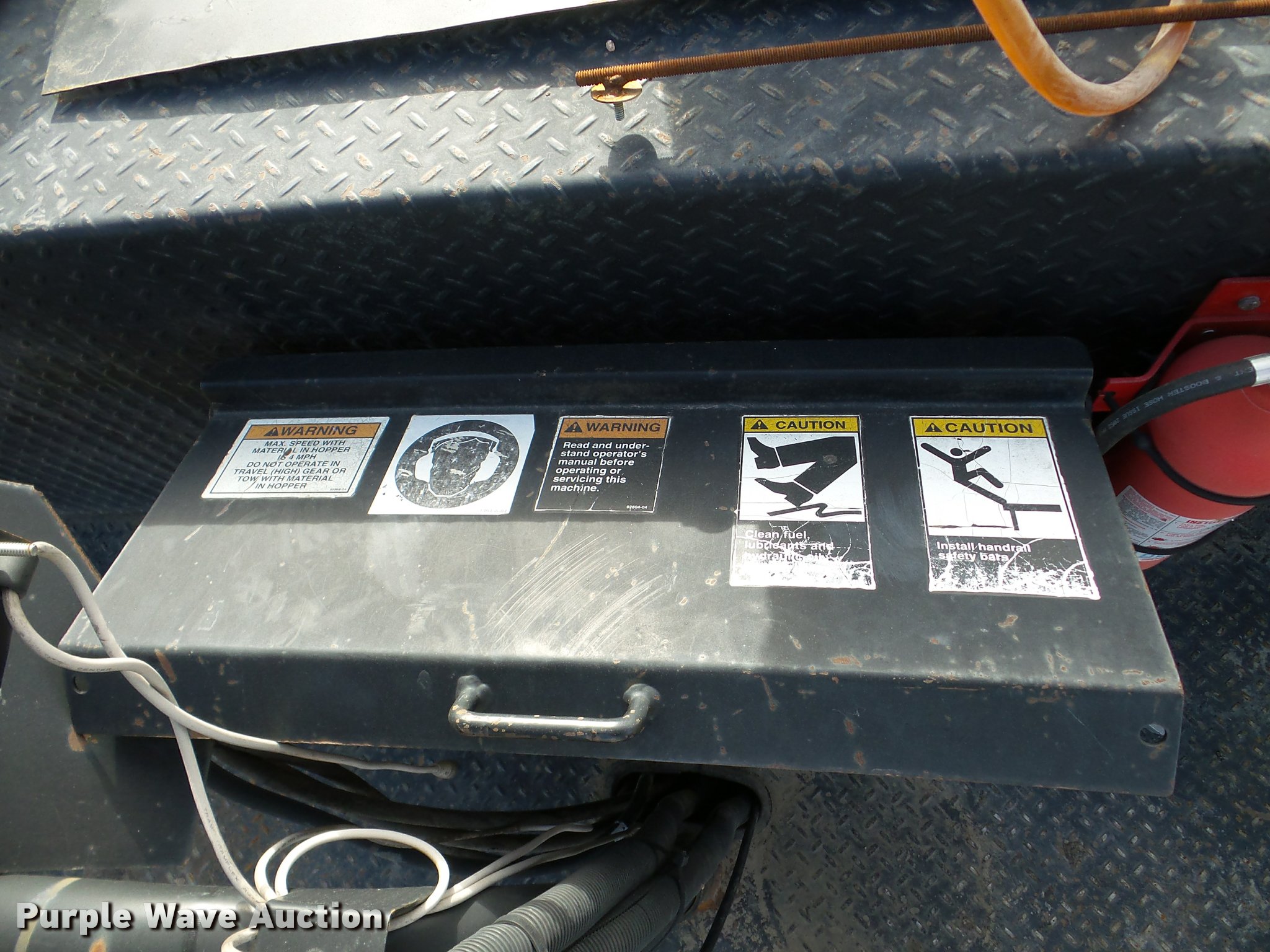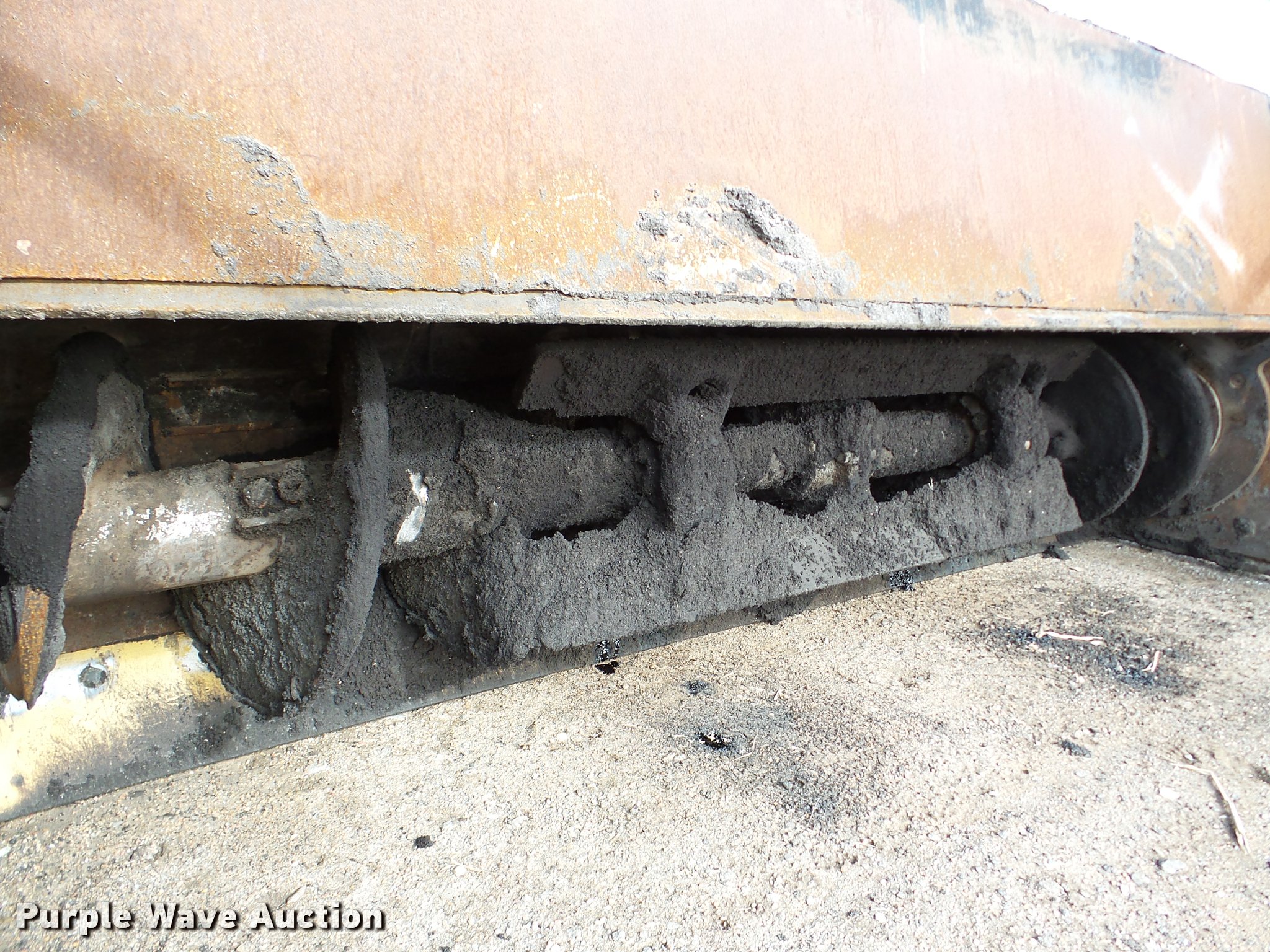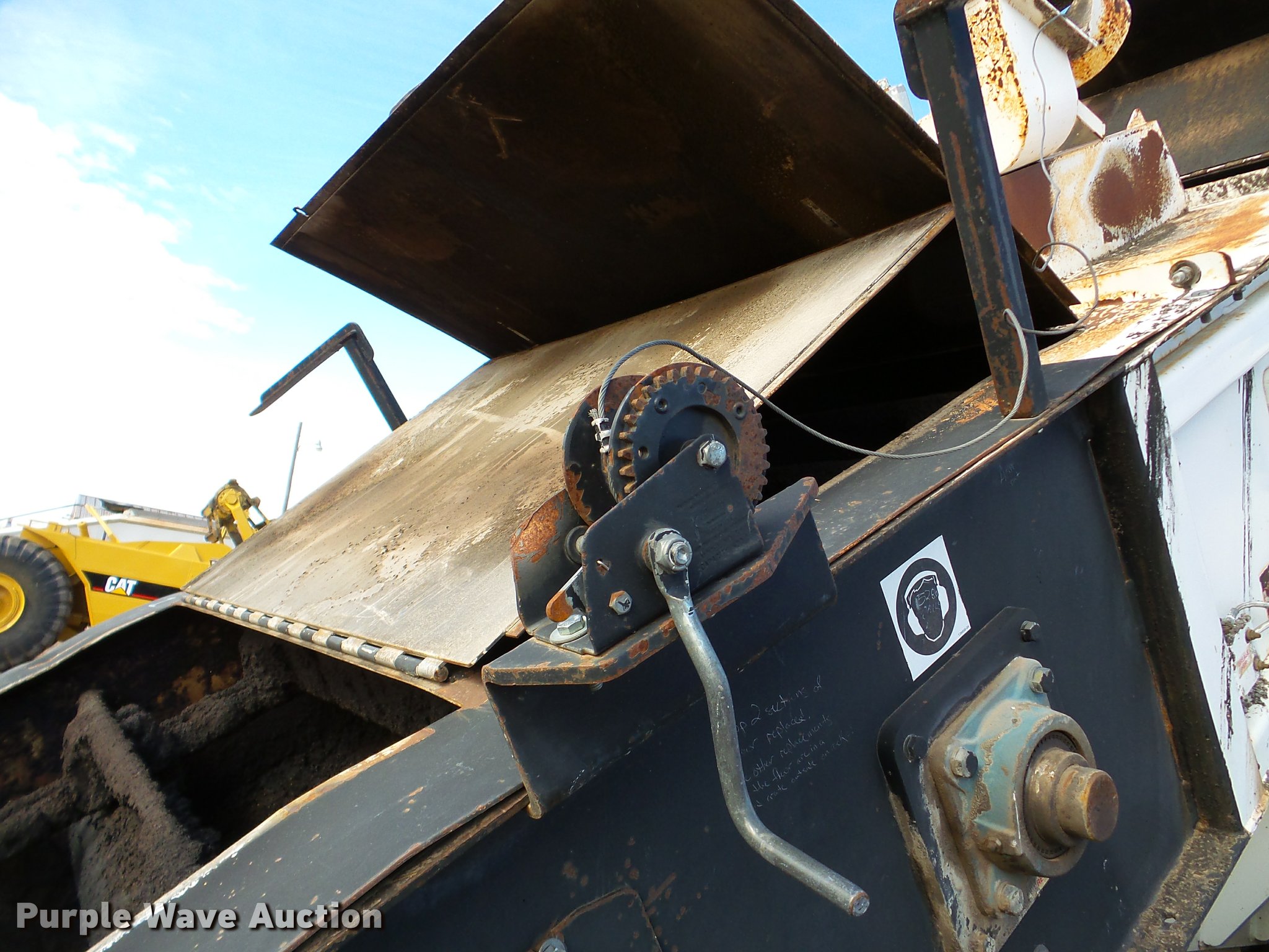 Purple Wave is selling a used Planer or Milling Machine in Nebraska. This item is a 2002 Roadtec SB2500C Shuttle Buggy material transfer vehicle with the following: 6,341 hours on meter, Six cylinder turbo diesel engine, Hydrostatic transmission, Operator station, 55' overall length, Approximately 112" overall width, Approximately 14' overall height, 25'L x 31"W conveyor, 9'L x 9'8"W x 9'D hopper, Windrow pickup attachment, Bridgestone 21.00R25 tires, Unit# 434