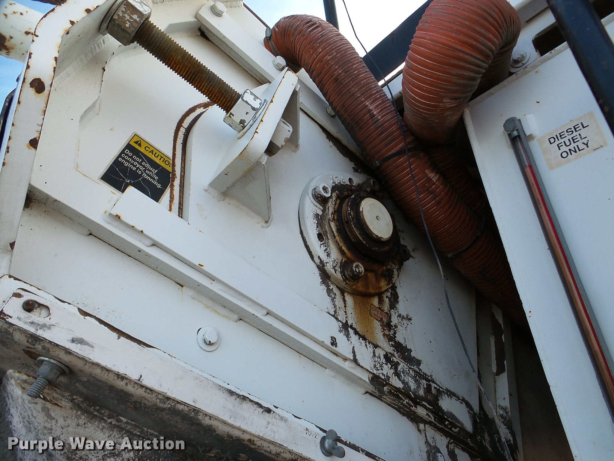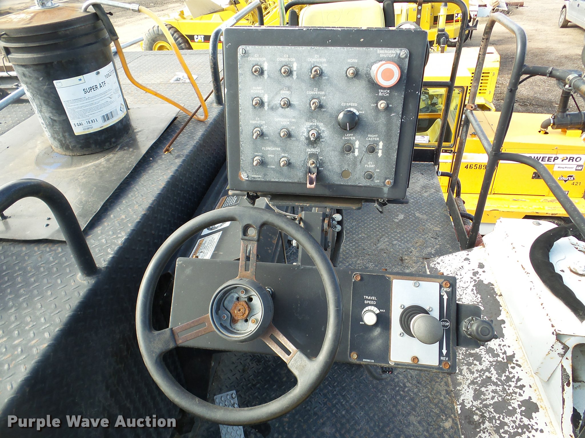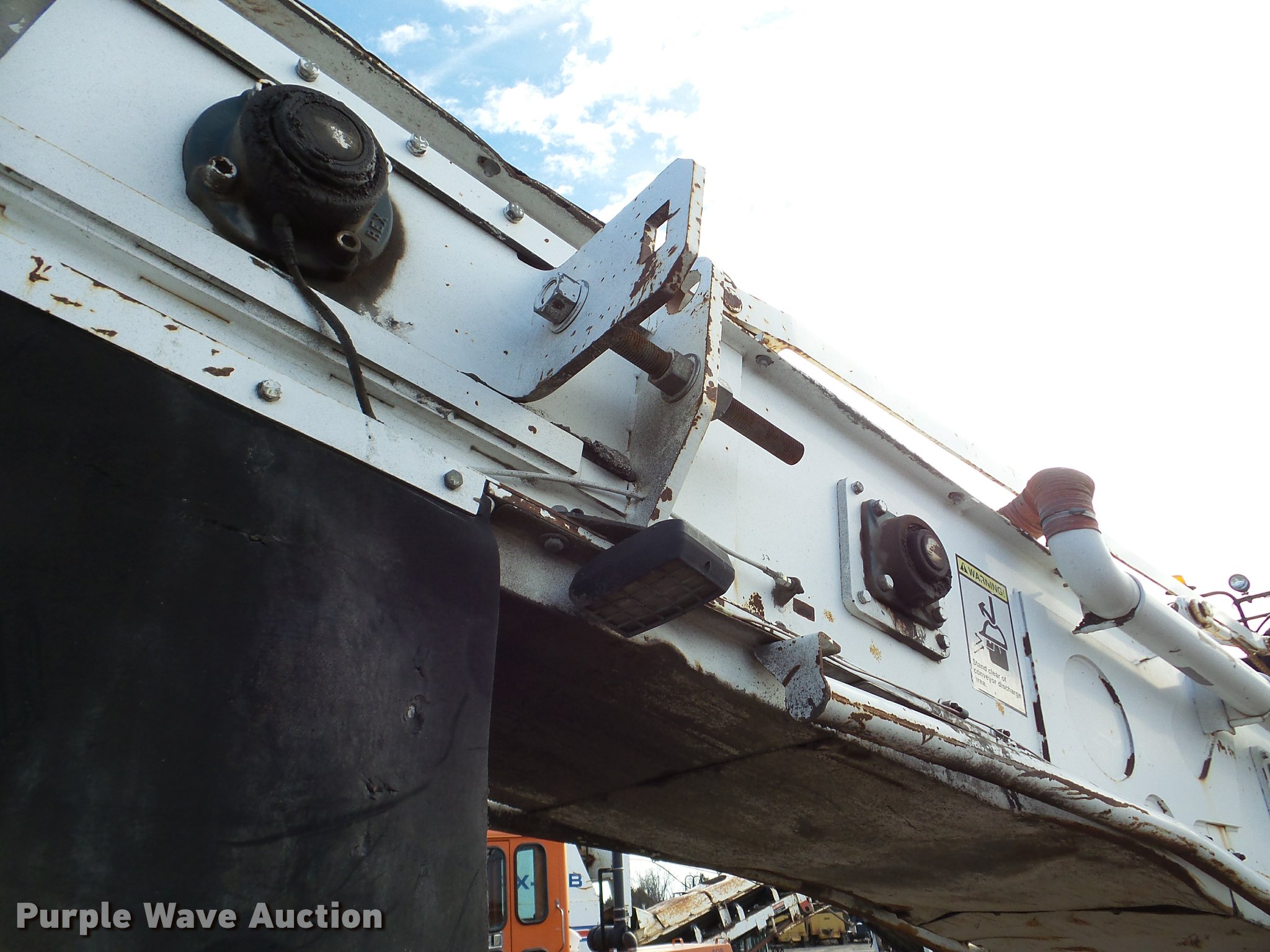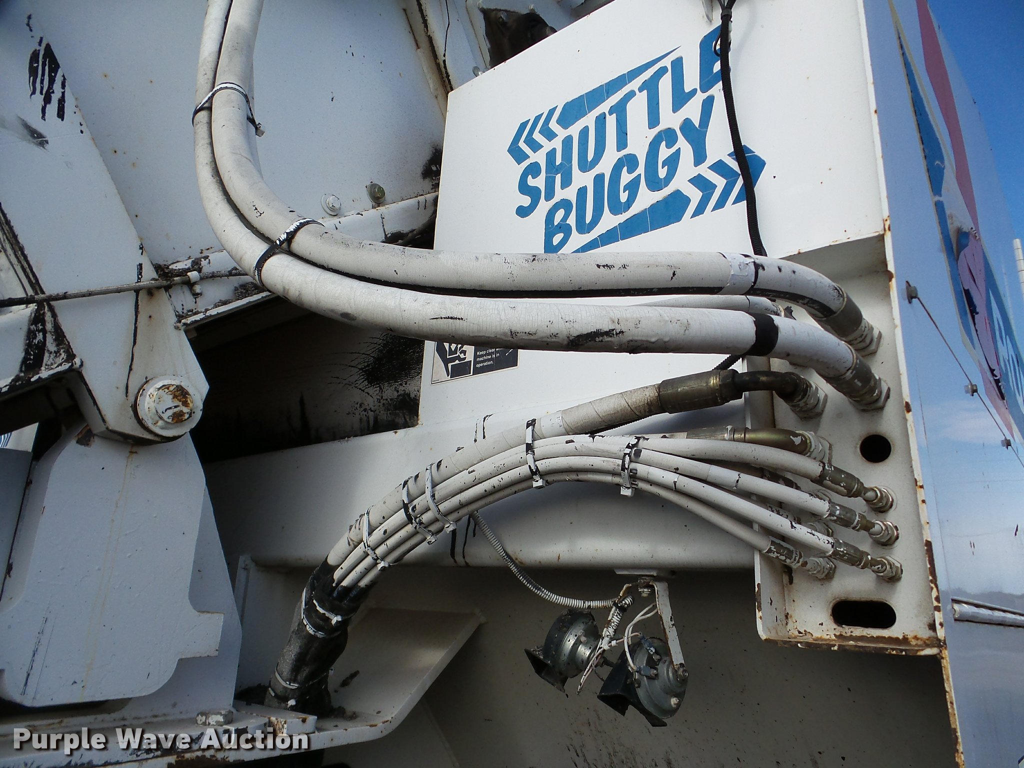 Purple Wave is selling a used Planer or Milling Machine in Nebraska. This item is a 2002 Roadtec SB2500C Shuttle Buggy material transfer vehicle with the following: 6,341 hours on meter, Six cylinder turbo diesel engine, Hydrostatic transmission, Operator station, 55' overall length, Approximately 112" overall width, Approximately 14' overall height, 25'L x 31"W conveyor, 9'L x 9'8"W x 9'D hopper, Windrow pickup attachment, Bridgestone 21.00R25 tires, Unit# 434