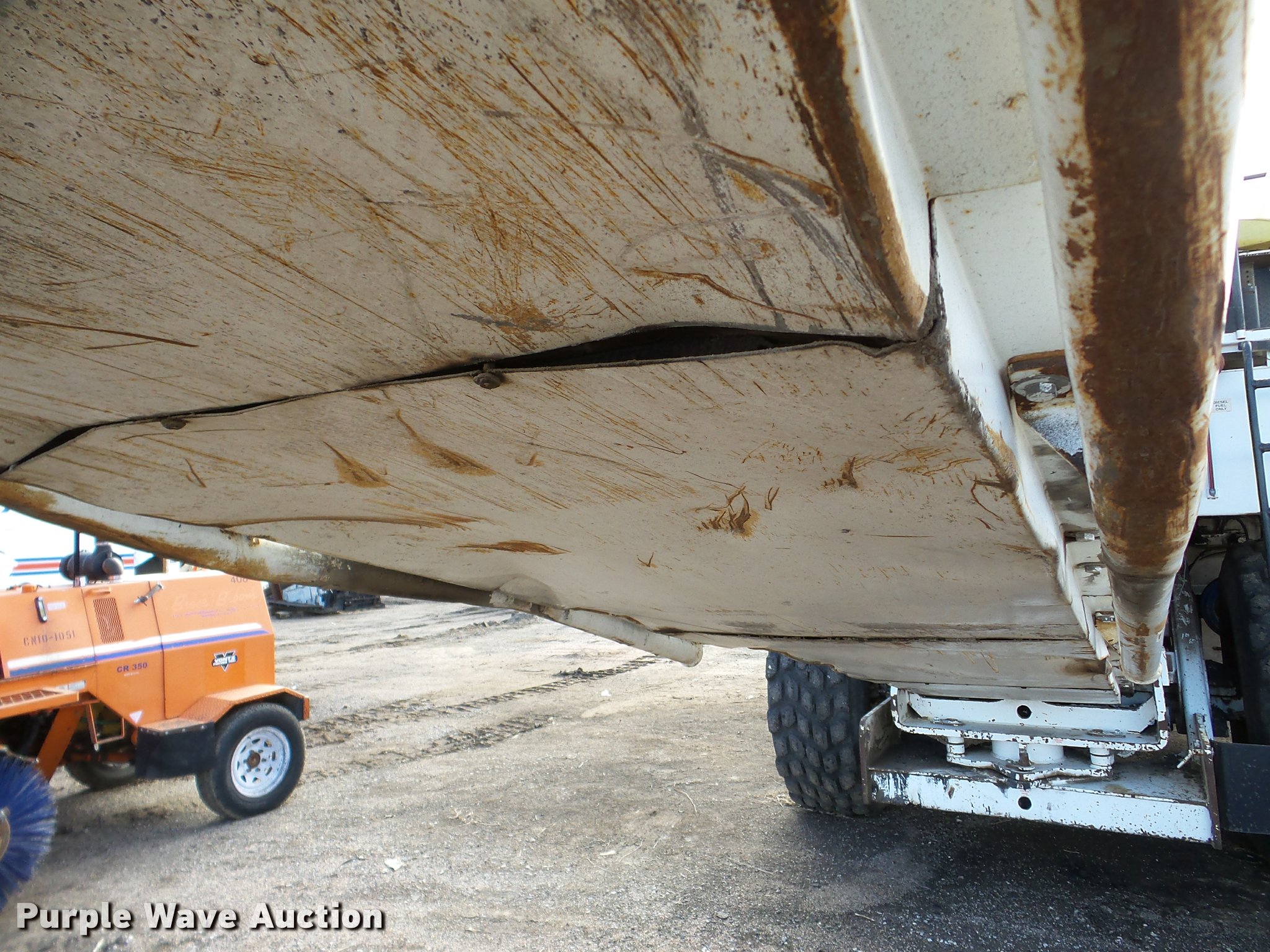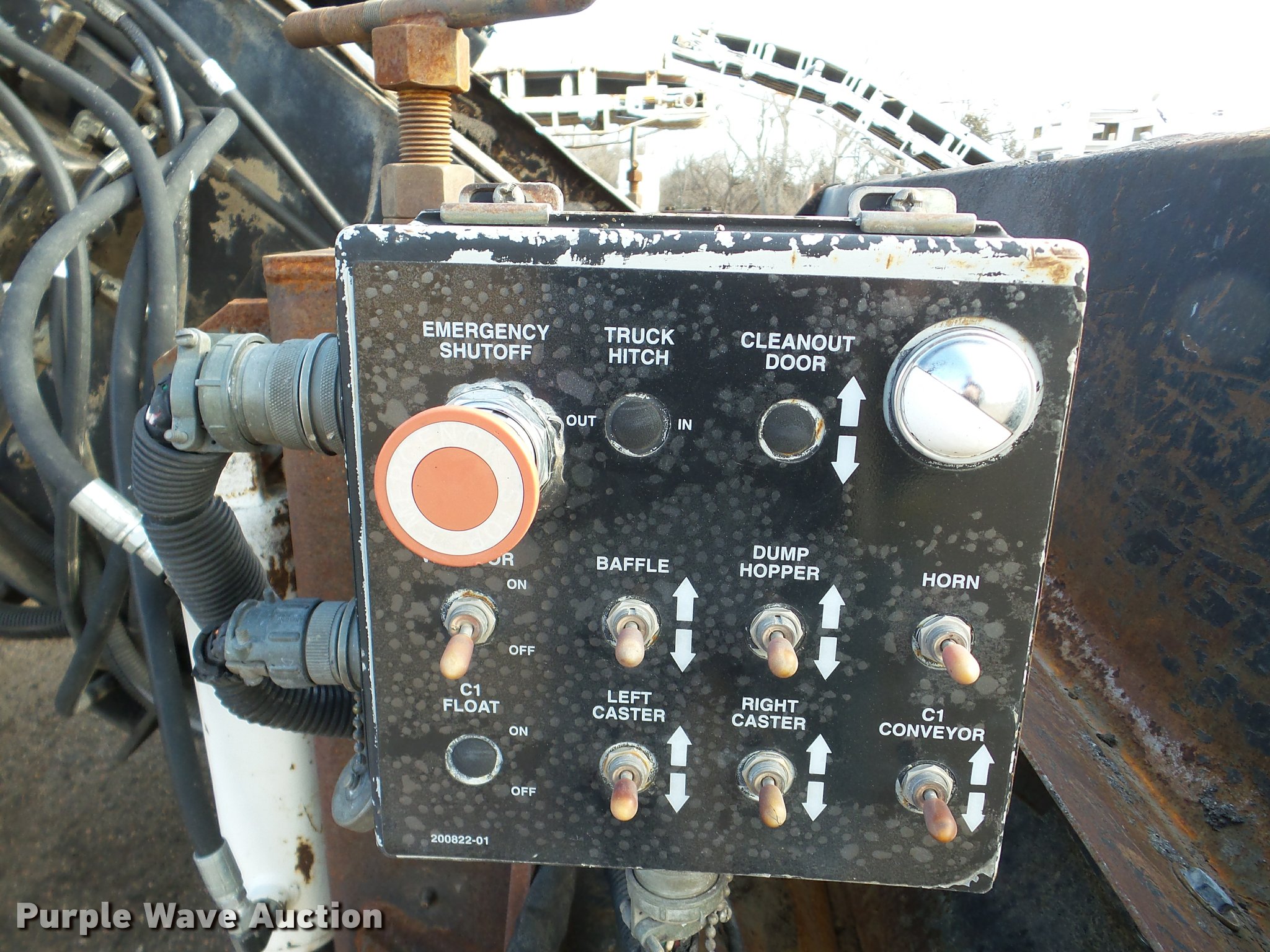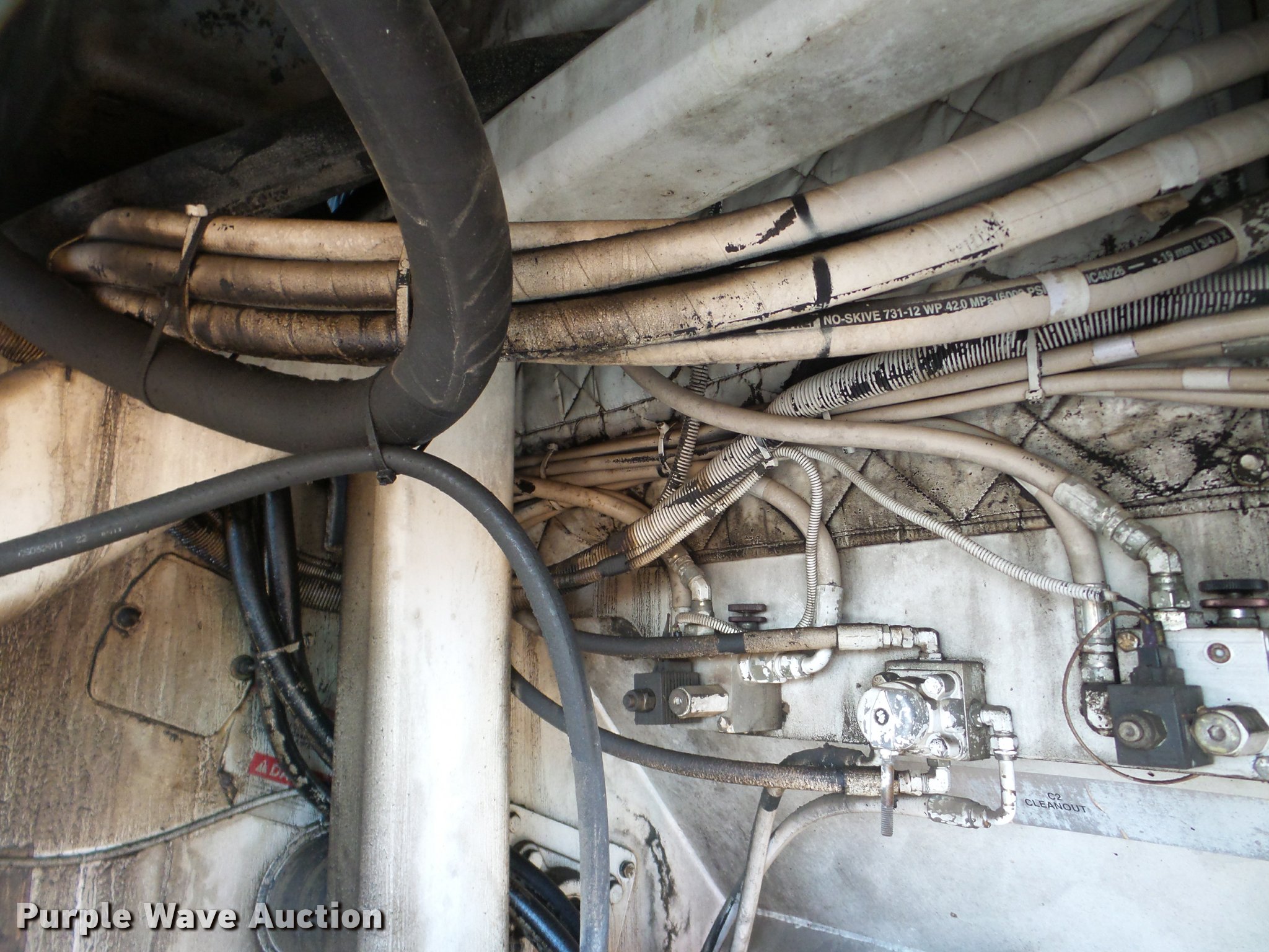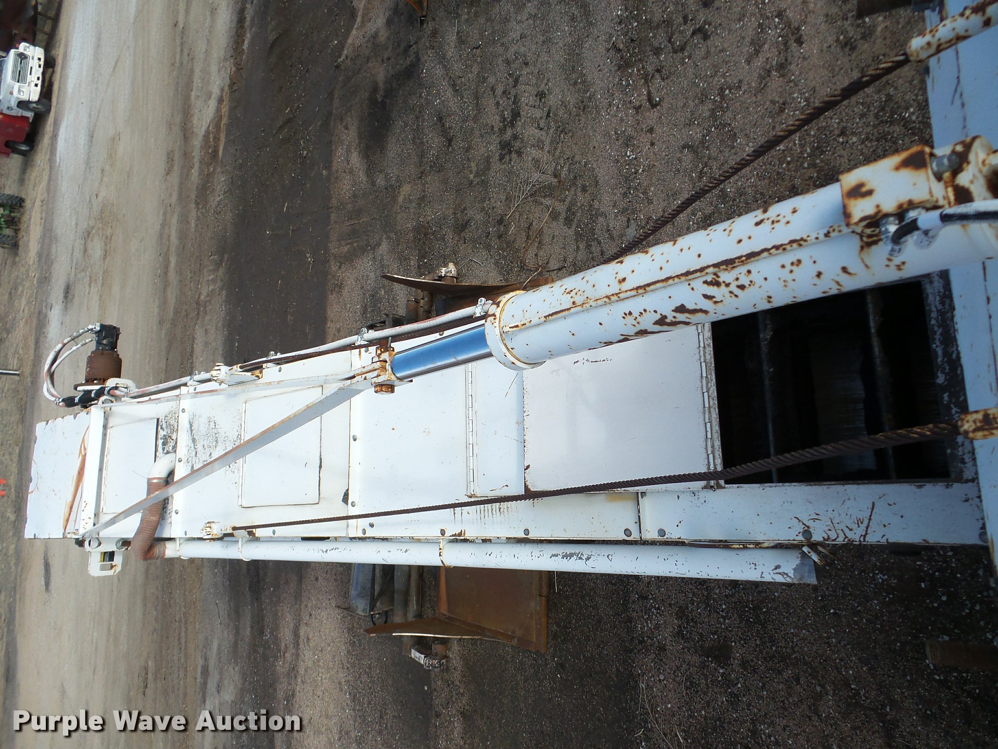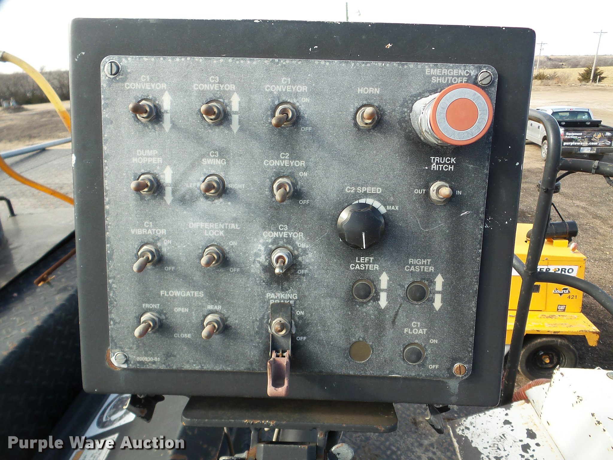 Purple Wave is selling a used Planer or Milling Machine in Nebraska. This item is a 2002 Roadtec SB2500C Shuttle Buggy material transfer vehicle with the following: 6,341 hours on meter, Six cylinder turbo diesel engine, Hydrostatic transmission, Operator station, 55' overall length, Approximately 112" overall width, Approximately 14' overall height, 25'L x 31"W conveyor, 9'L x 9'8"W x 9'D hopper, Windrow pickup attachment, Bridgestone 21.00R25 tires, Unit# 434