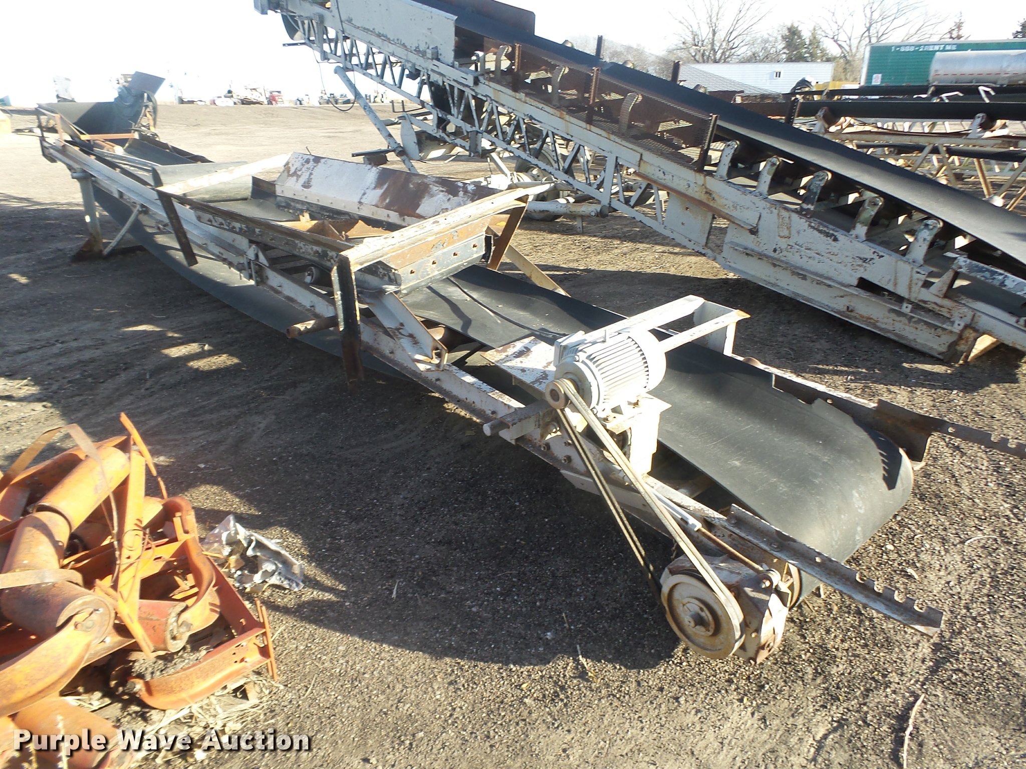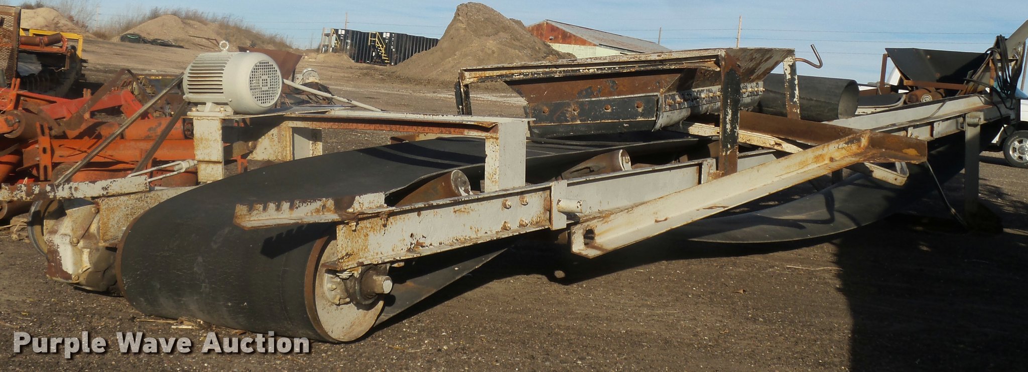 Purple Wave is selling a used Conveyor in Nebraska. This item is a 36'L x 30"W conveyor with the following: Approximately 38'L x 54"W O.D., 29.5"W flat belt, V rollers, 10" bottom roller, 13.5" diameter drive roller, Electric motor, 5 HP, Three phase, Accessories, Partially disassembled unit, Parts missing