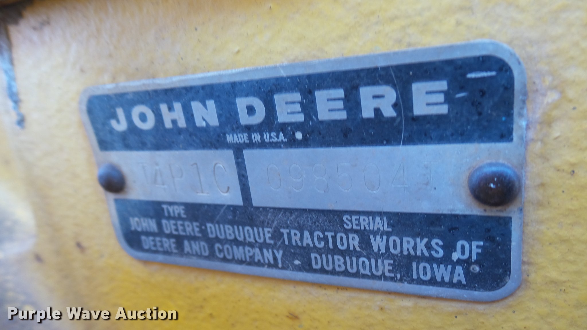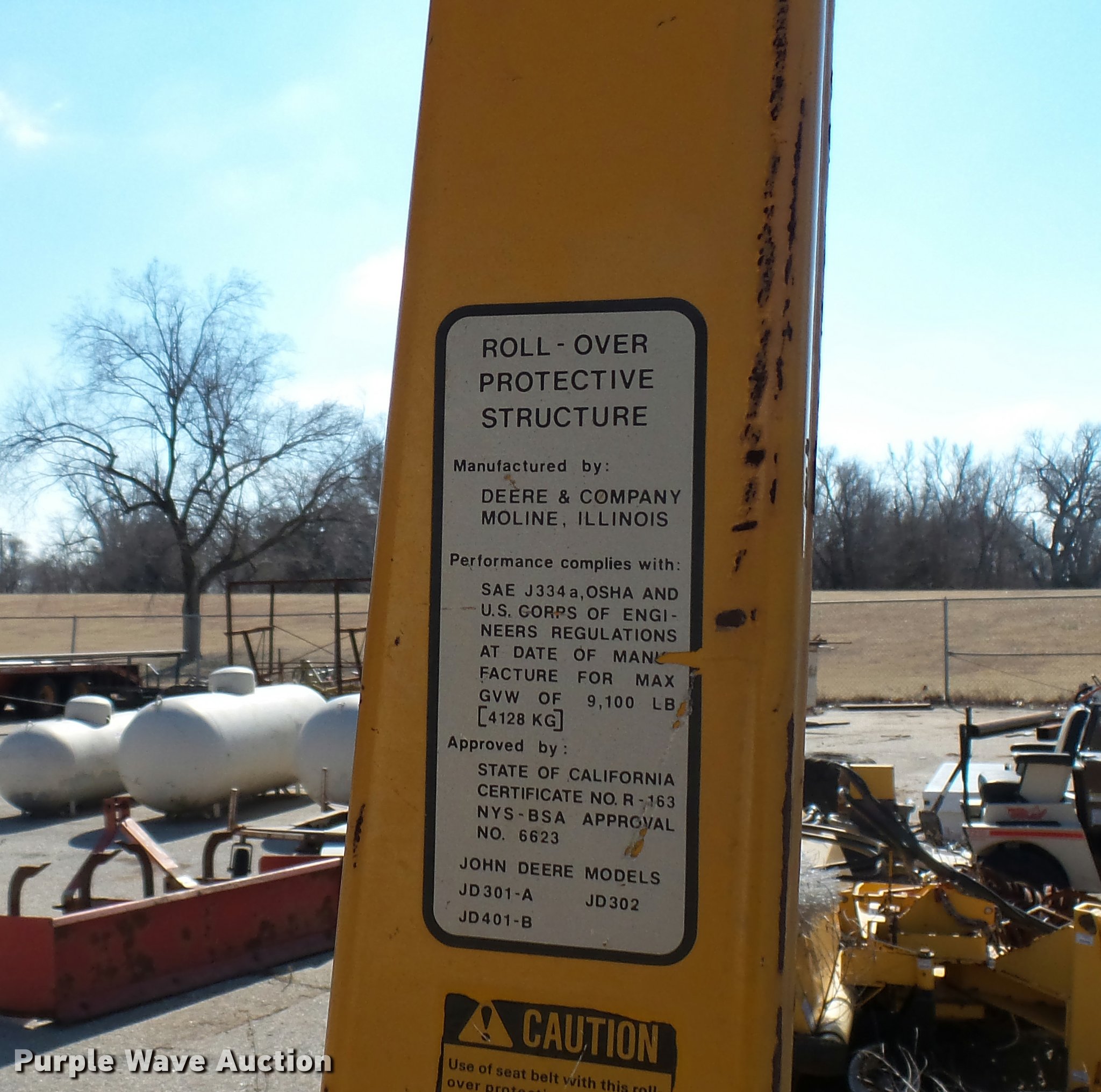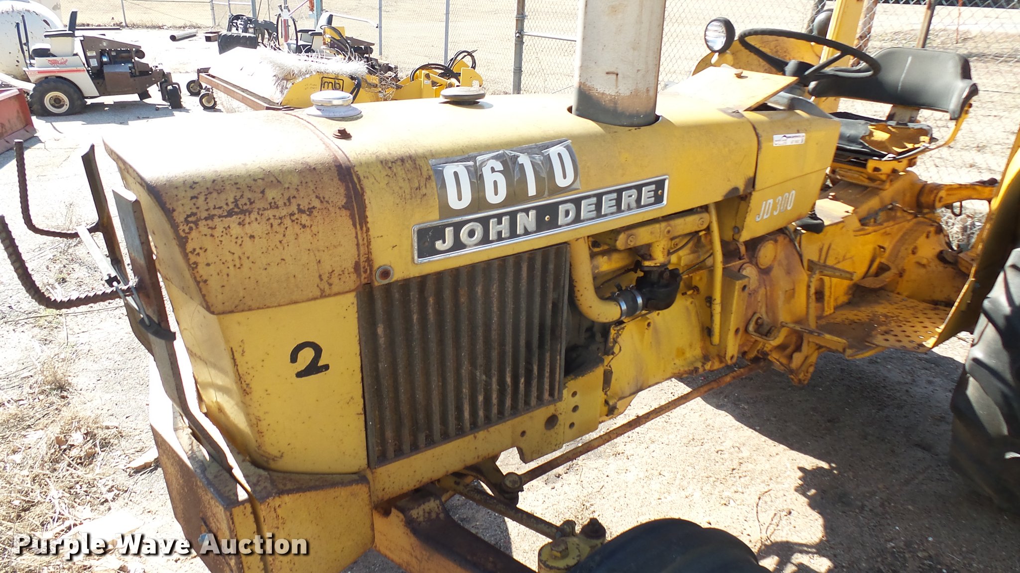 Purple Wave is selling a used Tractor in Kansas. This item is a John Deere 300 tractor with the following: 1,509 hours on meter, John Deere three cylinder gas engine, Manual transmission, 8F-4R gears, ROPS canopy, Work lights, 540 PTO, 77" wheelbase, 7.50-16 front tires, 14.9-24 rear tires, Unknown operating condition, Serial 0985041