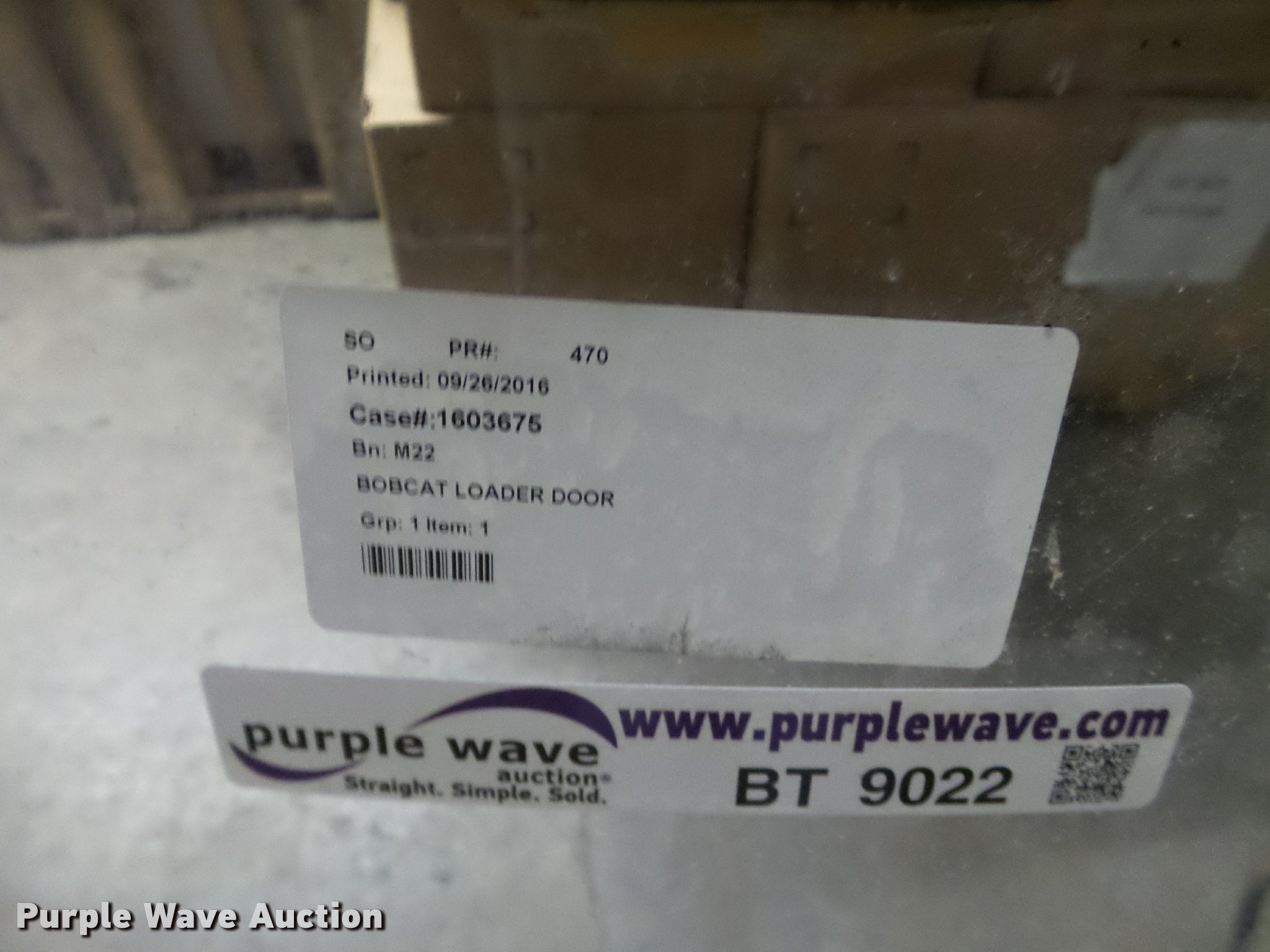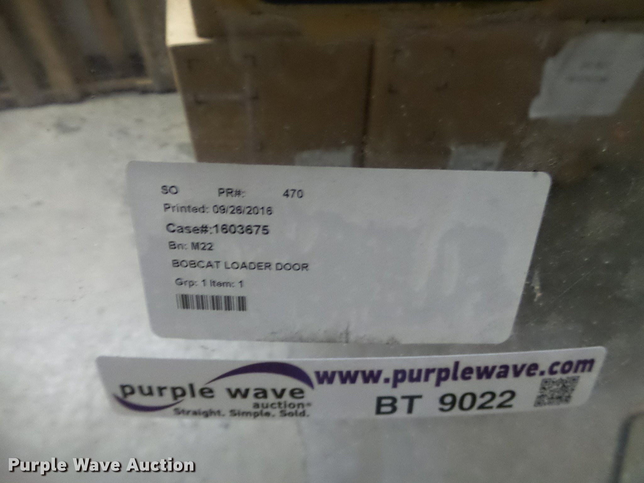 Purple Wave is selling a used Skid Steer Attach. in Kansas. This item is a Skid steer door with the following: 30"W x 39"H, 22" hinge to hinge, Shatter proof, Removed from a 2012 Bobcat S250 skid steer