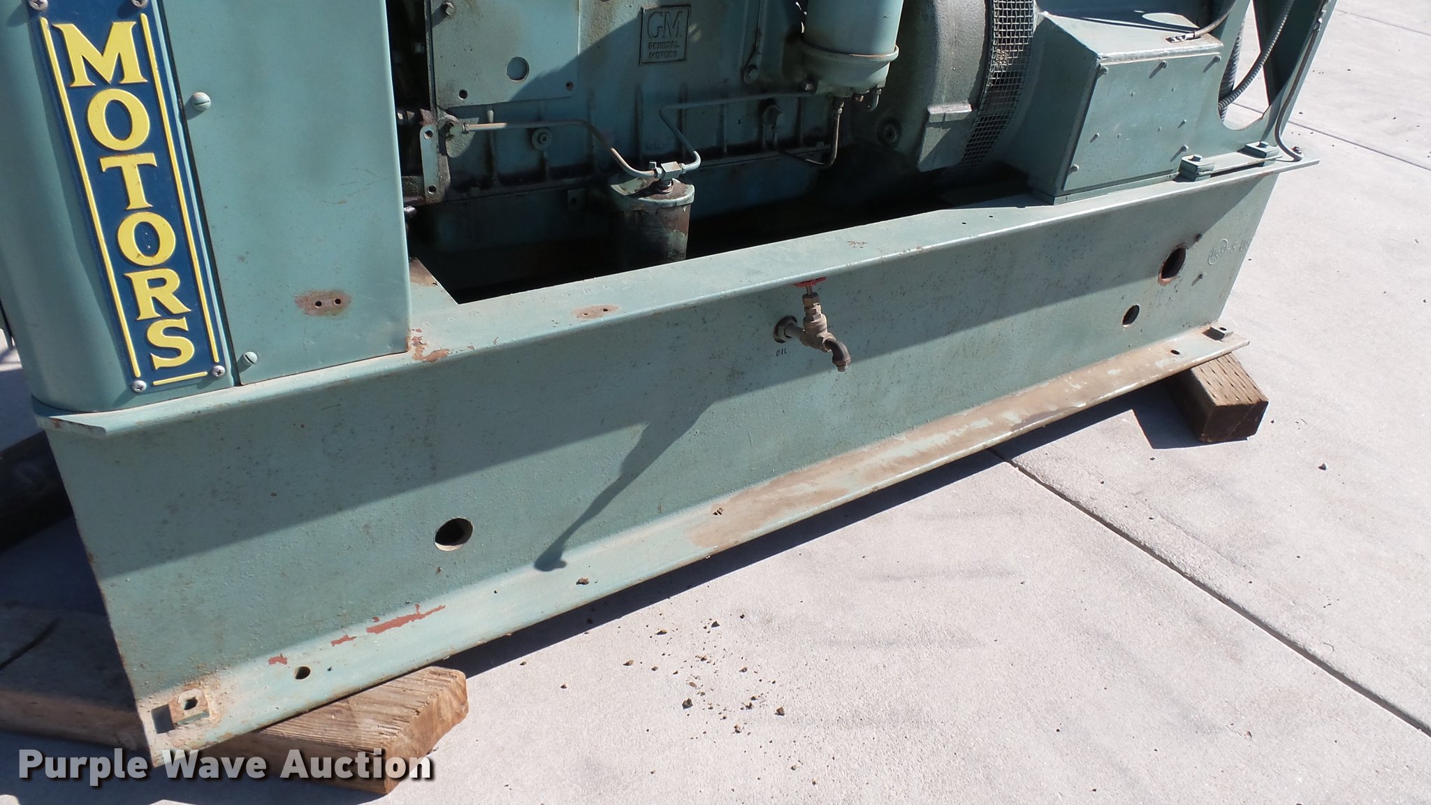 Purple Wave is selling a used Generator Set in Kansas. This item is a General Motors I-498 generator with the following: 1,015 hours on meter, Detroit Diesel four cylinder diesel engine, Three phase, 40 kW, 50 kVA, 60 cycles, 1,200 RPM, Approx 90" x 35" x 50"H, Serial 578-I-58