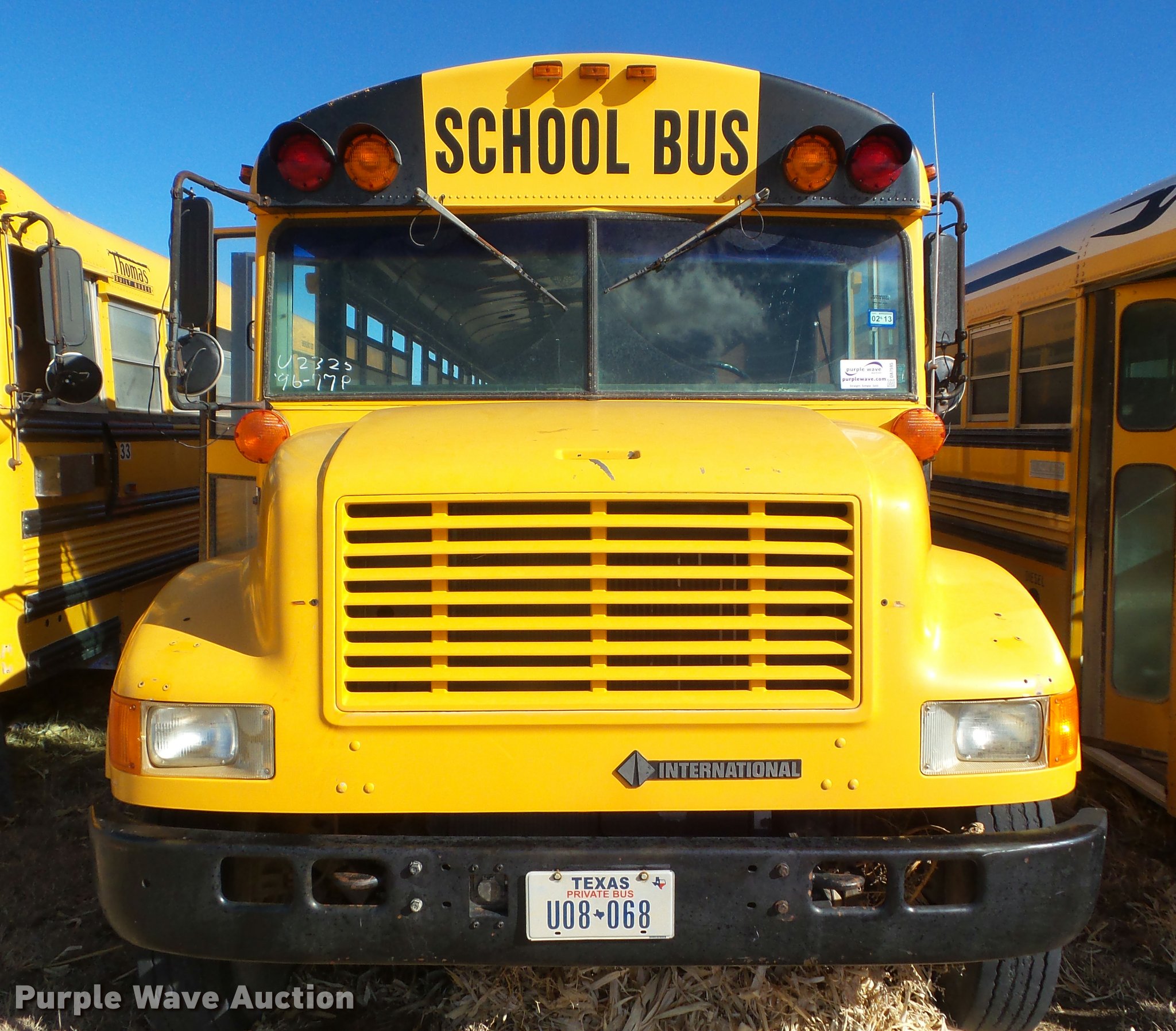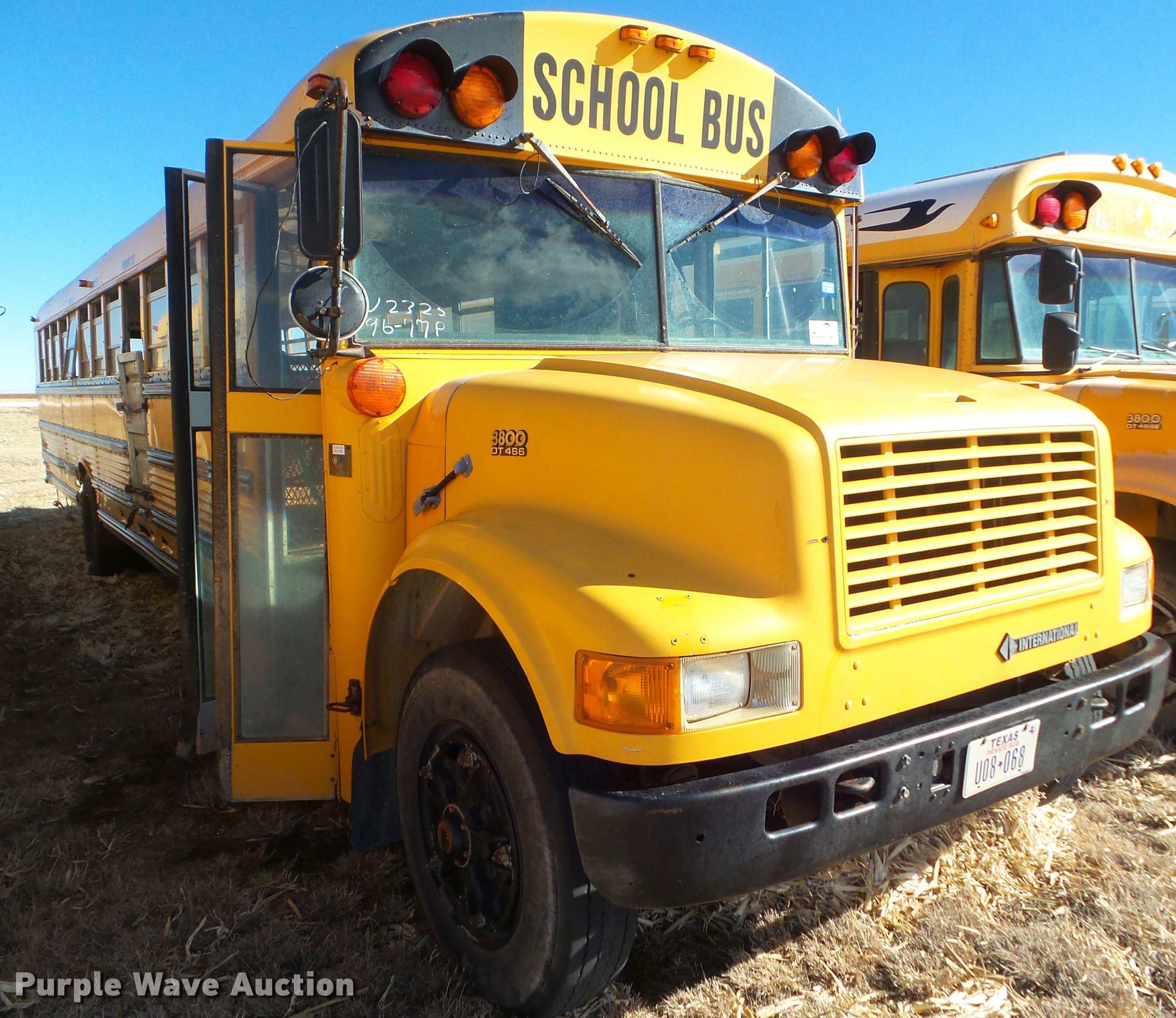 Purple Wave is selling a used Bus in Texas. This item is a 1996 International 3800 school bus with the following: 121,251 miles on odometer, International DT466 7.6L L6 turbo diesel engine, Automatic transmission, Single axle, Heat, AM/FM, Suspension seat, Electric passenger sliding door, Ceiling emergency egress, Lighted stop sign, Front and rear tow hooks, Spring suspension, Hydraulic brakes, 276" wheelbase, 10R22.5 tires, Seats missing, Cracked windshield, Non-operational unit, Unit# B31