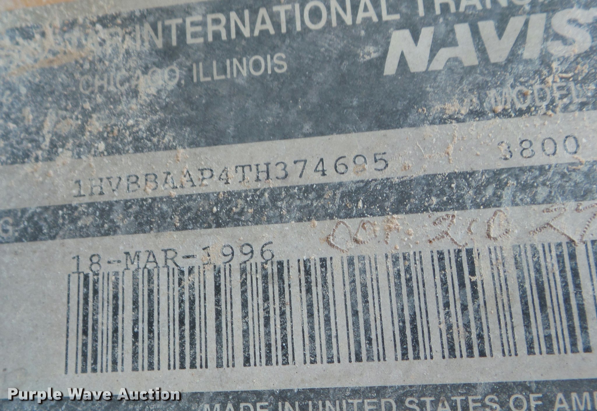1996 International 3800 school bus. 121,251 miles on odometer, International DT466 7.6L L6 turbo diesel engine, Automatic transmission, Single axle, Heat, AM/FM, Suspension seat, Electric passenger sliding door, Ceiling emergency egress, Lighted stop sign, Front and rear tow hooks, Spring suspension, Hydraulic brakes, 276" wheelbase, 10R22.5 tires, Seats missing, Cracked windshield, Non-operational unit, Unit# B31. Oklahoma title. Title will be available to the buyer at the time of asset removal. 1HVBBAAP4TH374695. Seaboard Foods. Perryton, TX 79070