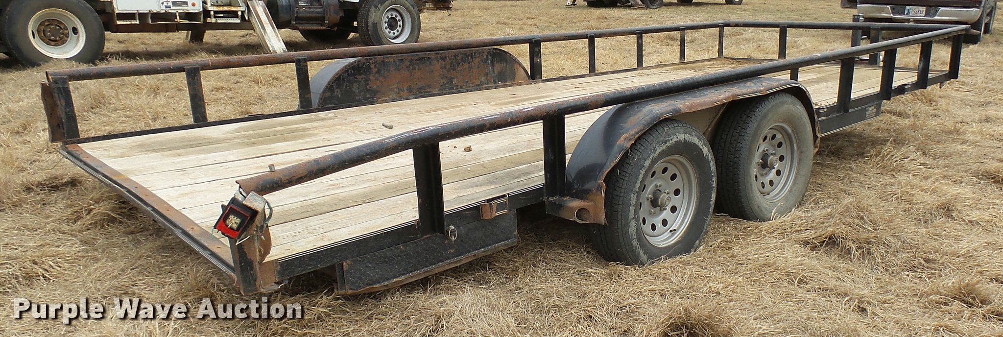 Purple Wave is selling a used Car or Utility Trailer in Oklahoma. This item is a Utility trailer with the following: 22'L x 83"W overall, 18'L wood deck, 32" side height, 20" floor height, Stake pockets, 2" ball hitch, Single leg landing gear, Spring suspension, Electric brakes, Tandem axle, (3) 225/75R15 tire, 205/75R15 tire, Rust, Lights missing, Ramps missing