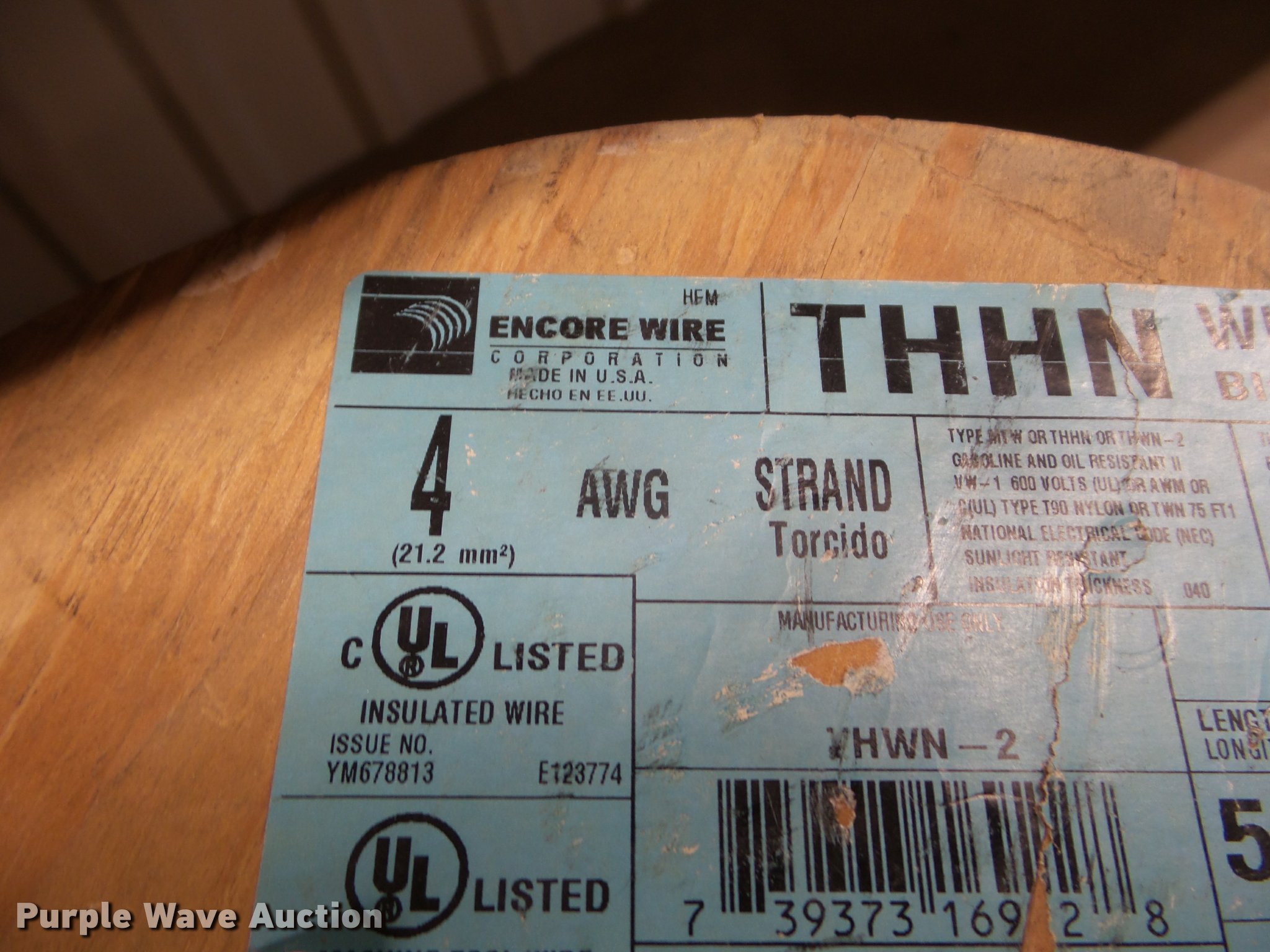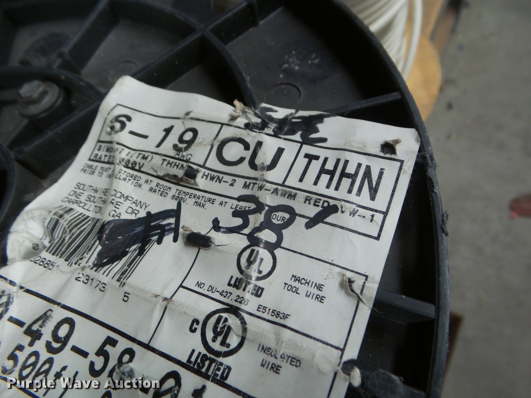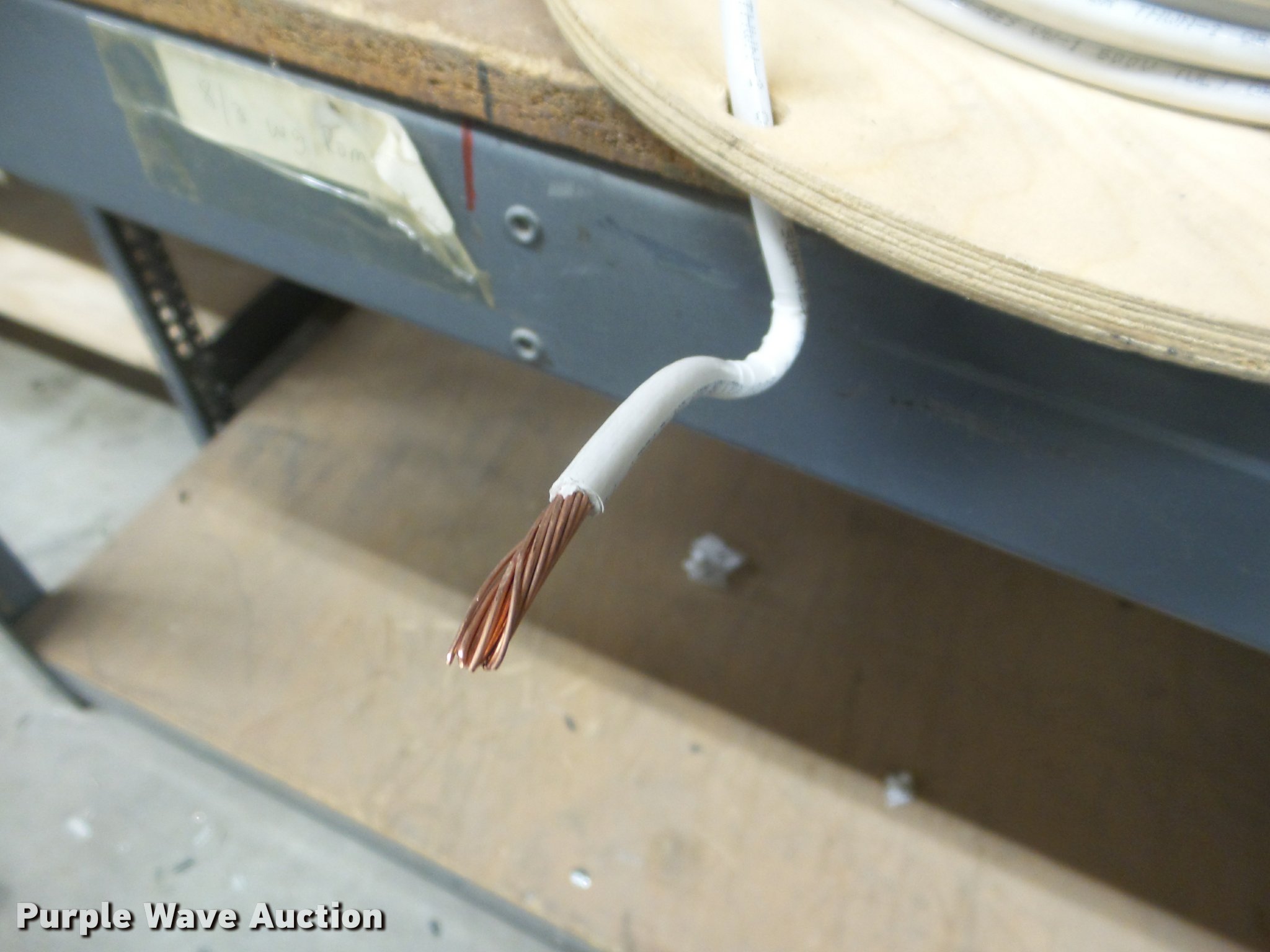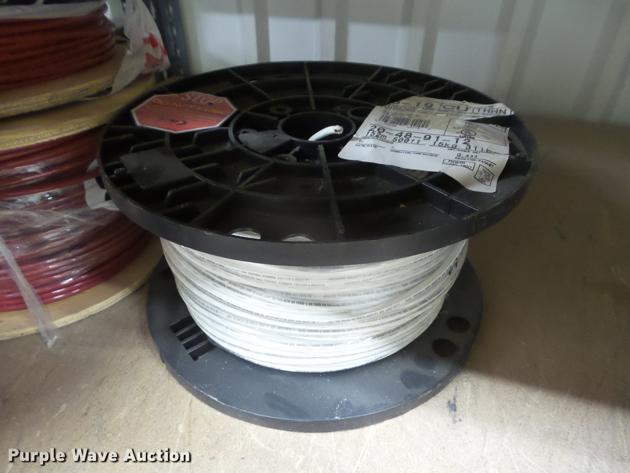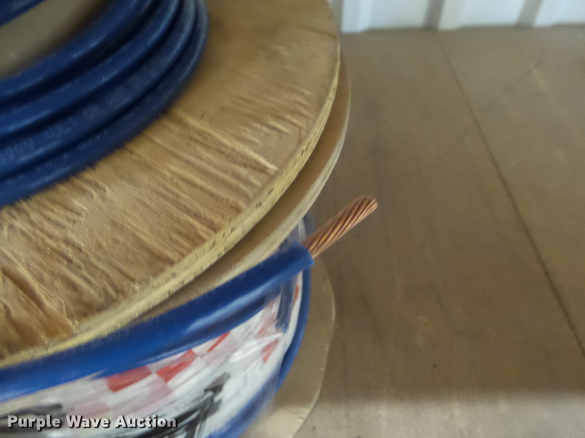 Purple Wave is selling a used Building Materials in Kansas. This item is a (17) spools of wire with the following: 8 AWG THHN, 6 AWG THHN, 4 AWG THHN, 18-3, 12-3, No. 4 AWG THHN, 14-8 seoprene