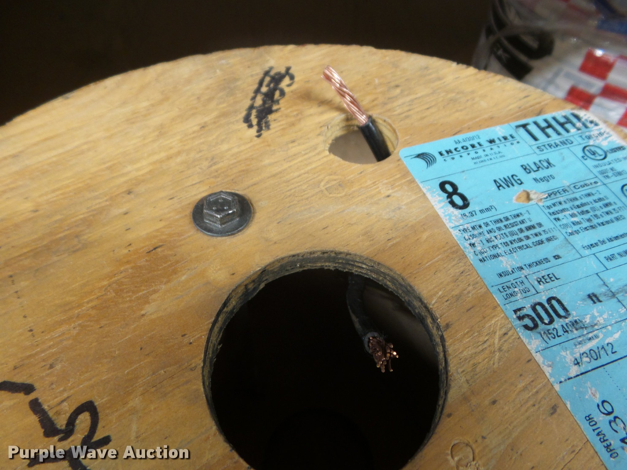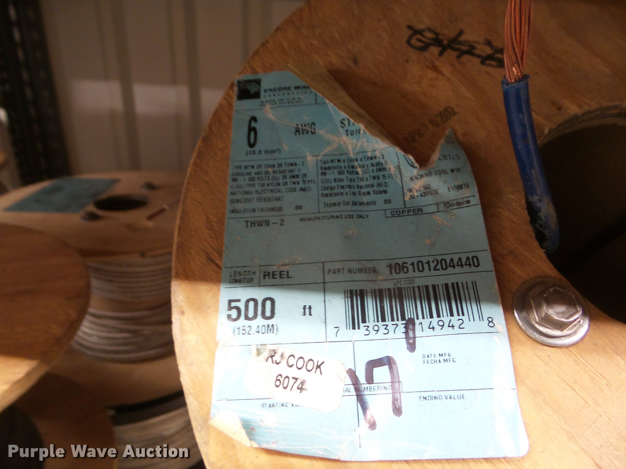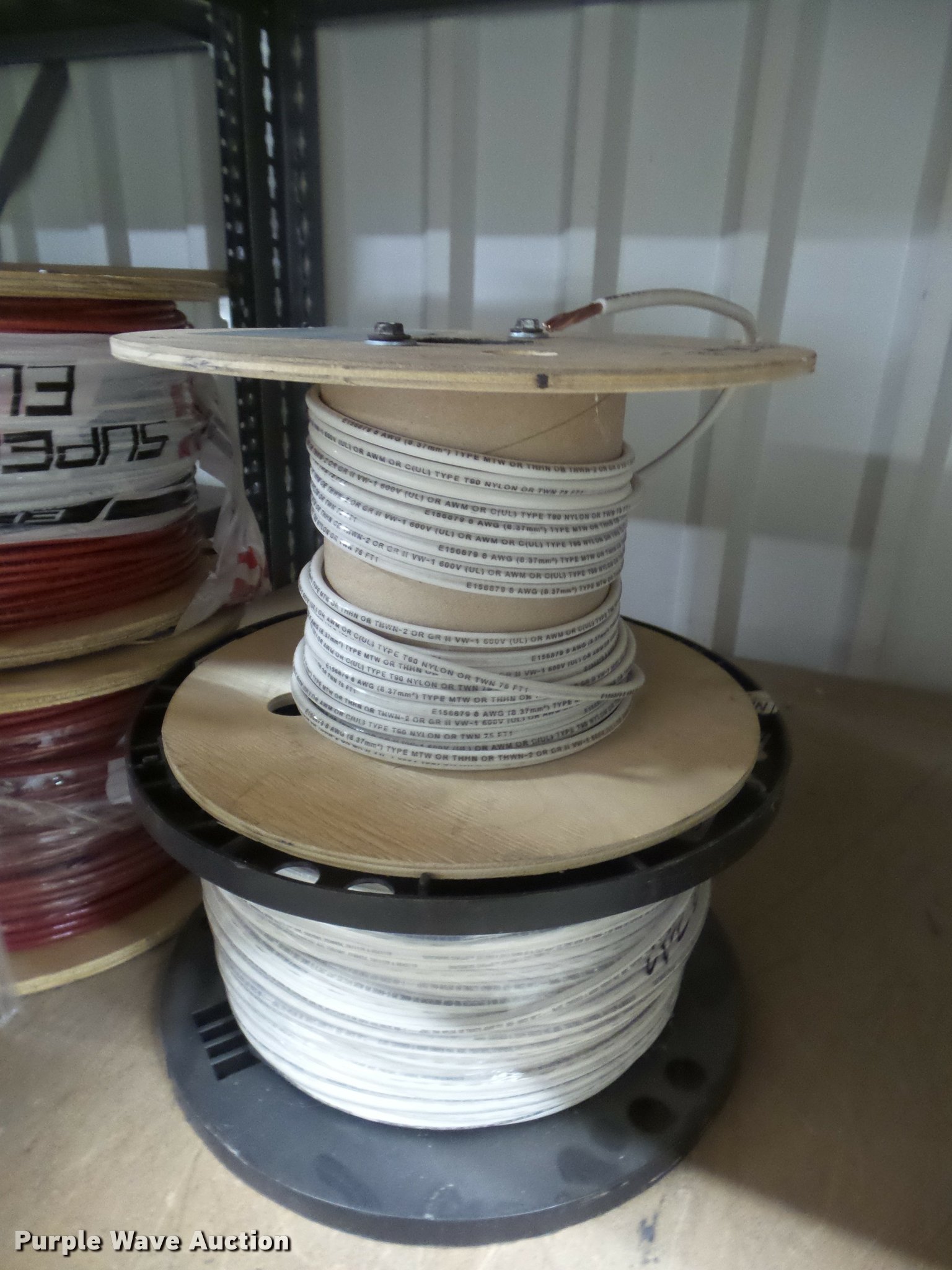 (17) spools of wire. 8 AWG THHN, 6 AWG THHN, 4 AWG THHN, 18-3, 12-3, No. 4 AWG THHN, 14-8 seoprene. Western Cooperative Electric. WaKeeney, KS 67672