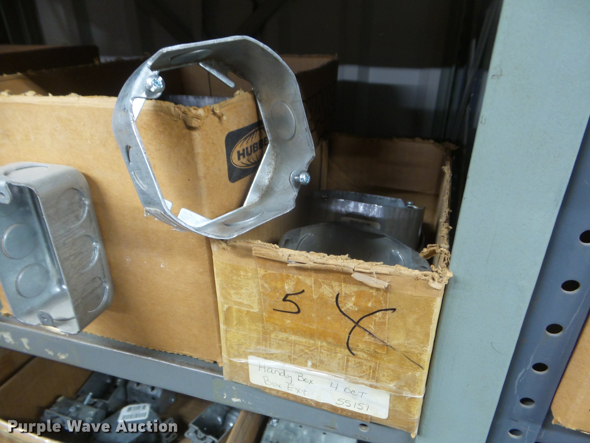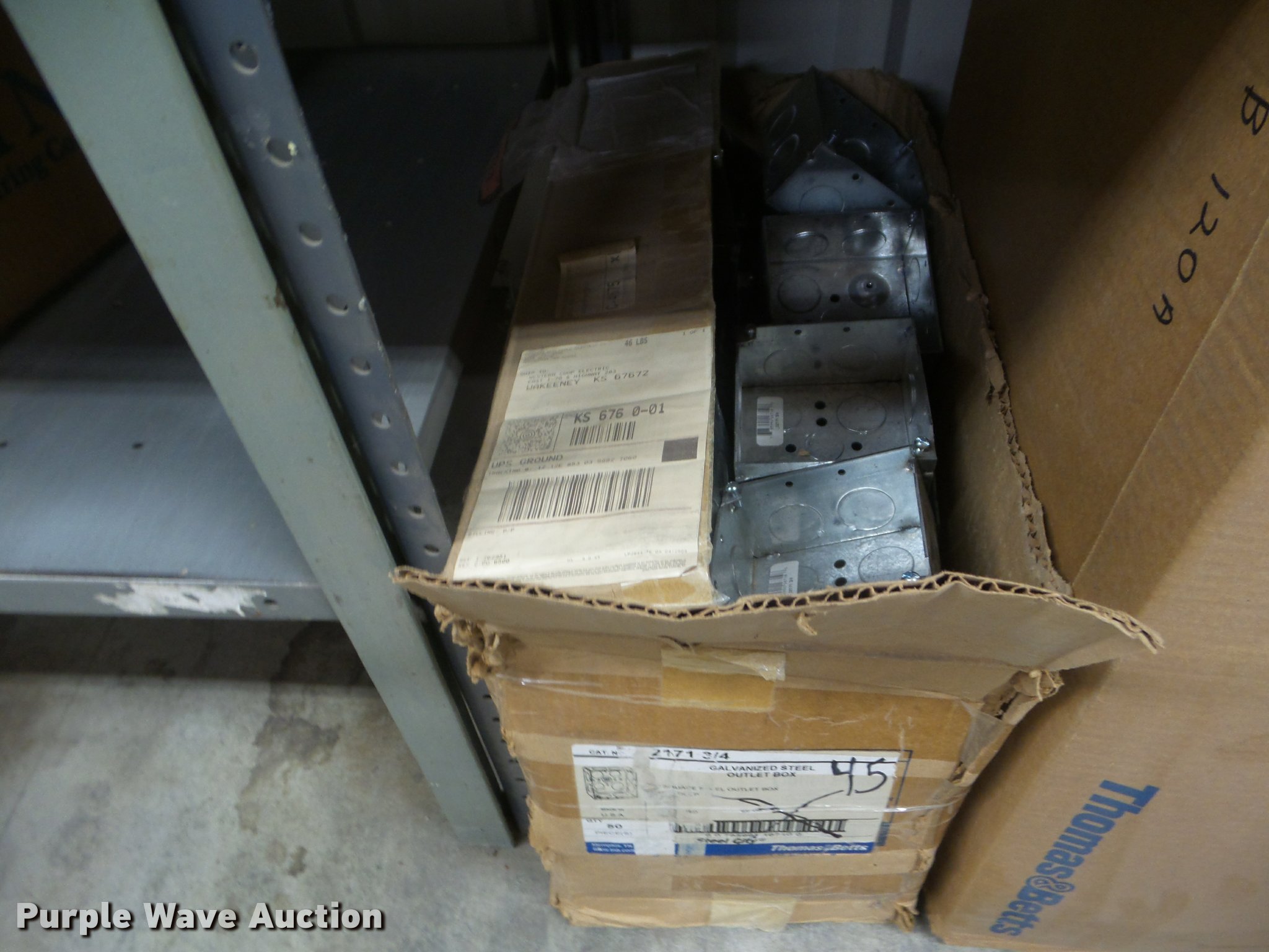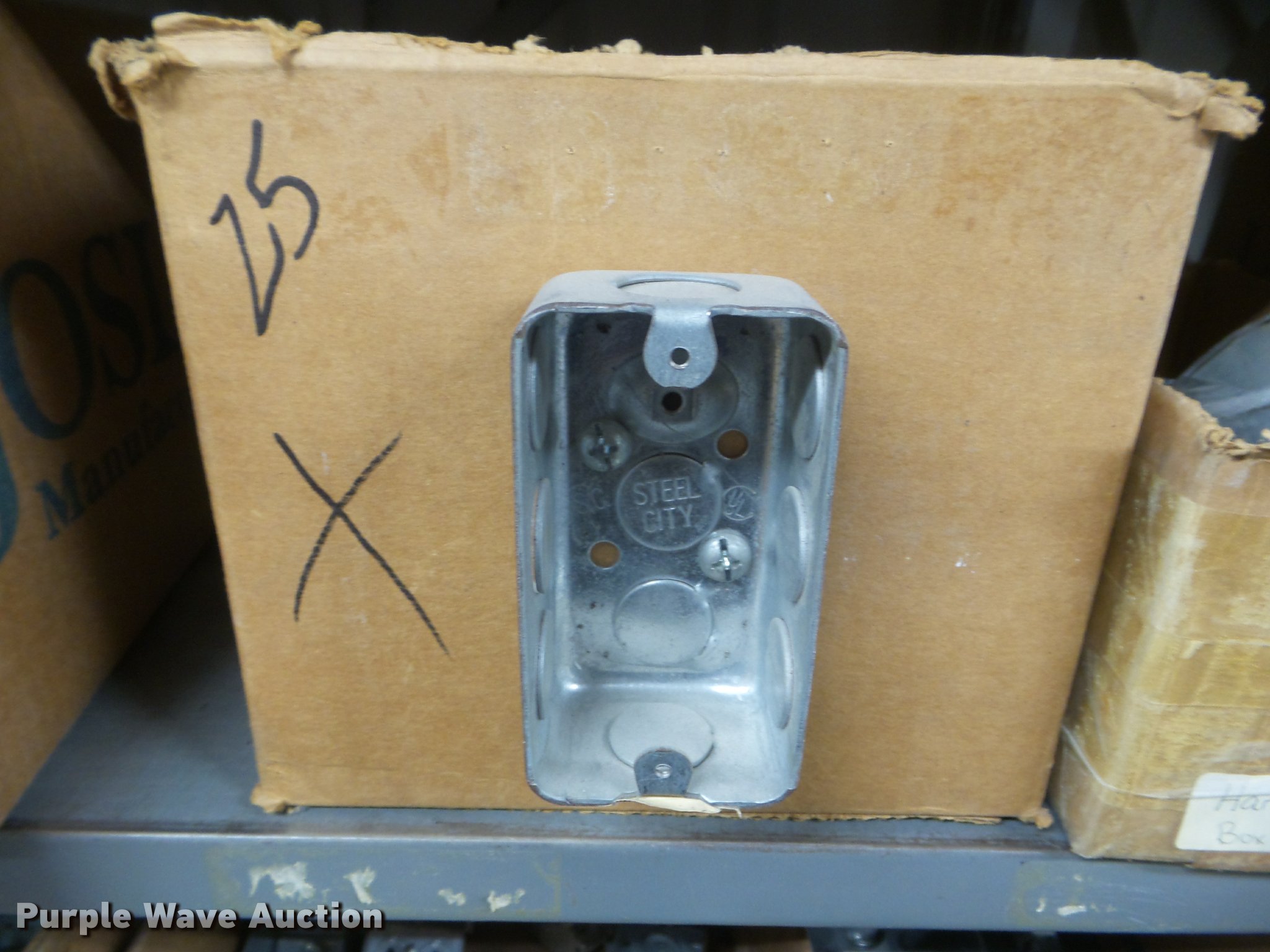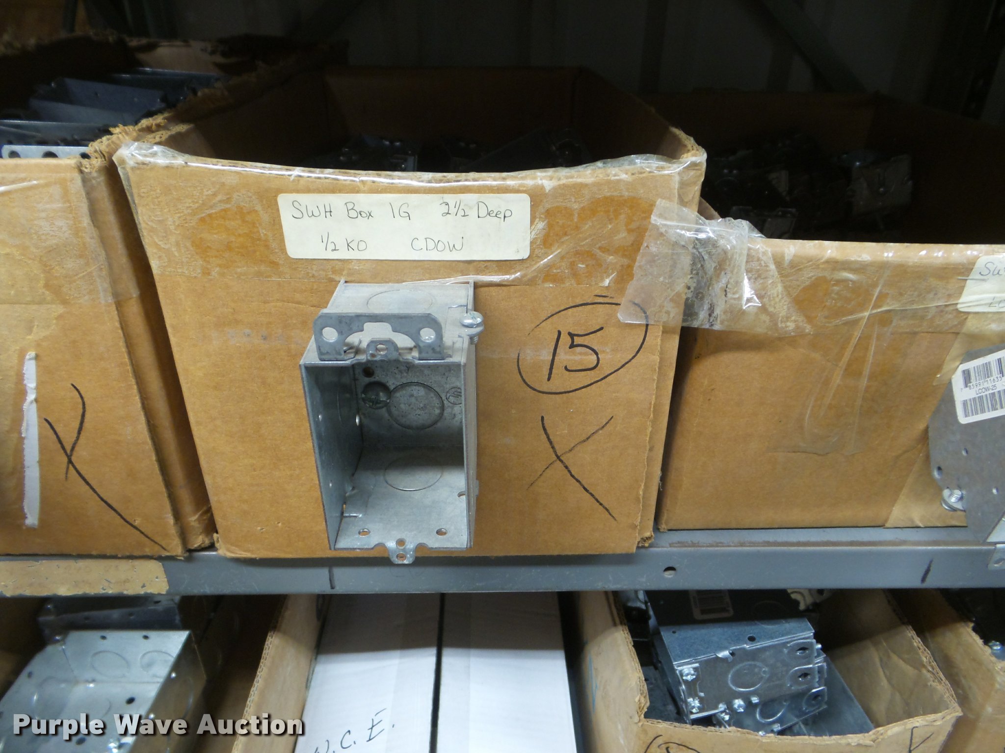 Purple Wave is selling a used Building Materials in Kansas. This item is a Building materials with the following: Rough in boxes, Conduit boxes, Brake box kits, Switch boxes, Junction boxes, Ceiling light boxes, PVC fittings, Shelving not included
