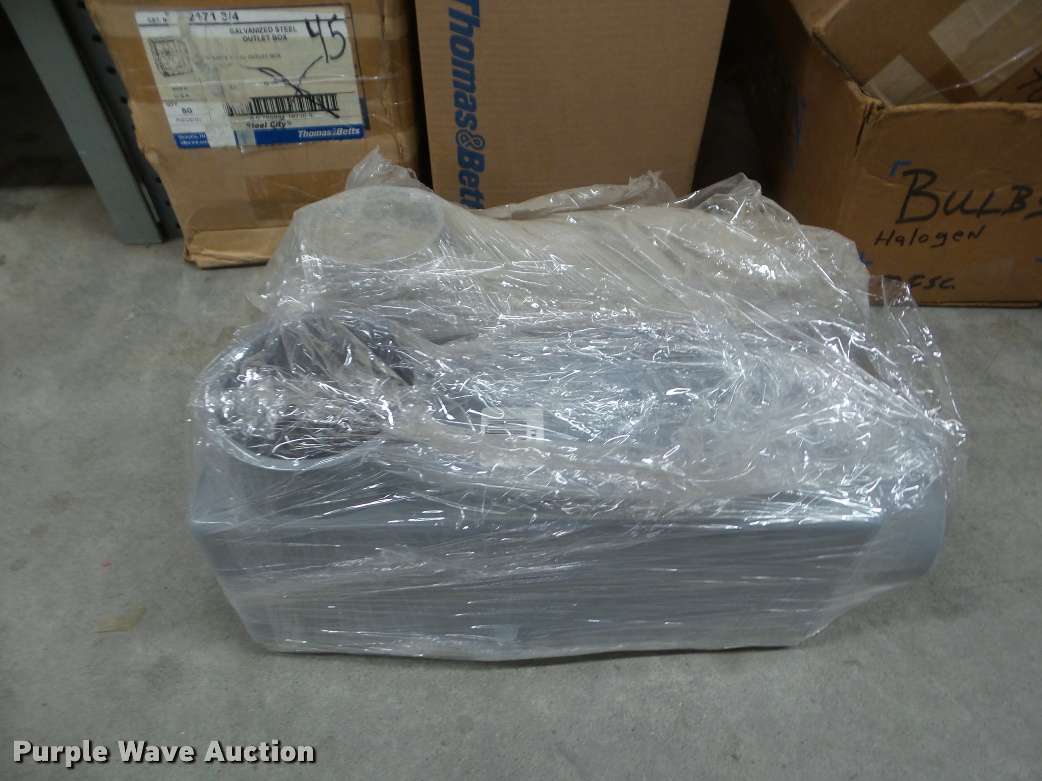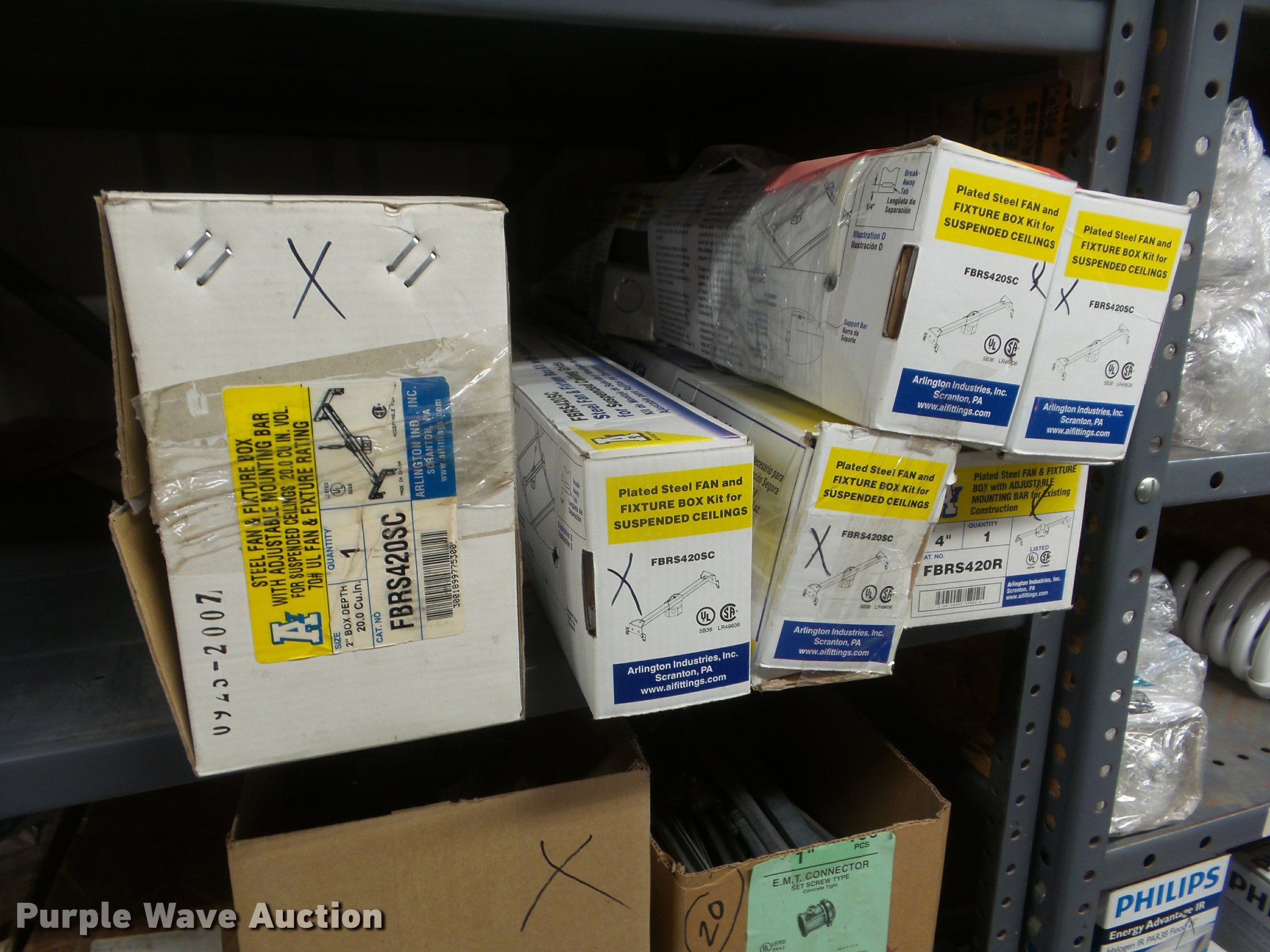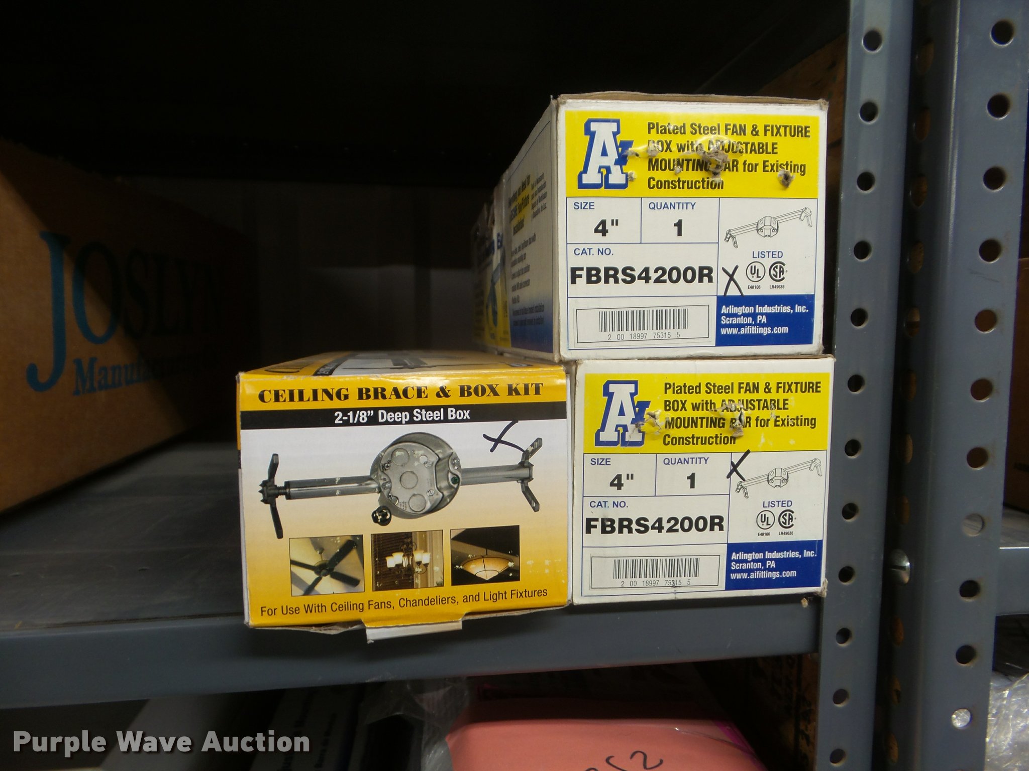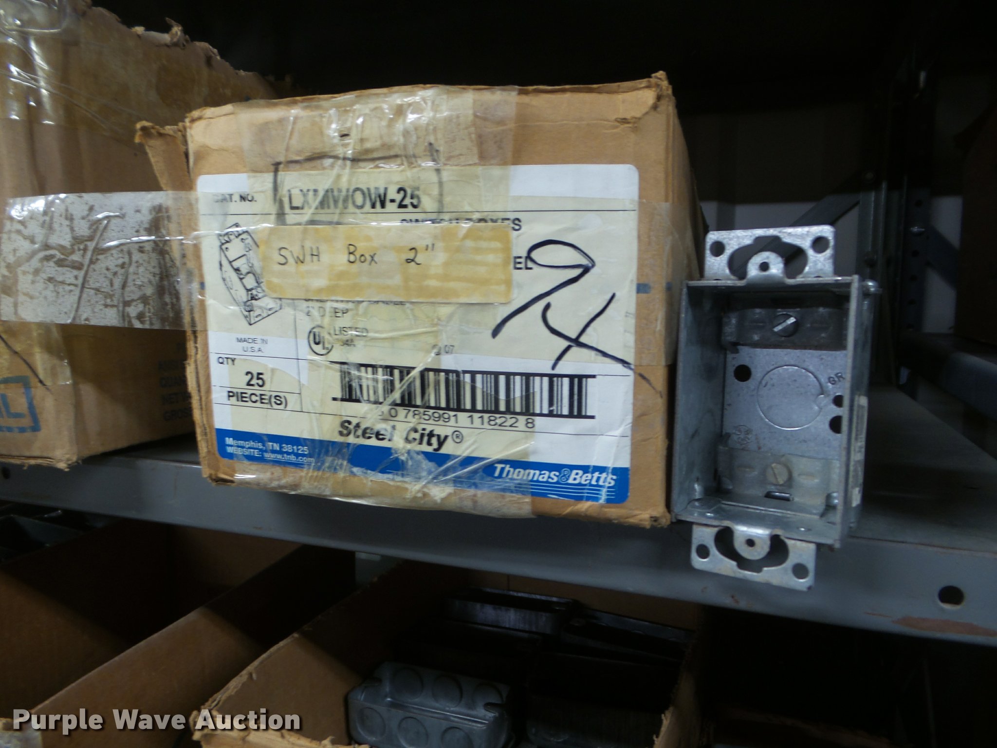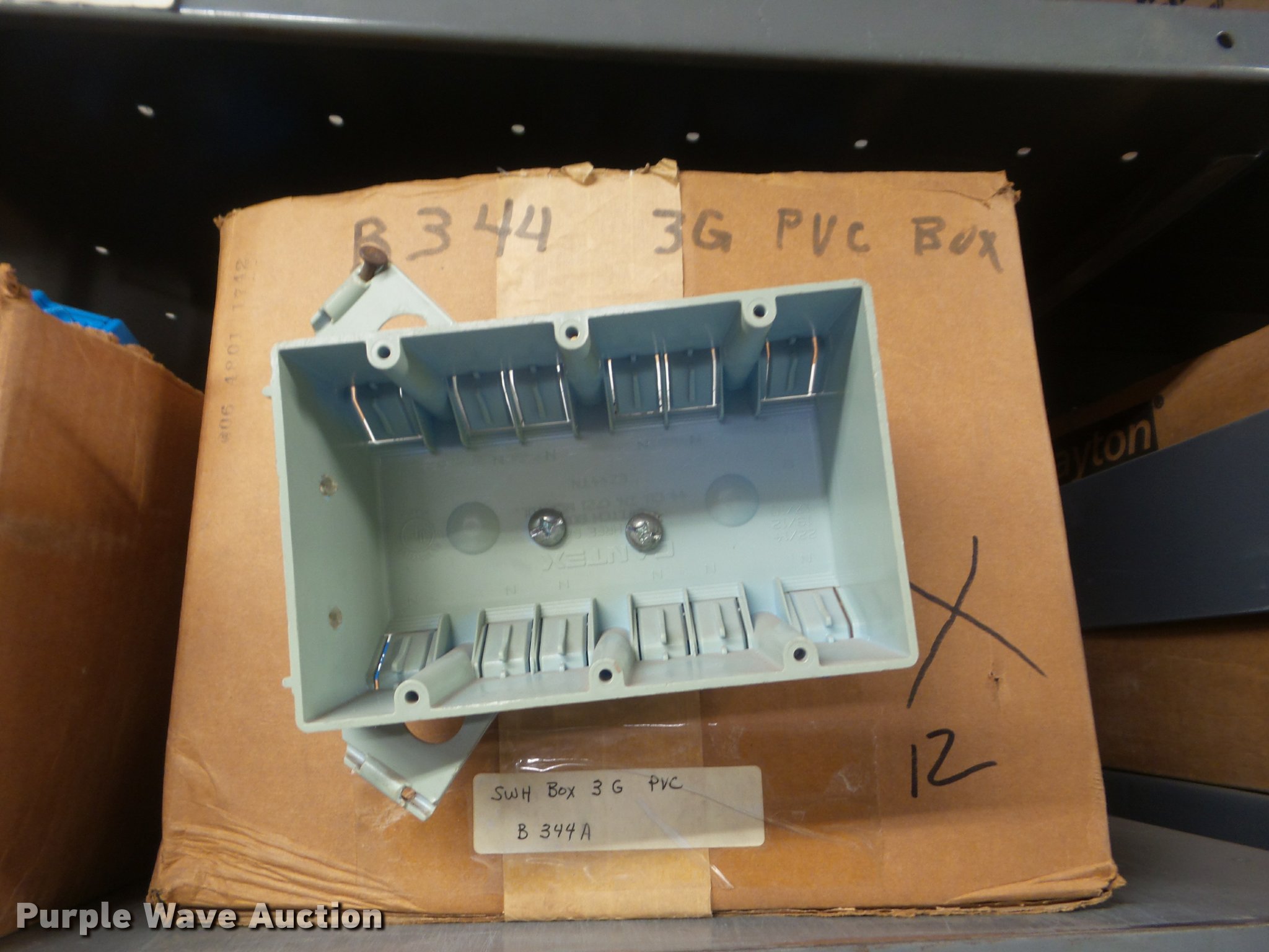 Purple Wave is selling a used Building Materials in Kansas. This item is a Building materials with the following: Rough in boxes, Conduit boxes, Brake box kits, Switch boxes, Junction boxes, Ceiling light boxes, PVC fittings, Shelving not included