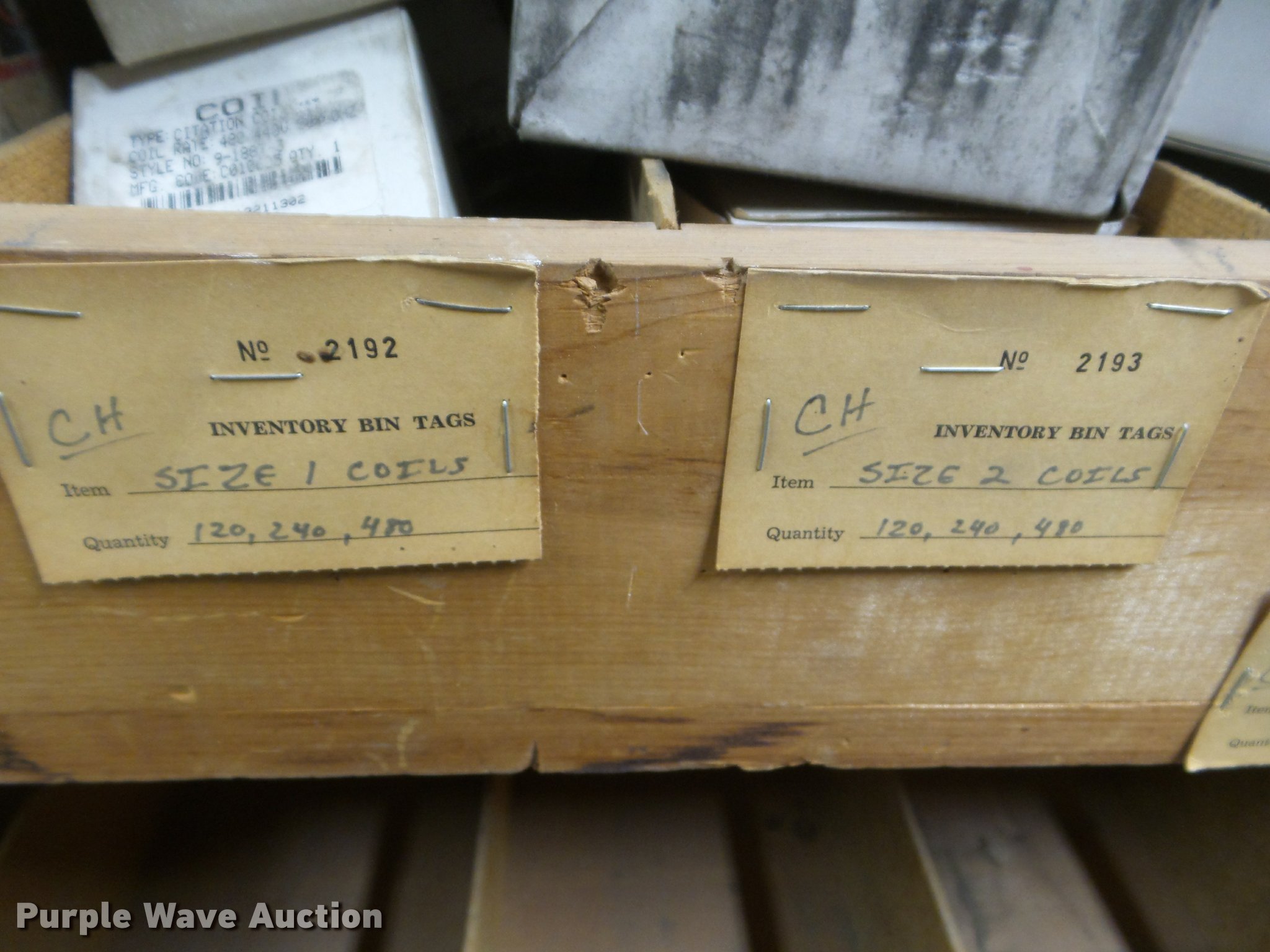 Pump panel replacement parts. Delay relays, Latching relays, Power relays, Time delay relays, Coils, Push buttons, Contact blocks, Relay bases, HOA switches, Contractors, Shelving not included. Western Cooperative Electric. WaKeeney, KS 67672