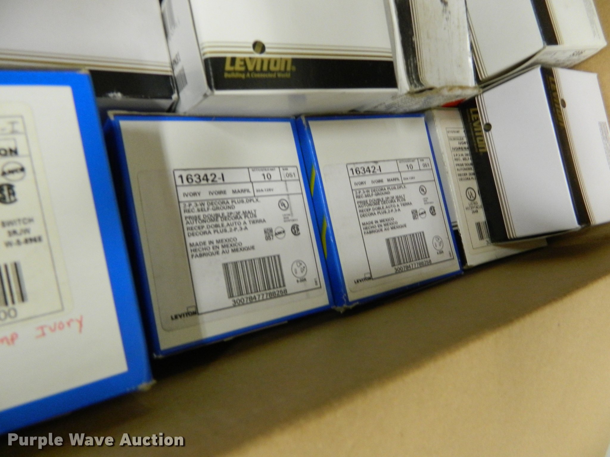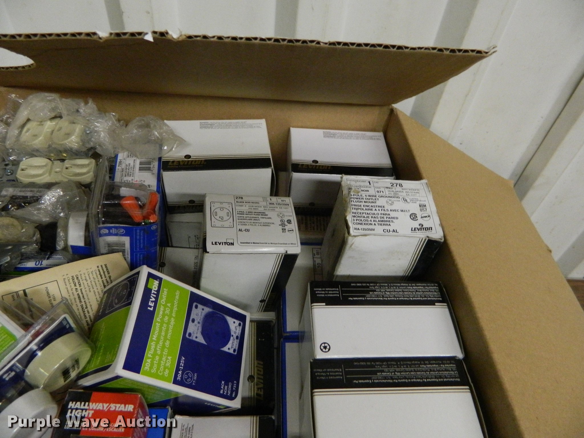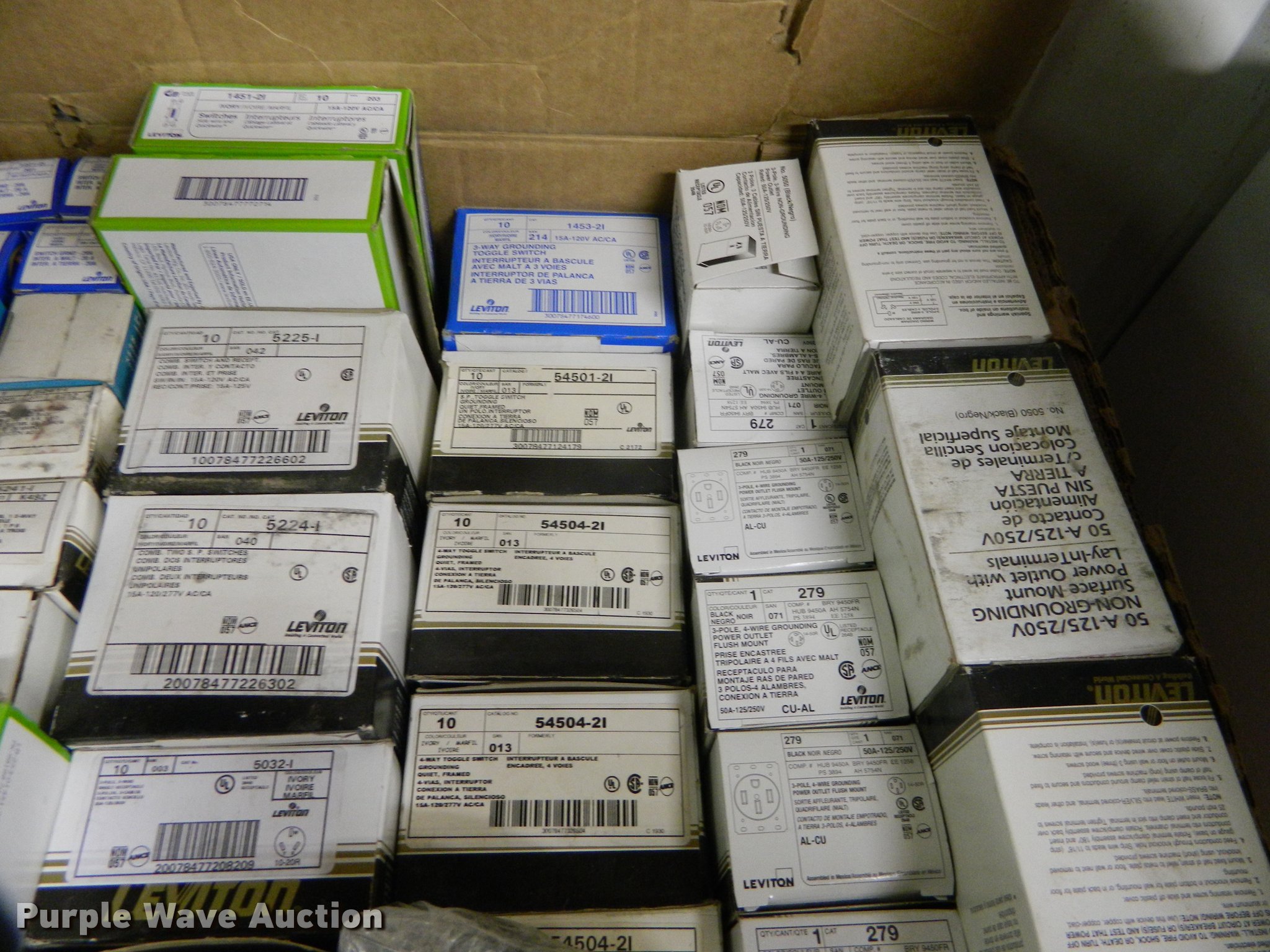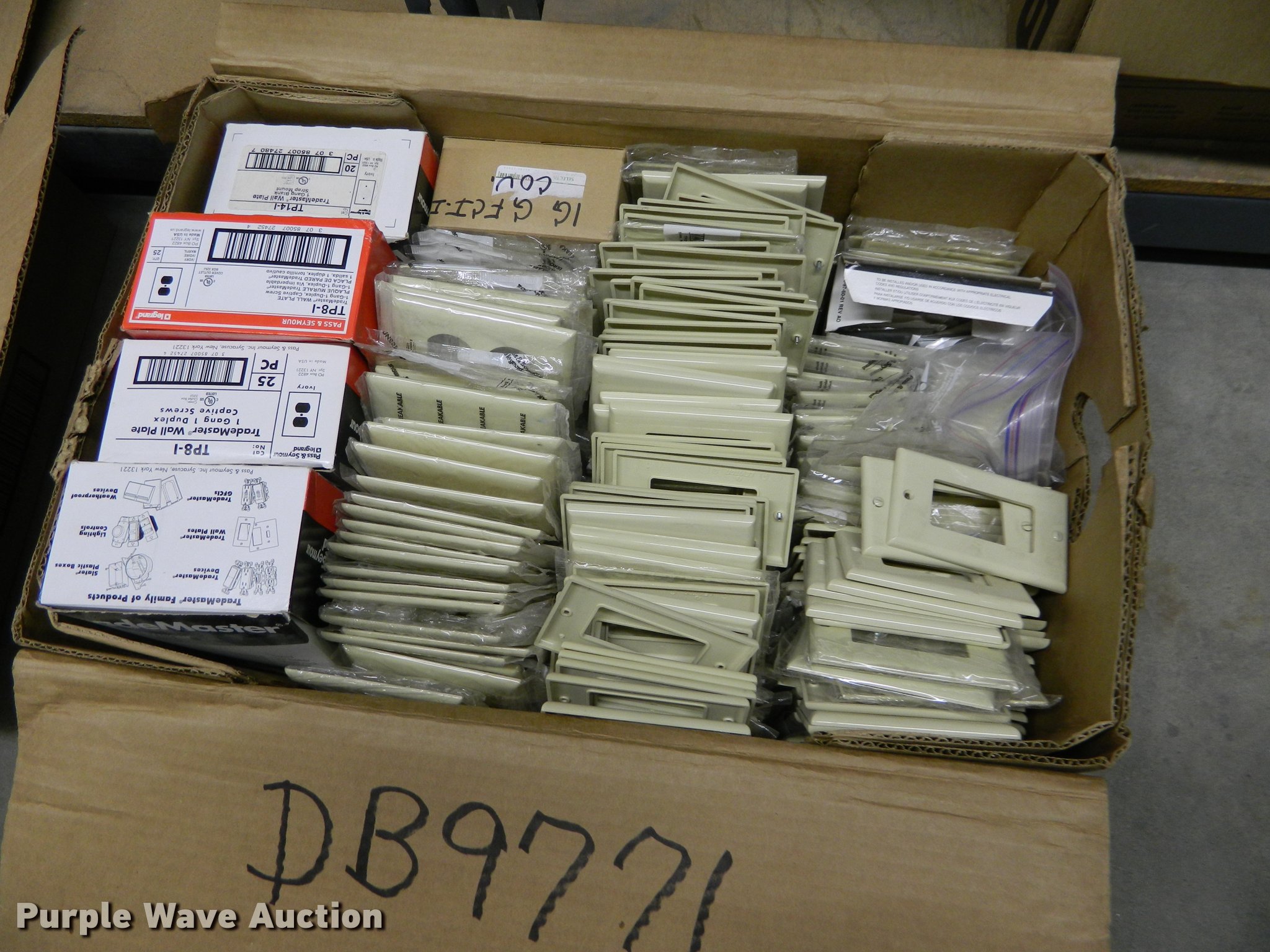 Purple Wave is selling a used Building Materials in Kansas. This item is a Building materials with the following: Electrical fittings, Receptacles, Receptacle covers, Switches, Dimmer switches, Pole switches, Four-way switches, Double pole switches, T-B Meyers hubs, Plate covers, Hubs, Shelving not included