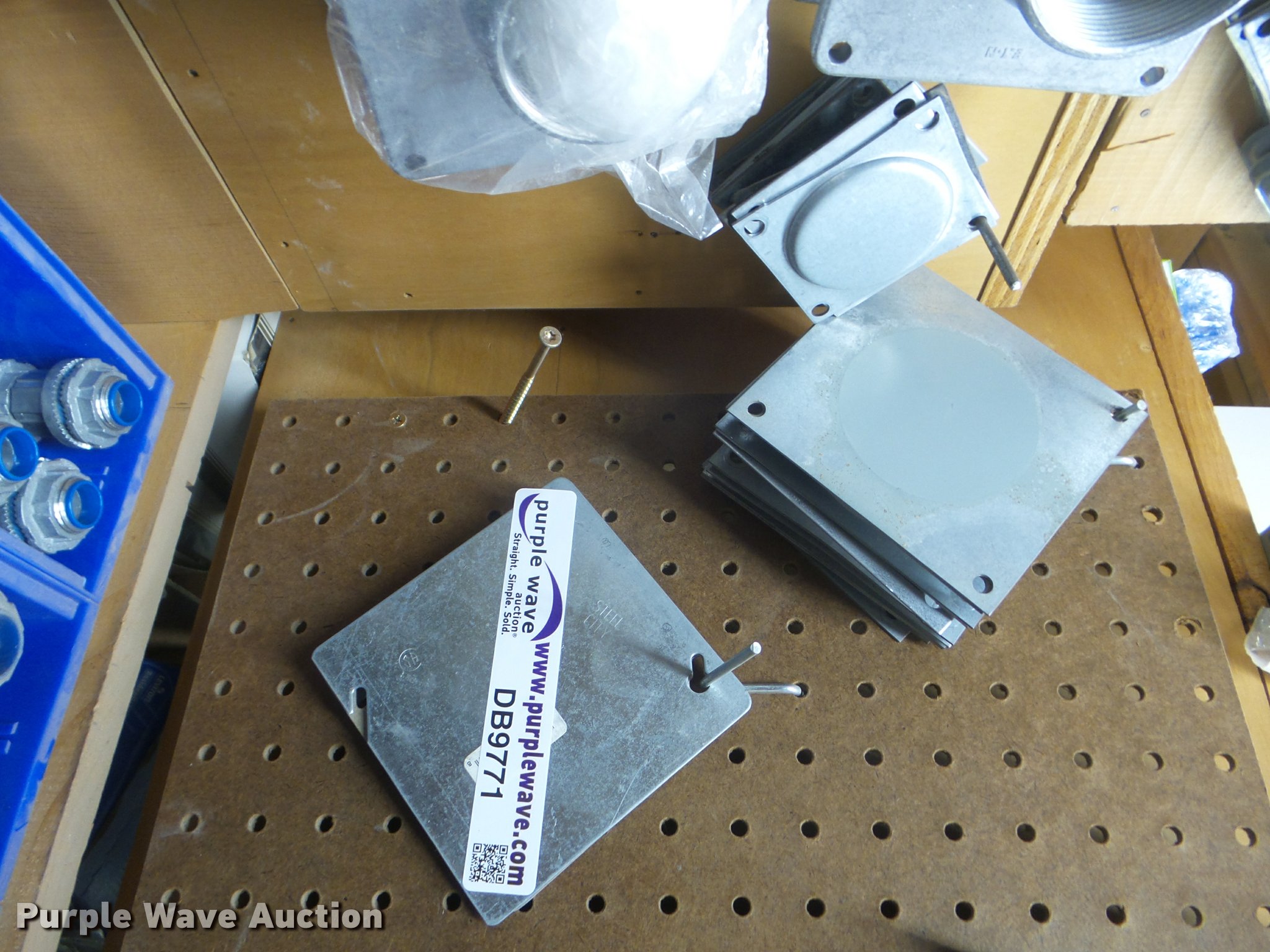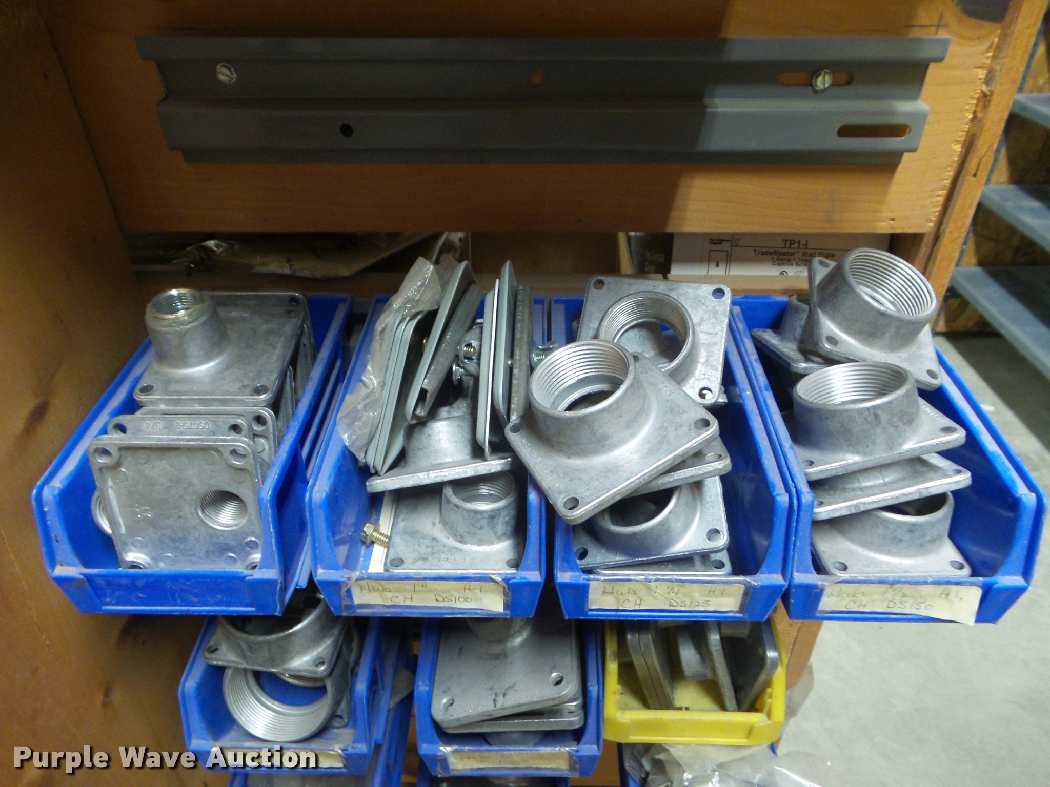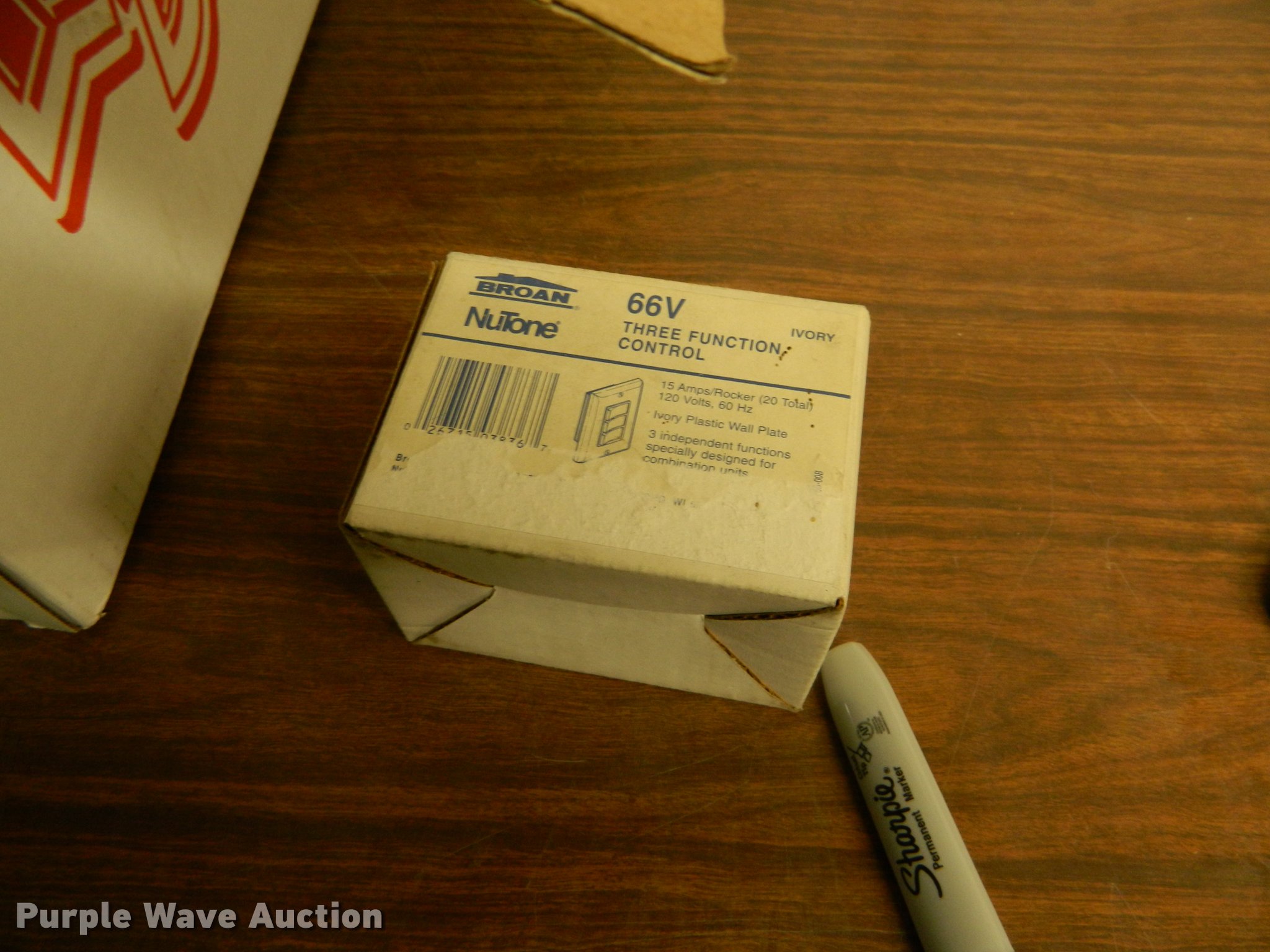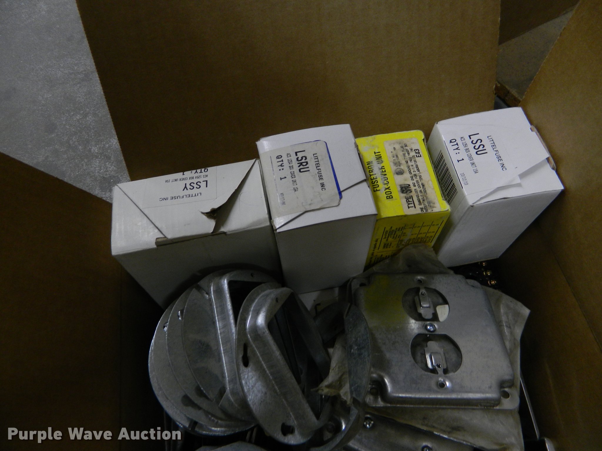 Purple Wave is selling a used Building Materials in Kansas. This item is a Building materials with the following: Electrical fittings, Receptacles, Receptacle covers, Switches, Dimmer switches, Pole switches, Four-way switches, Double pole switches, T-B Meyers hubs, Plate covers, Hubs, Shelving not included