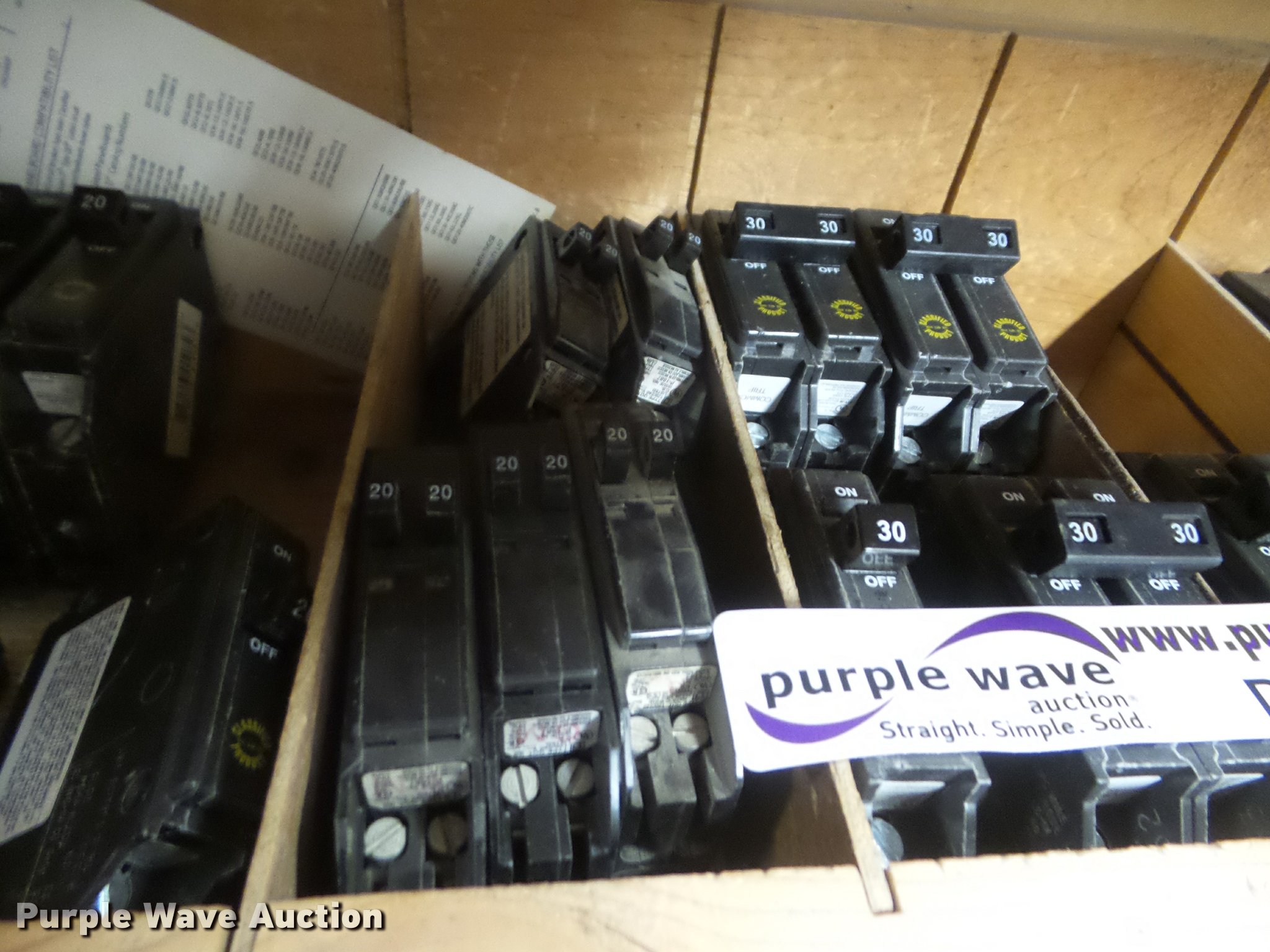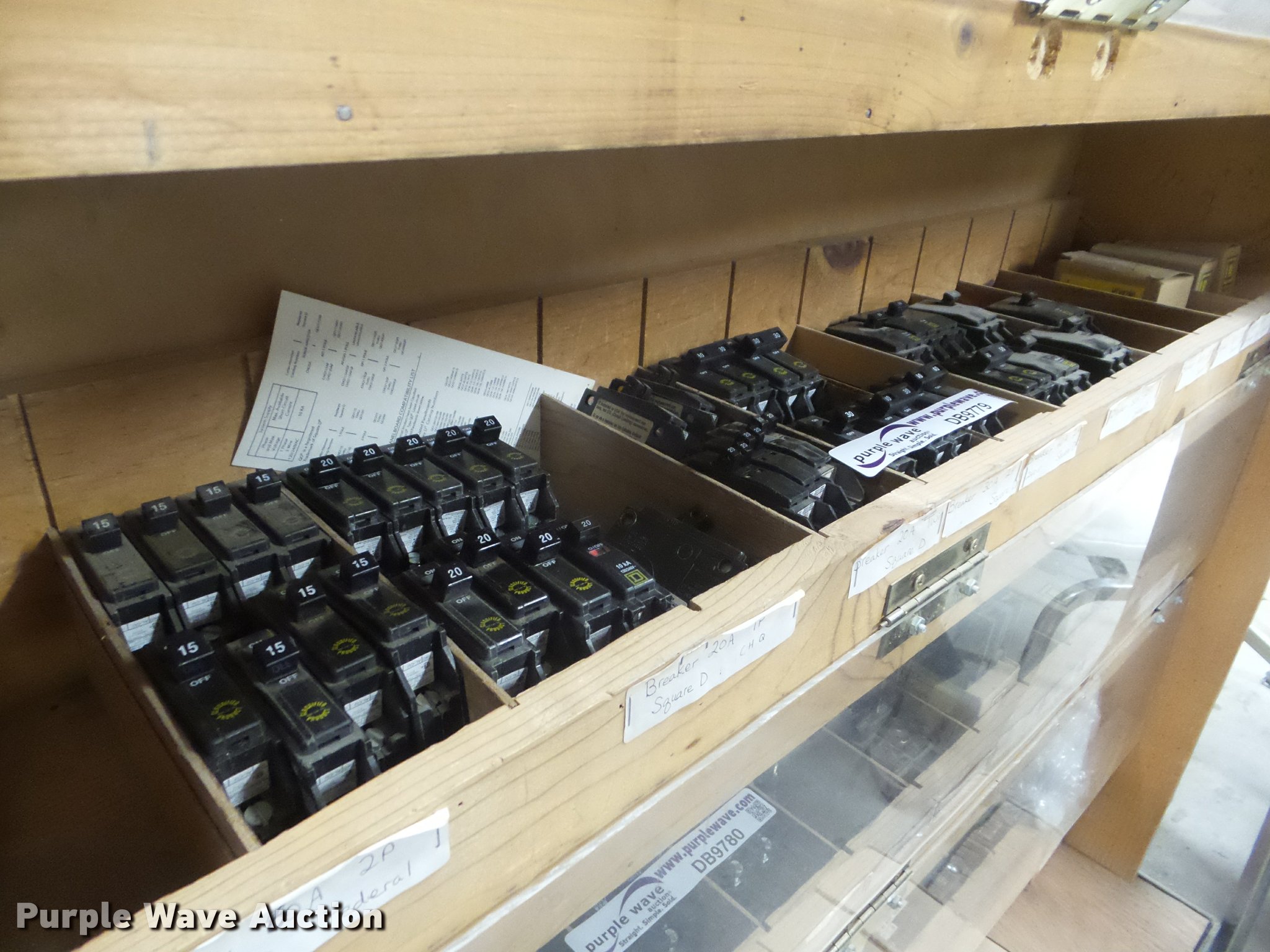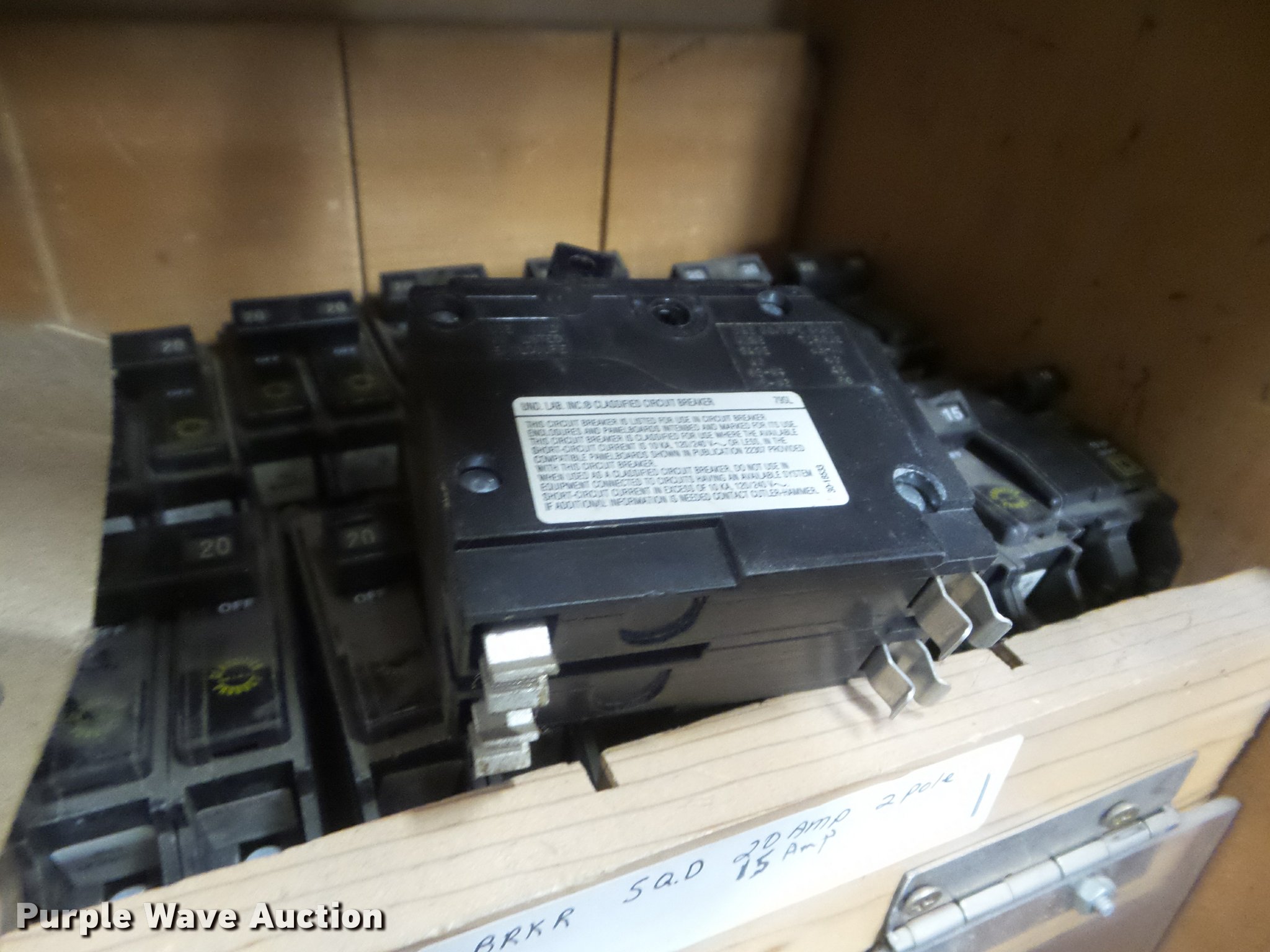 Purple Wave is selling a used Building Materials in Kansas. This item is a Square D breakers with the following: 15 amp to 90 amp