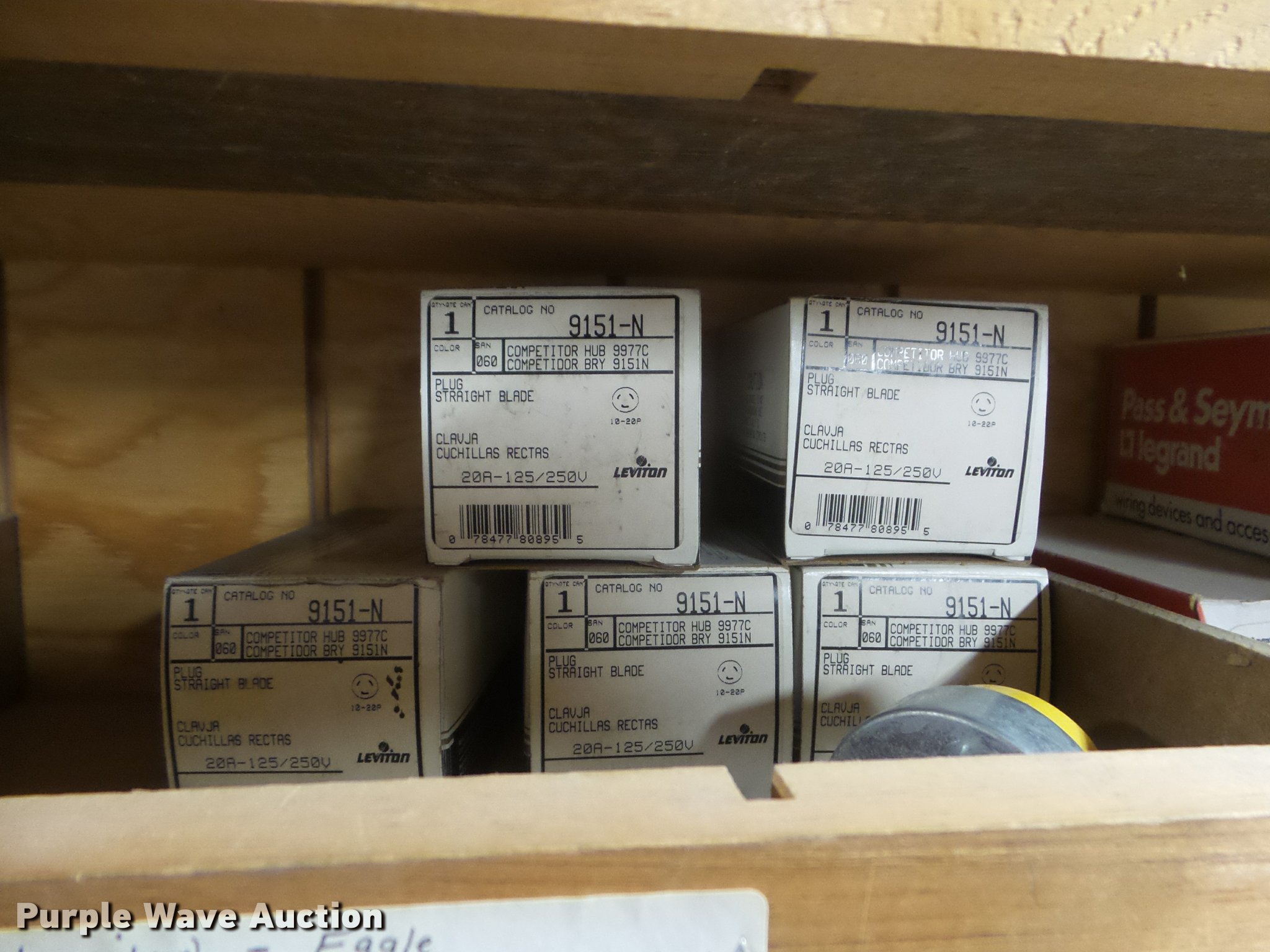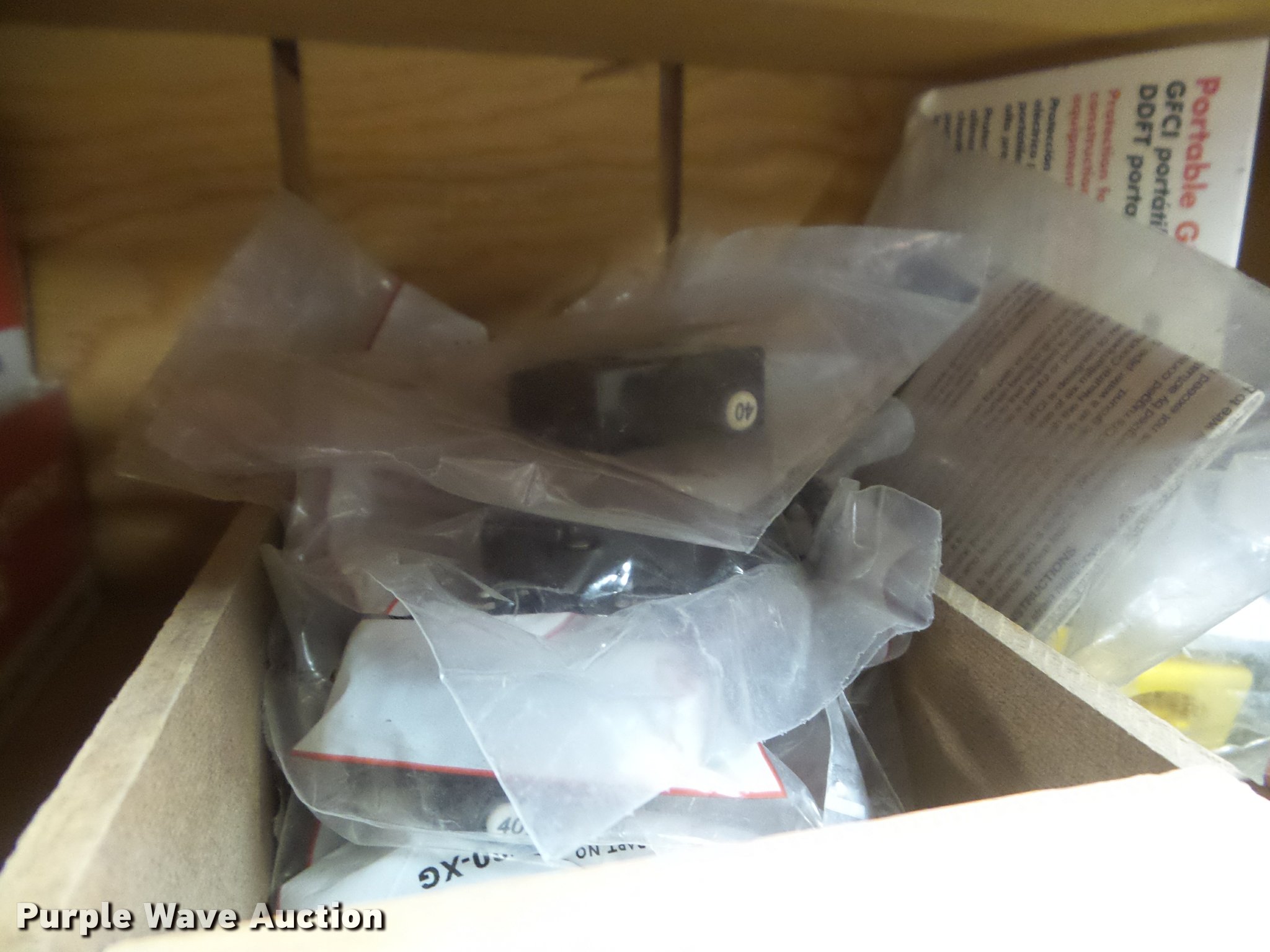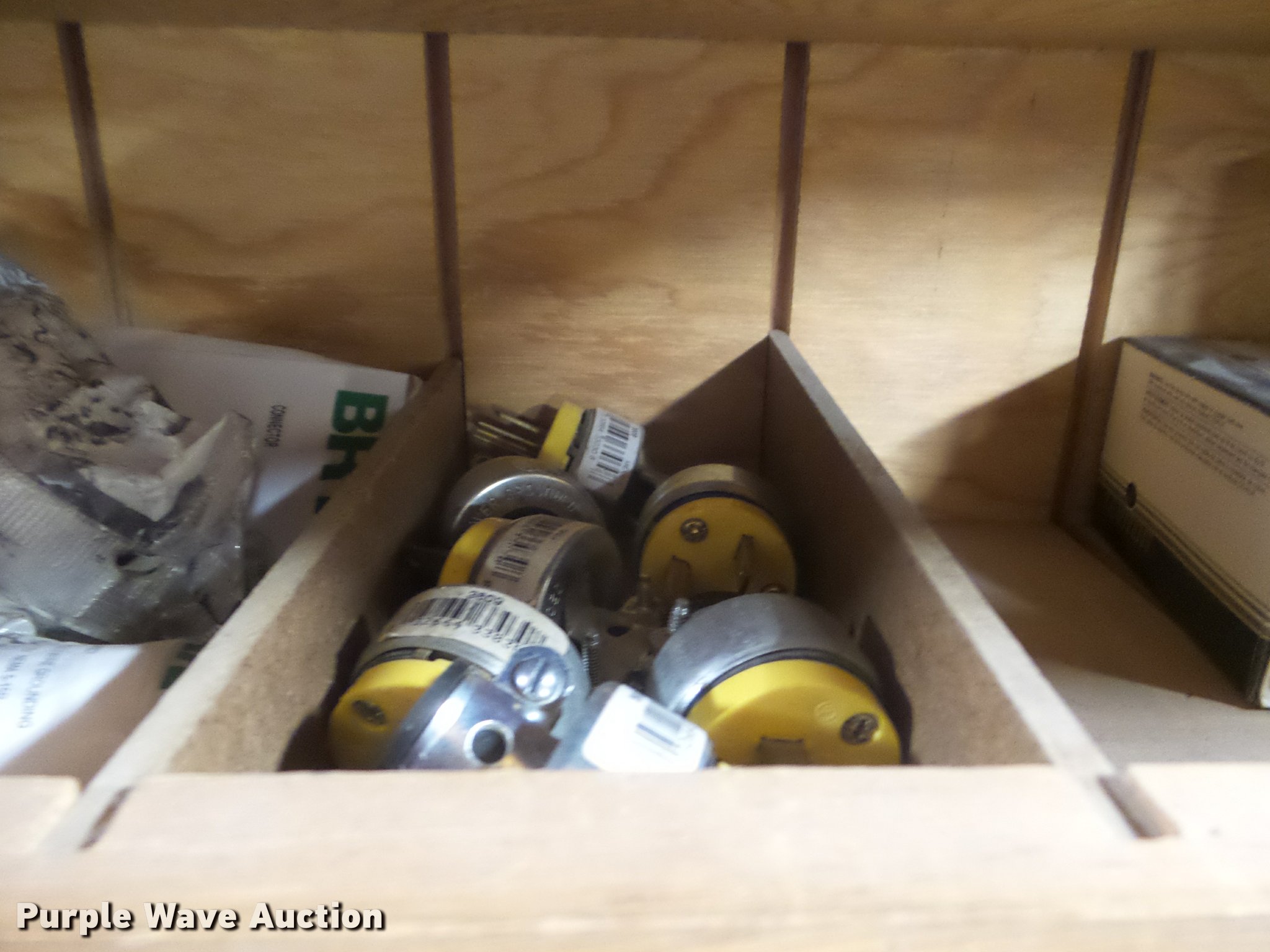 Purple Wave is selling a used Building Materials in Kansas. This item is a Building materials with the following: Plugs, Male and female, Crowfoot, Bryant, Eagle, WinPower, Leviton makes, Thermostats, Photo cells