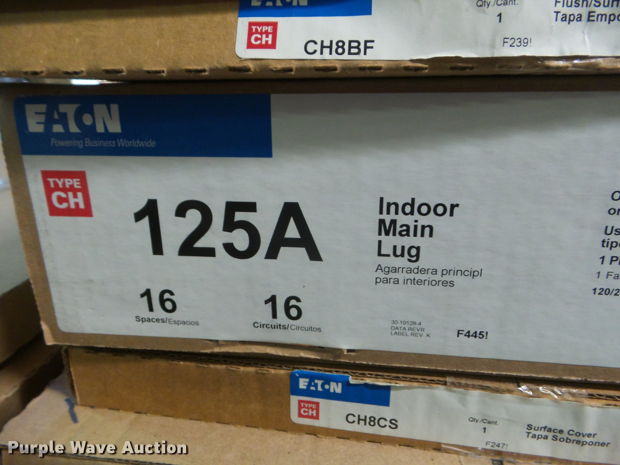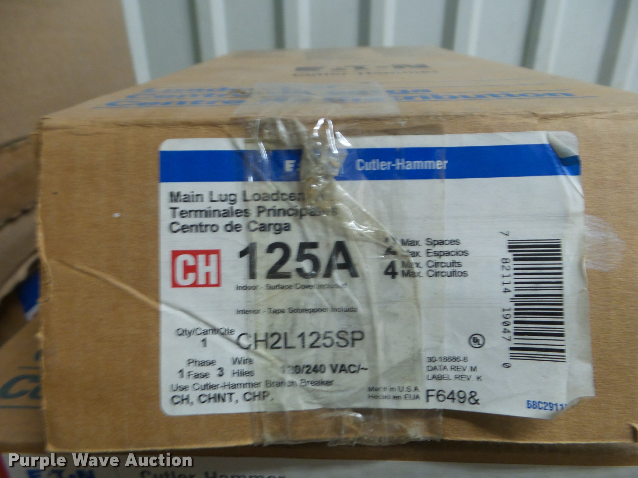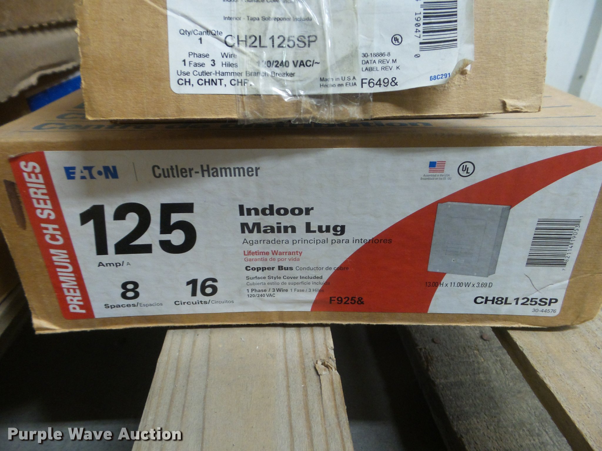 Purple Wave is selling a used Building Materials in Kansas. This item is a Electrical panels with the following: (2) 125 amp with covers, 225 amp with cover, (2) 125 amp main lug panels