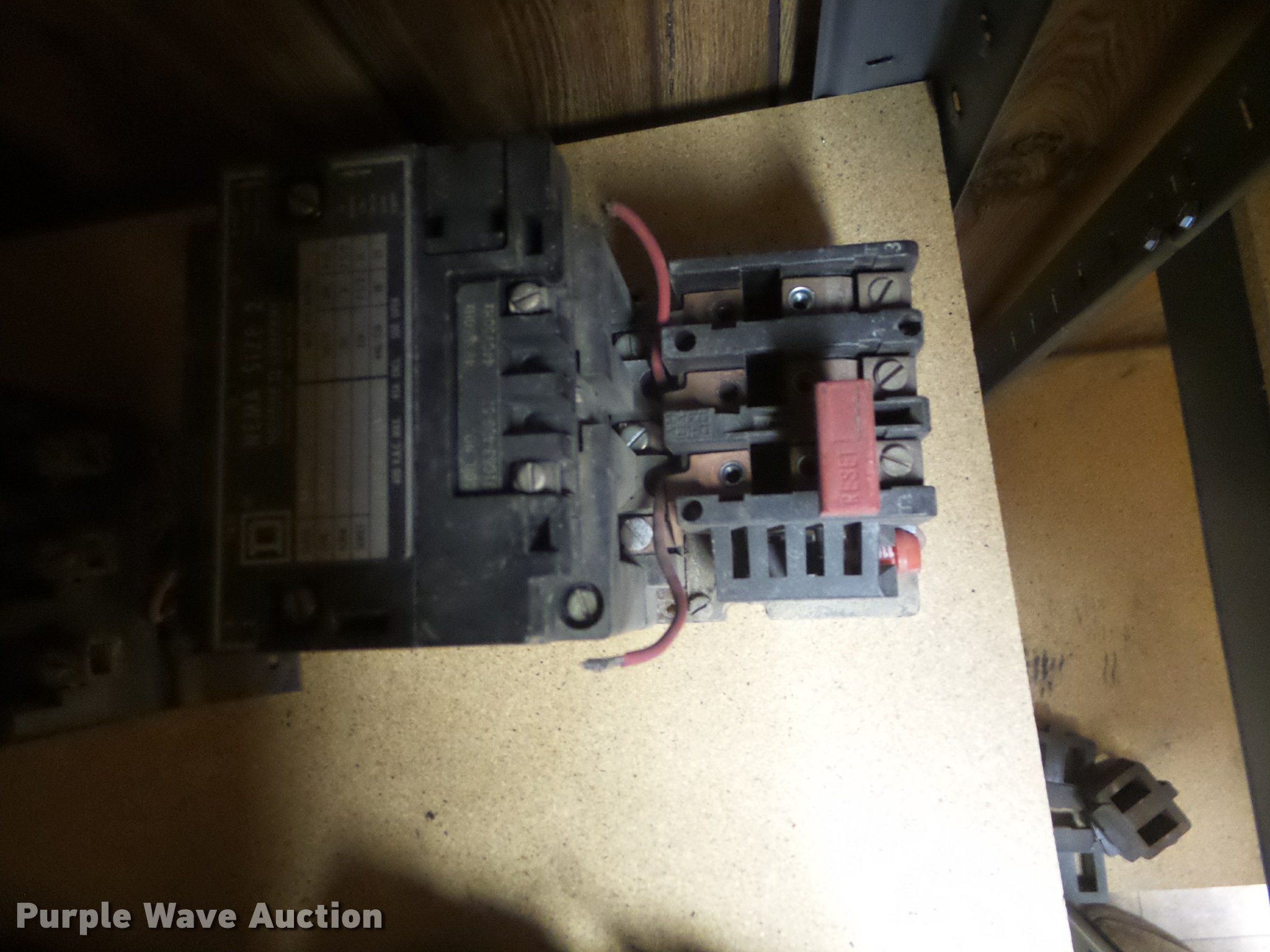 Purple Wave is selling a used Building Materials in Kansas. This item is a Building materials with the following: Line starters, Used, Electric generators, Chain, Allen Bradley panels, Fuse clips, 5 HP electric motor, Shelving not included