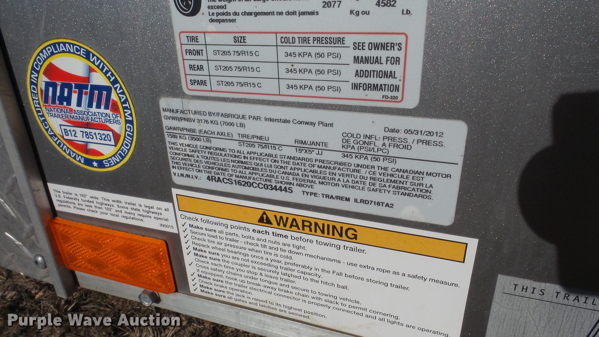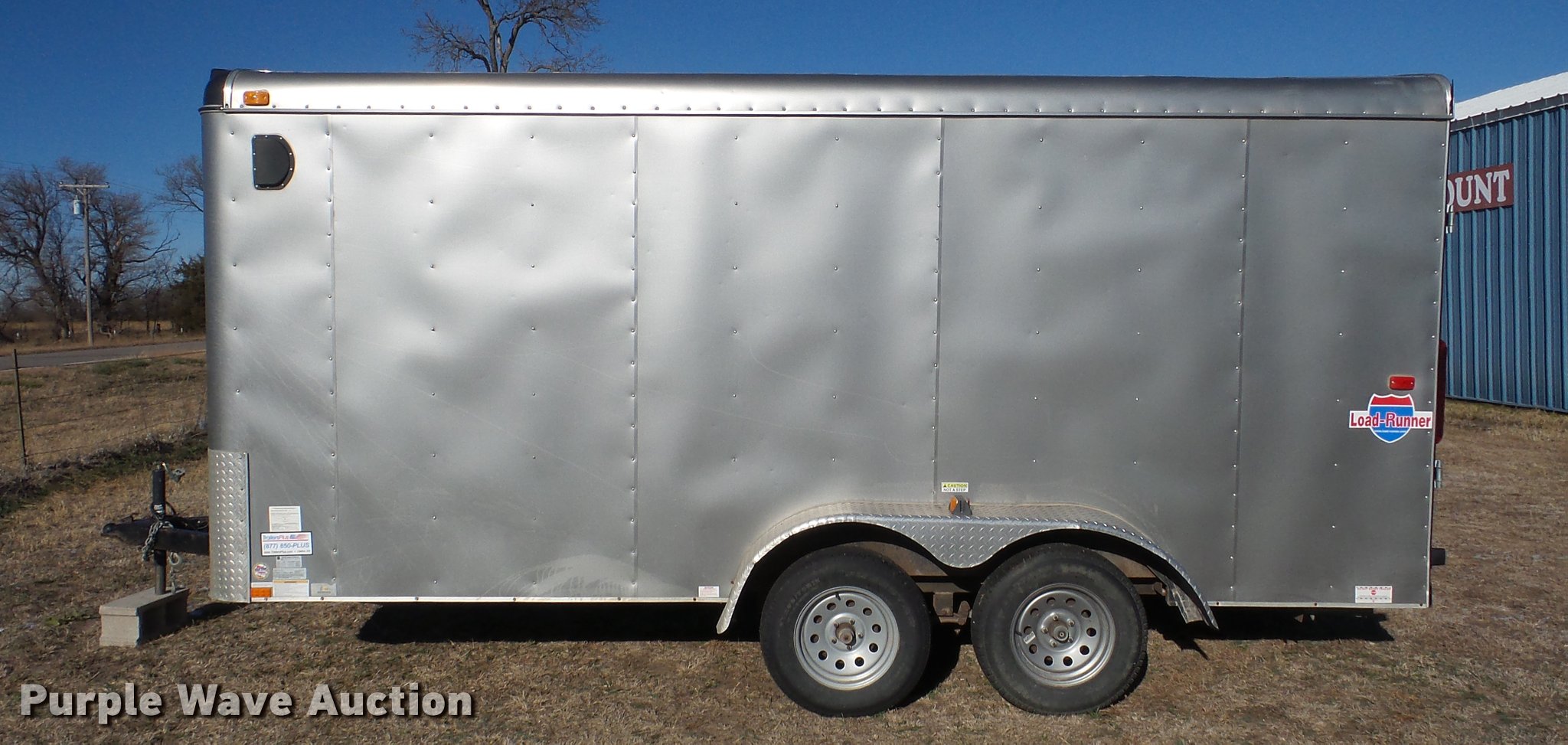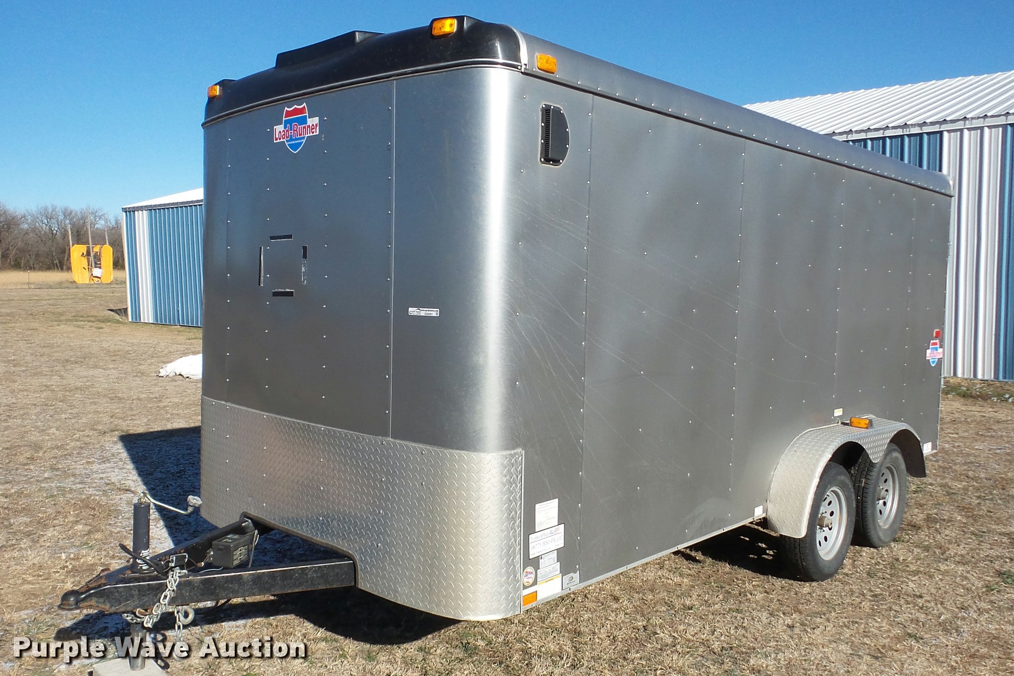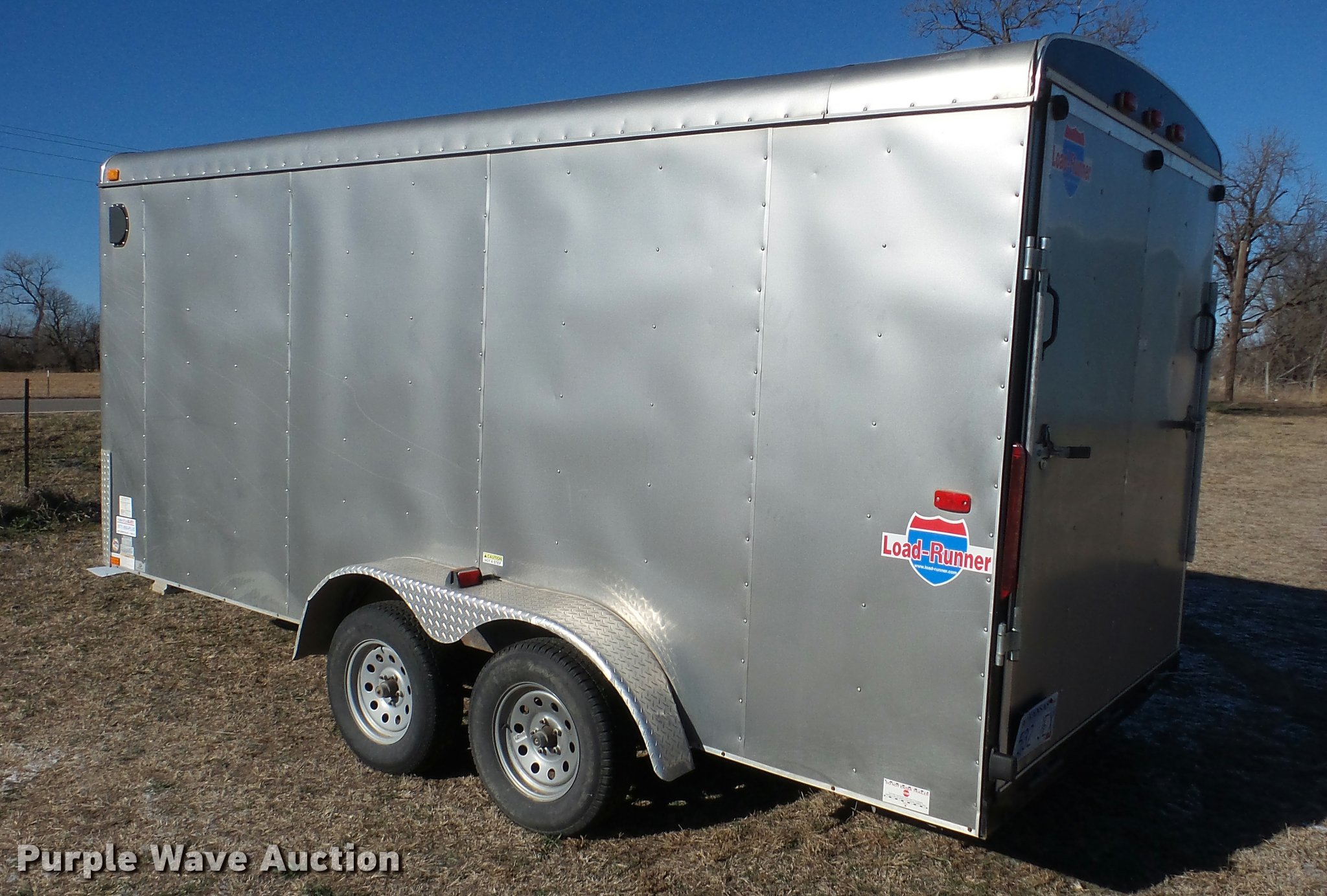 Purple Wave is selling a used Enclosed Cargo Trailer in Kansas. This item is a 2012 Interstate Load Runner enclosed cargo trailer with the following: 16'L x 7'W, 74" interior height, Wood floor, Side access door, Rear folding door, Interior lighting, Pro Series break-away system, Ball hitch, Spring suspension, 205/75R15 tires, GVWR 7,000 lbs