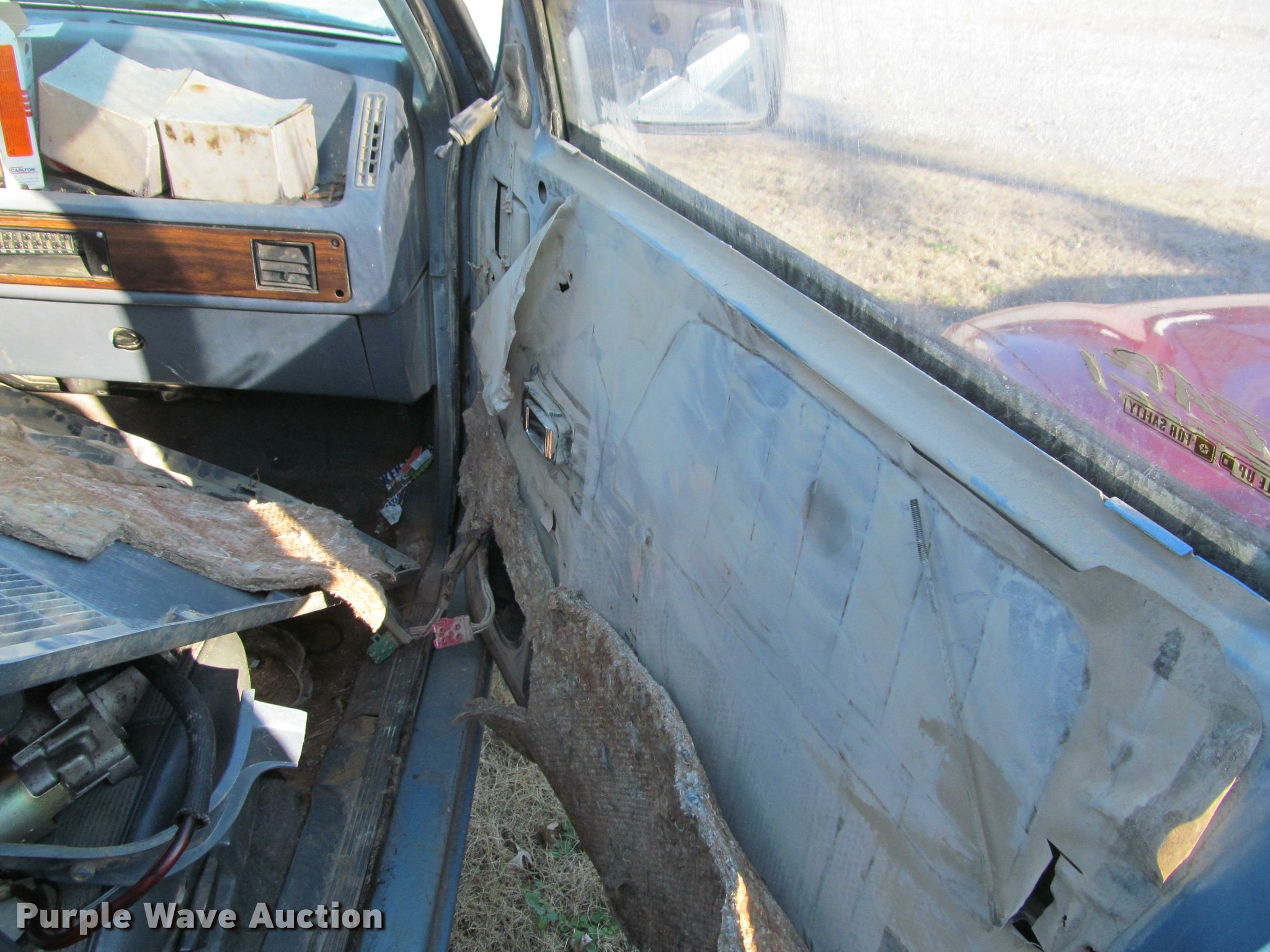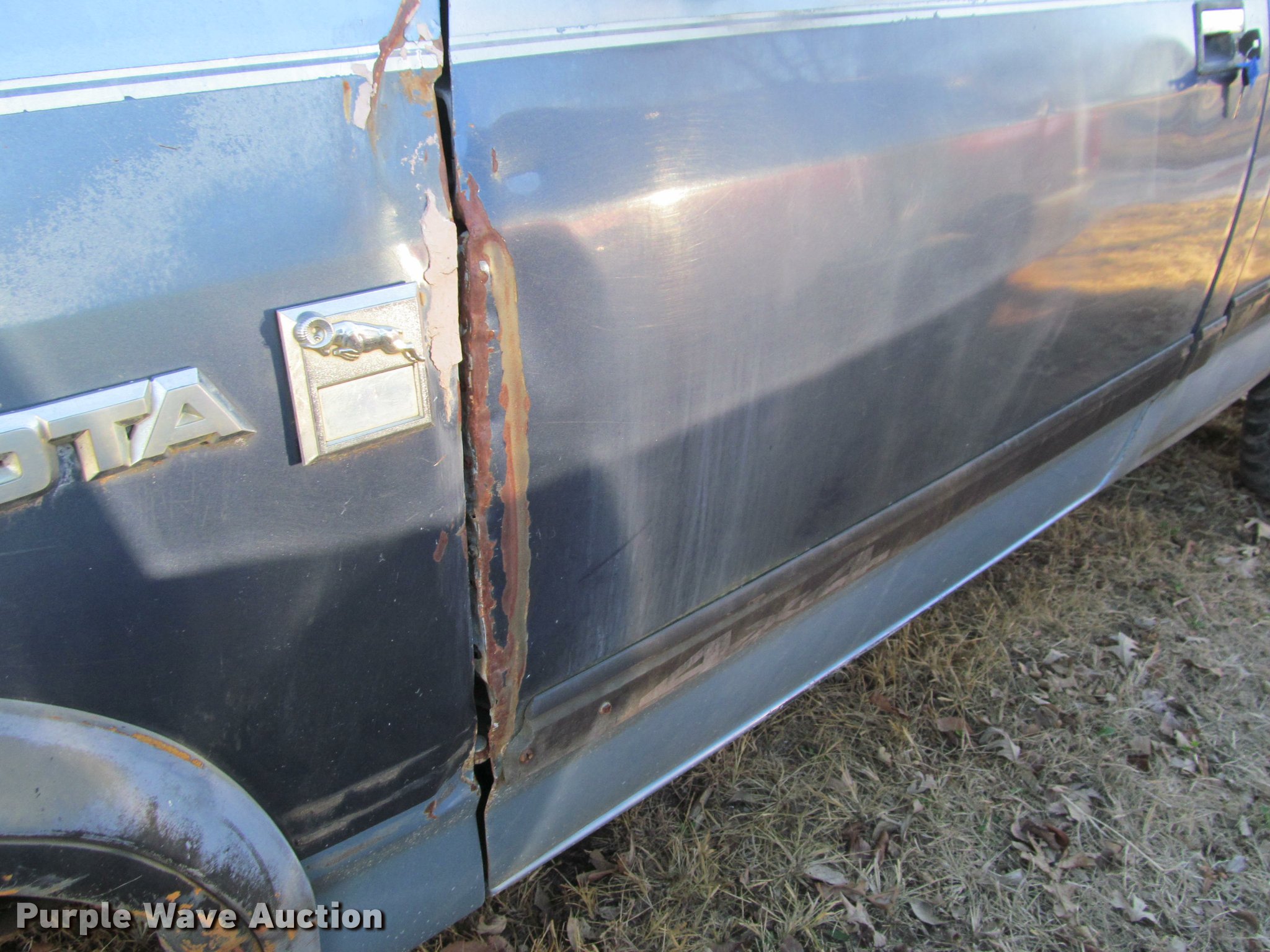Purple Wave is selling a used Compact Pickup or Van in Kansas. This item is a 1988 Dodge Dakota pickup truck with the following: 163,878 miles on odometer, 3.9L V6 OHV 12V gas engine, Automatic transmission, Four wheel drive, AC and heat, Tilt, AM/FM, Manual windows and locks, Cloth interior, 31 x 10.50R15 tires, Windshield cracked, Unknown running condition, Tires flat, Interior disassembled