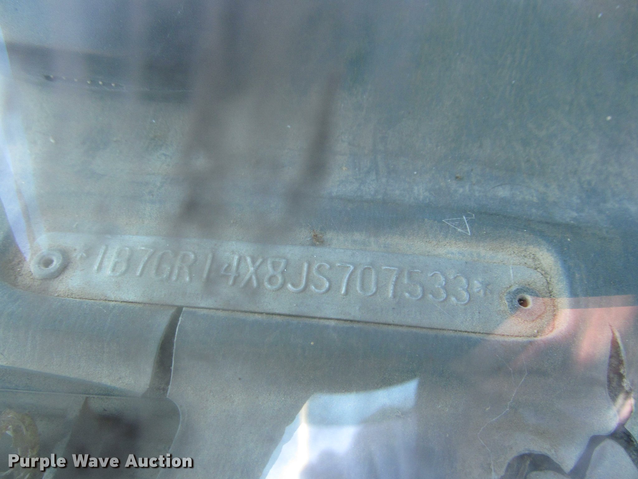 1988 Dodge Dakota pickup truck. 163,878 miles on odometer, 3.9L V6 OHV 12V gas engine, Automatic transmission, Four wheel drive, AC and heat, Tilt, AM/FM, Manual windows and locks, Cloth interior, 31 x 10.50R15 tires, Windshield cracked, Unknown running condition, Tires flat, Interior disassembled. Kansas title. 1B7GR14X8JS707533. 730 Madison St. Fredonia, KS 66736