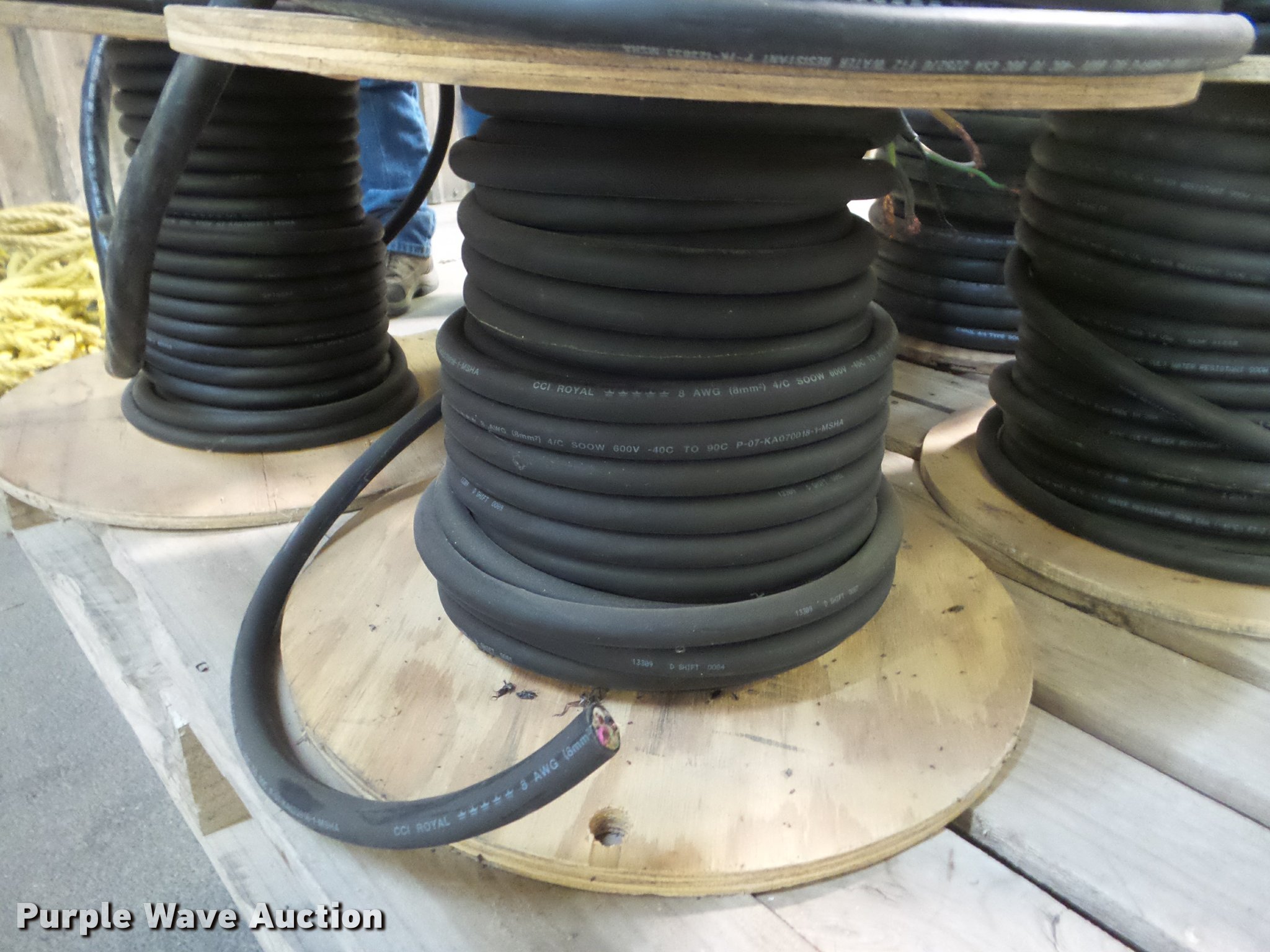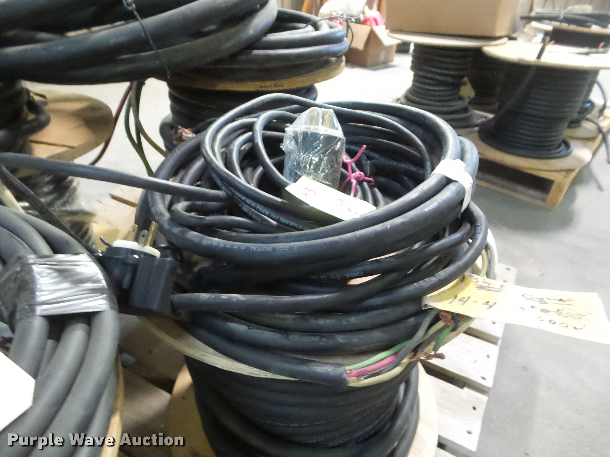 Purple Wave is selling a used Building Materials in Kansas. This item is a (5) spools of wire with the following: 150' of 6-3, 187' of 14-3, 76' of 6-3, 172' of 10-3, 135' of 12-4, 200' of 8-4