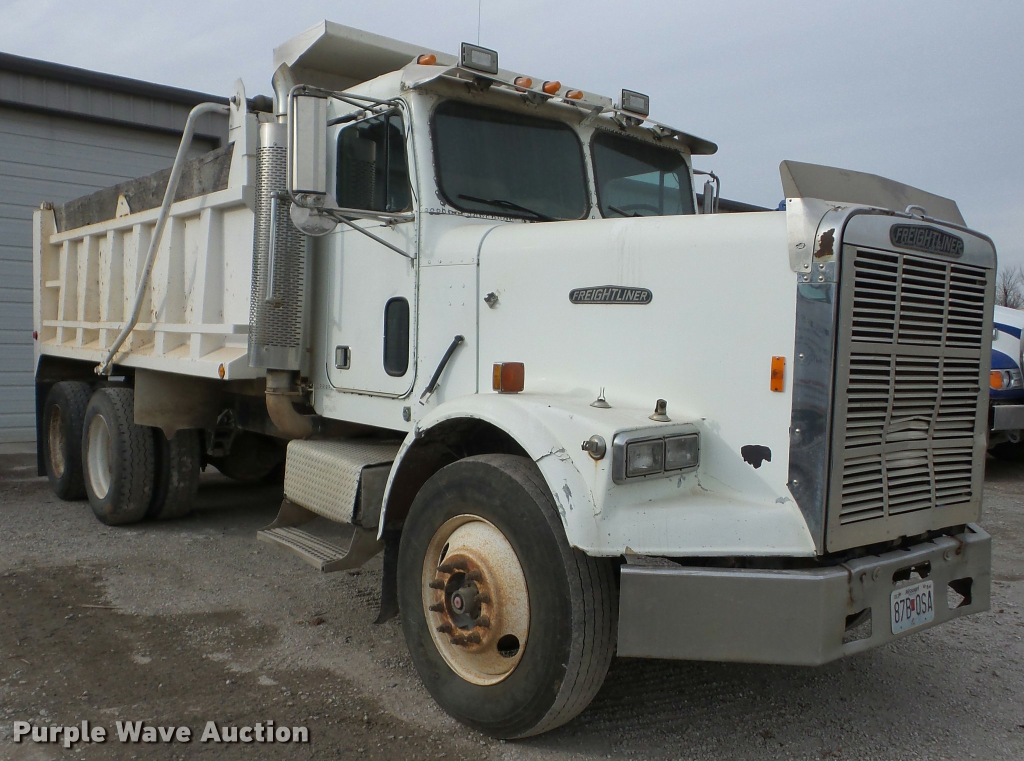 Purple Wave is selling a used Construction Dump Truck in Missouri. This item is a 1988 Freightliner FC60 dump truck with the following: 223,975 miles on odometer, Cummins NTC 14.0L L6 turbo diesel engine, Eaton Fuller Road Ranger nine speed manual transmission, Tandem axle, Inter-axle differential lock, AC and heat, AM/FM, Air suspension seat, Exterior visor, PTO, 15'L x 8'W steel dump bed, 38" side height, 12" side board height, Rollover tarp, Air operated end gate, Single ram hoist, Single fuel tank, Pintle hitch, Spring suspension, Air brakes, 11R24.5 front tires, 235/75R24.5 rear tires, Unit# 33
