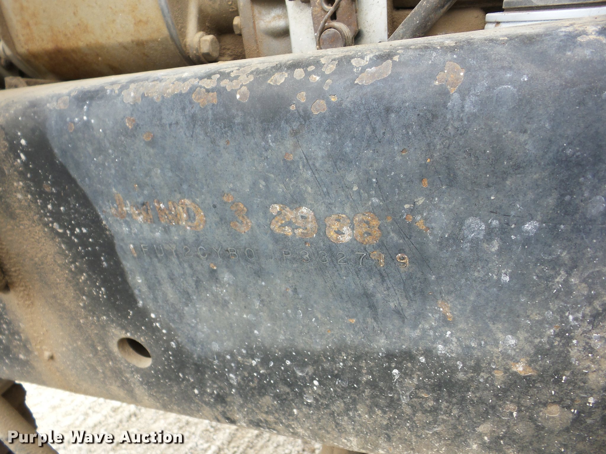 1988 Freightliner FC60 dump truck. 223,975 miles on odometer, Cummins NTC 14.0L L6 turbo diesel engine, Eaton Fuller Road Ranger nine speed manual transmission, Tandem axle, Inter-axle differential lock, AC and heat, AM/FM, Air suspension seat, Exterior visor, PTO, 15'L x 8'W steel dump bed 38" side height, 12" side board height, Rollover tarp, Air operated end gate, Single ram hoist, Single fuel tank, Pintle hitch, Spring suspension, Air brakes, 11R24.5 front tires, 235/75R24.5 rear tires, Unit# 33. Missouri title. 1FUY2CYB0JP332719. Jeff Asbell Excavating Inc.. 9400 St Hwy 171. Carl Junction, MO 64834