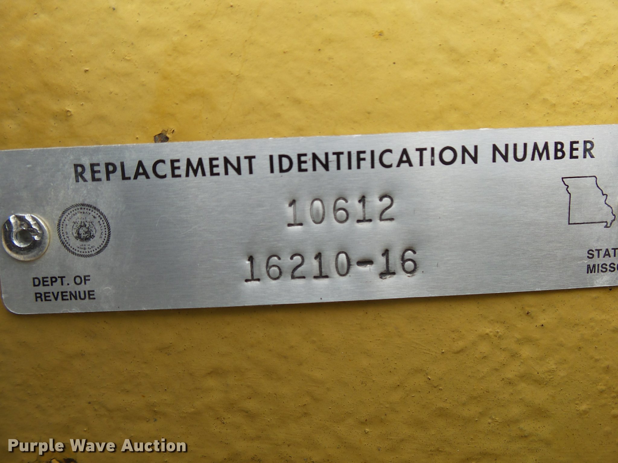 1969 Miller tilt deck equipment trailer. 23' overall length, 18'L wood main deck, 34" floor height, D-ring tie downs, Single leg landing gear, Pintle hitch, Spring suspension, Electric brakes, 7.50-15 LPT tires. Missouri title. 10612. Blevins Asphalt Construction Company Inc.. 901 W Mt Vernon Blvd. Mount Vernon, MO 65712