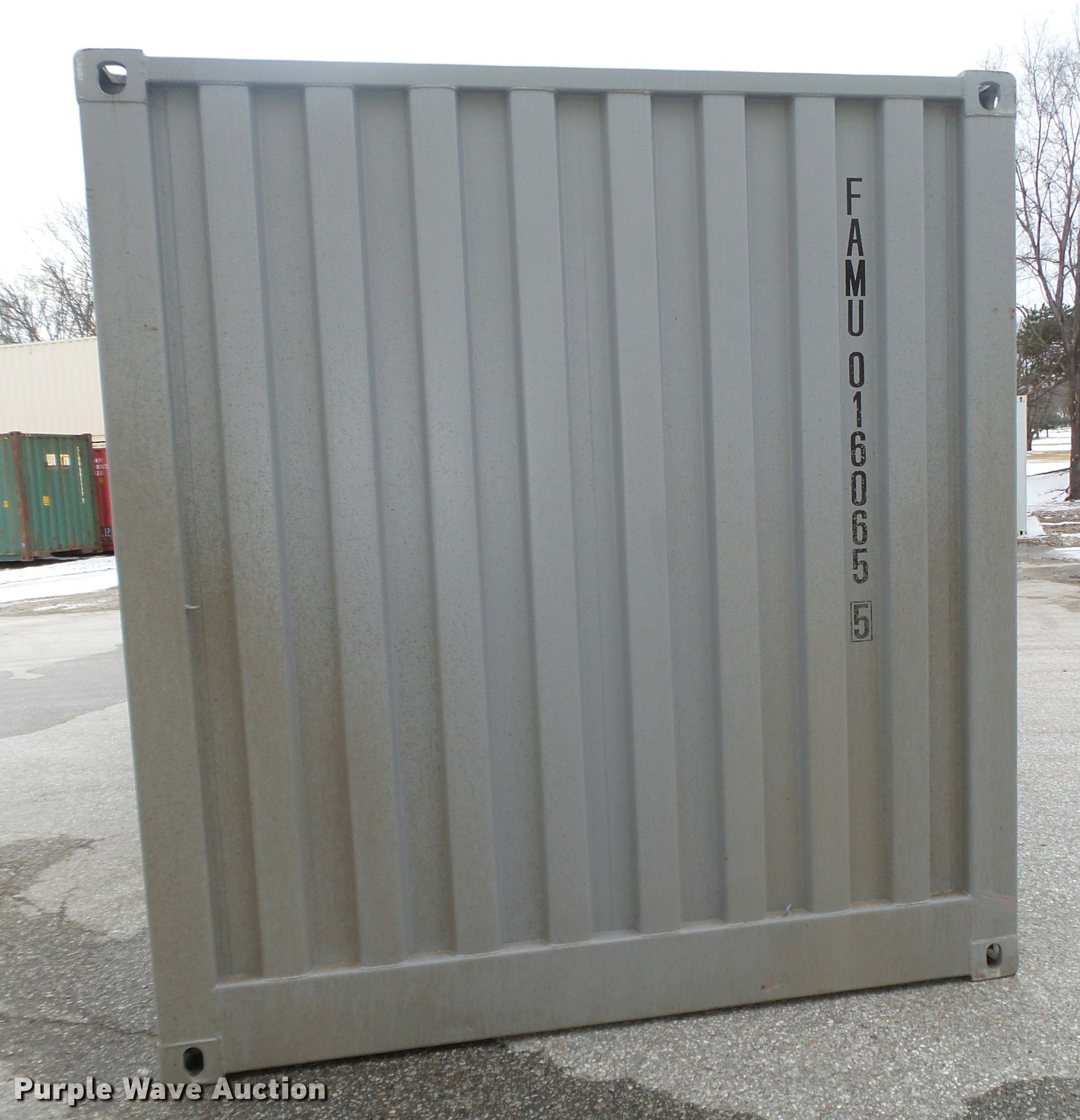 Purple Wave is selling a used Storage or Shipping Container in Nebraska. This item is a 2016 storage container with the following: Approximately 20'L x 8'W x 8.5'H, End doors, Side doors, Forklift pockets, Lifting eyes, Tie downs, 1,097 cu.ft. capacity, 67,200 lbs maximum gross weight, 6,790 lbs tare weight, 9" thick frame base, Unused, Unit# FAMU016065522G2