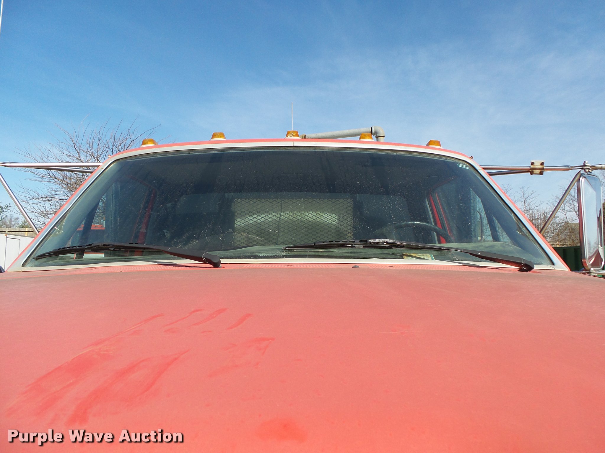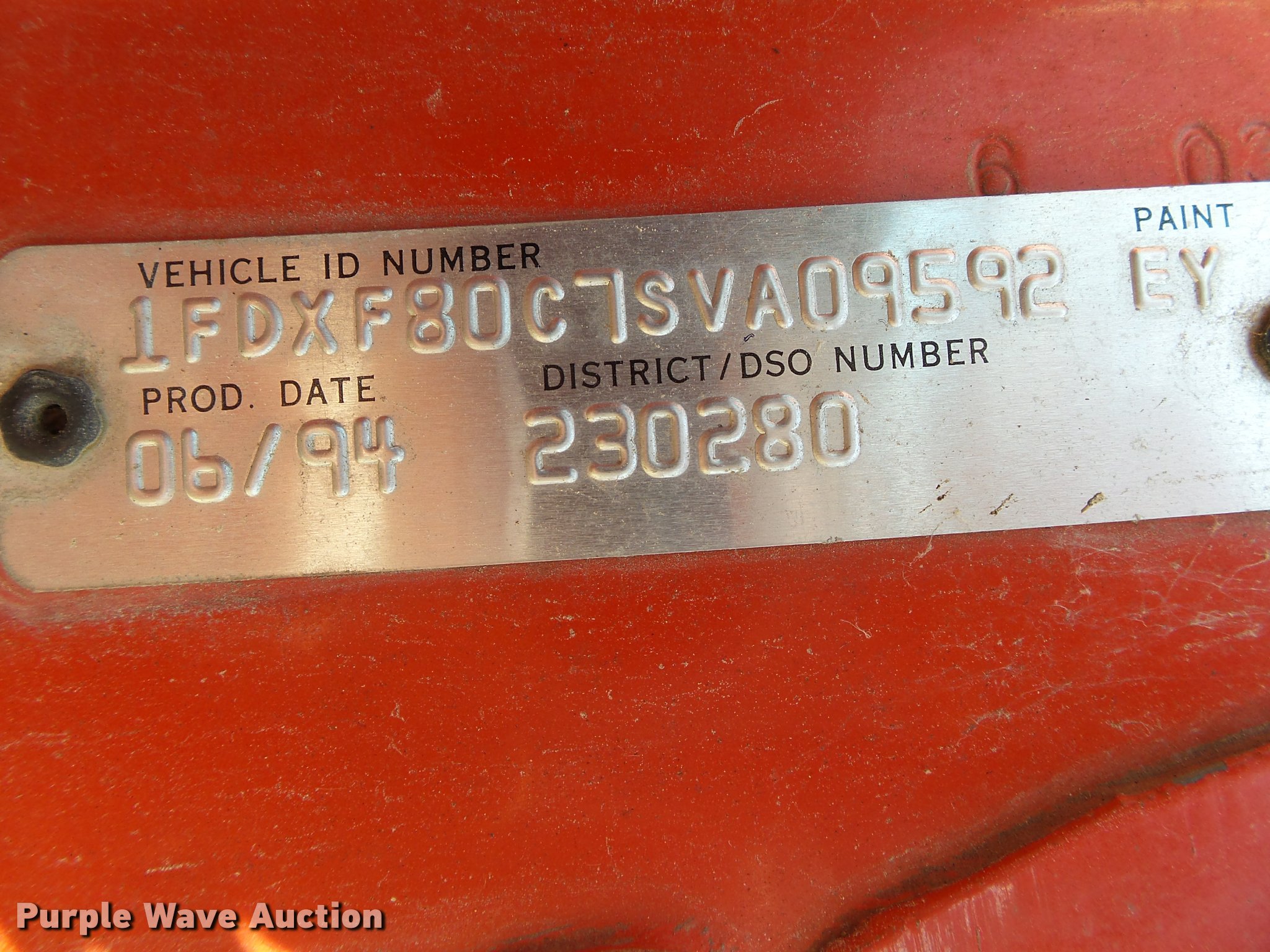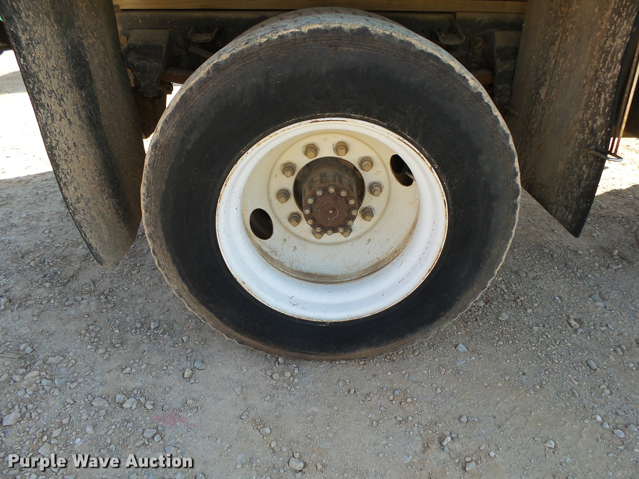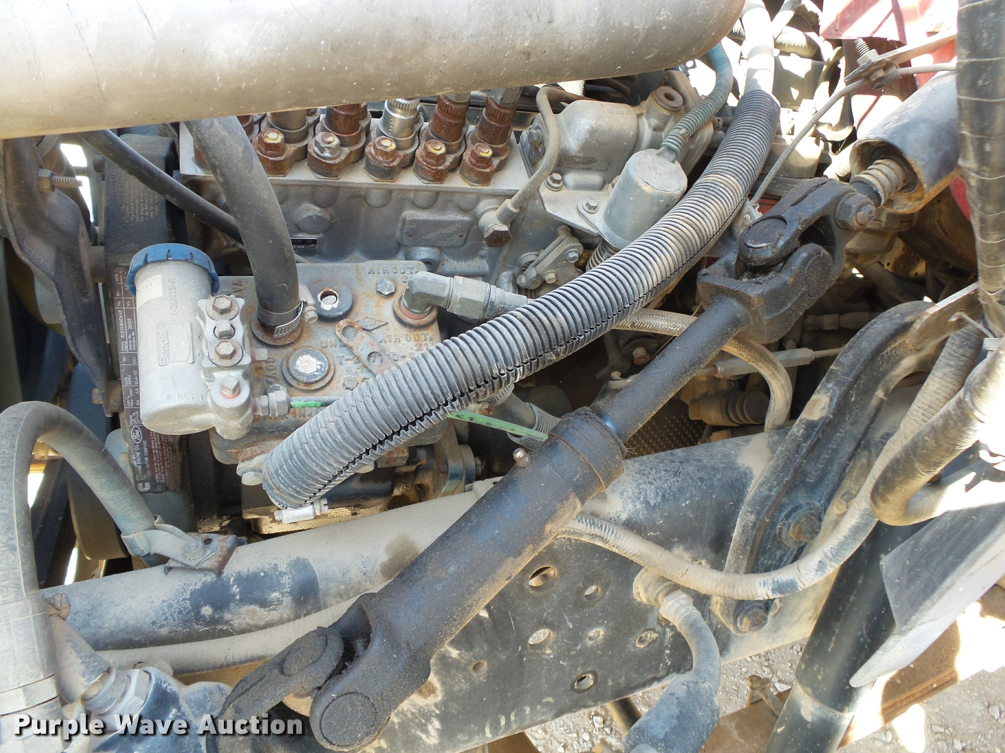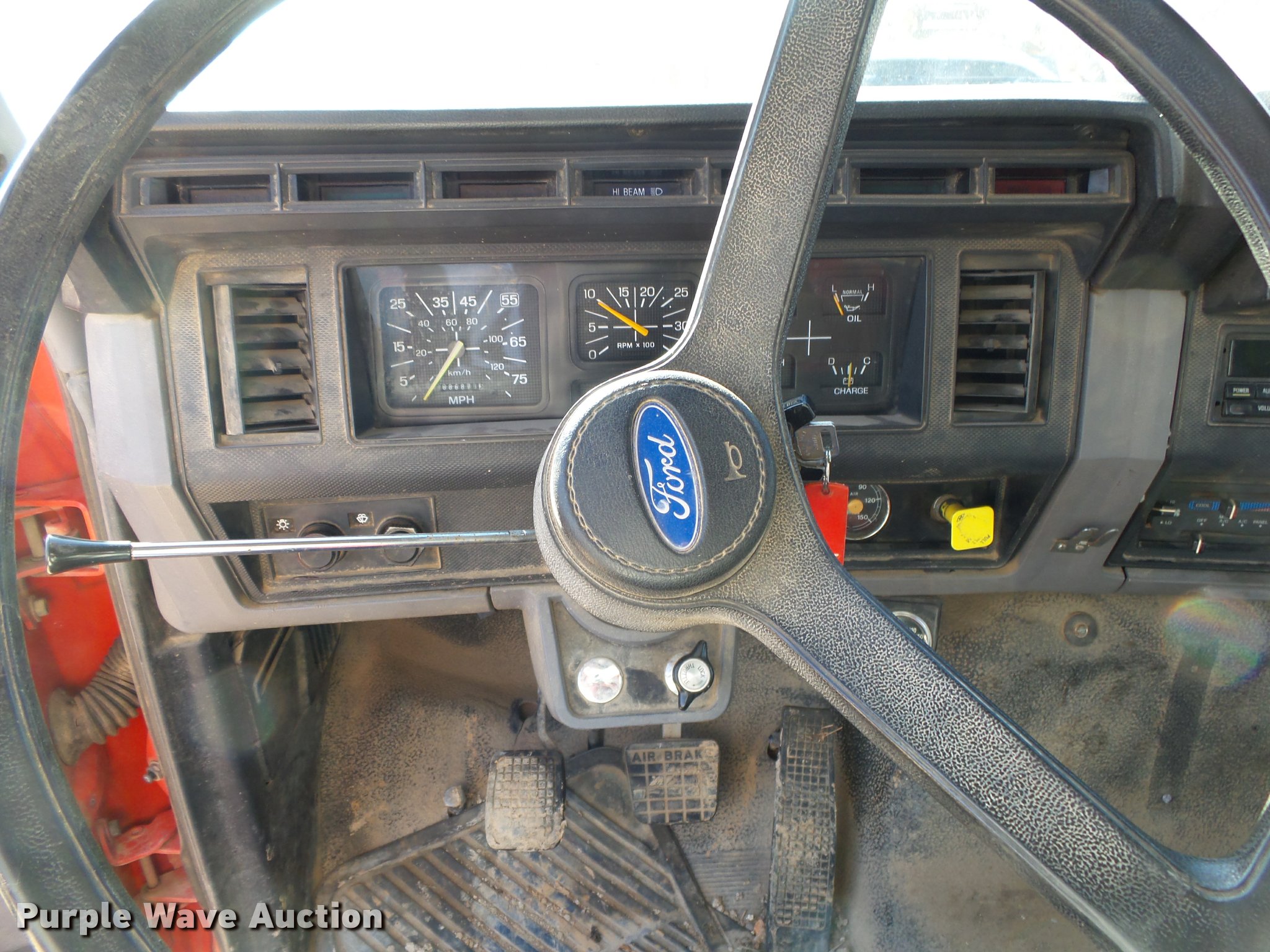 Purple Wave is selling a used Flat Bed Truck in Arkansas. This item is a 1995 Ford F800 Super Duty flatbed truck with the following: 86,879 miles on odometer, Cummins ISB 5.9L L6 turbo diesel engine, Nine speed manual transmission, Tandem axle, AC and heat, AM/FM, Spring suspension seat, Front tow hooks, 14'L x 8'W steel flatbed, Stake side pockets, Storage boxes, Headache rack, Pintle hitch, Trailer wiring, 700 gallon poly tank, Dual fuel tanks, 177" wheelbase, Spring suspension, Air brakes, 11R22.5 front tires, 10R22.5 rear tires, GVWR 27,000 lbs