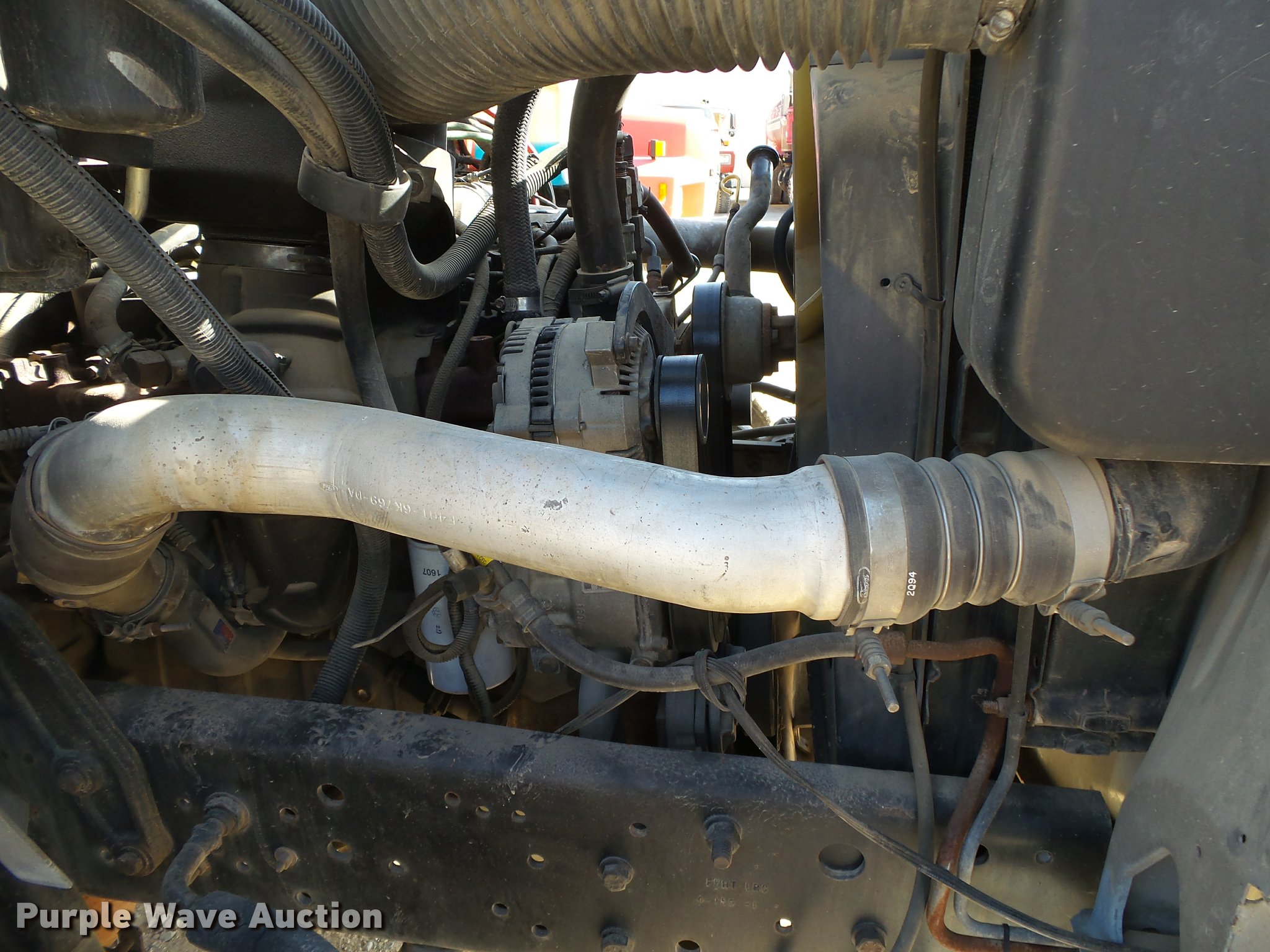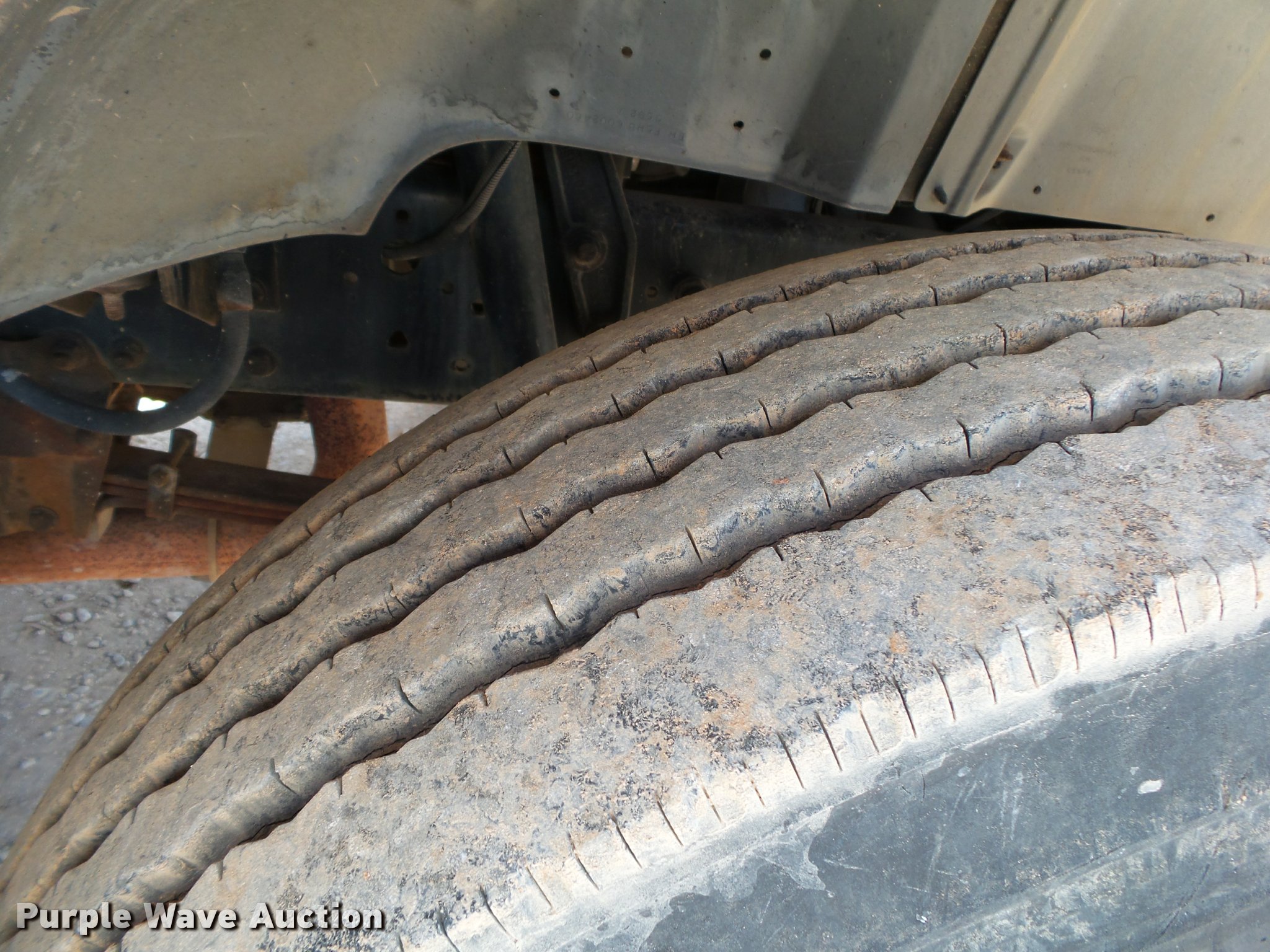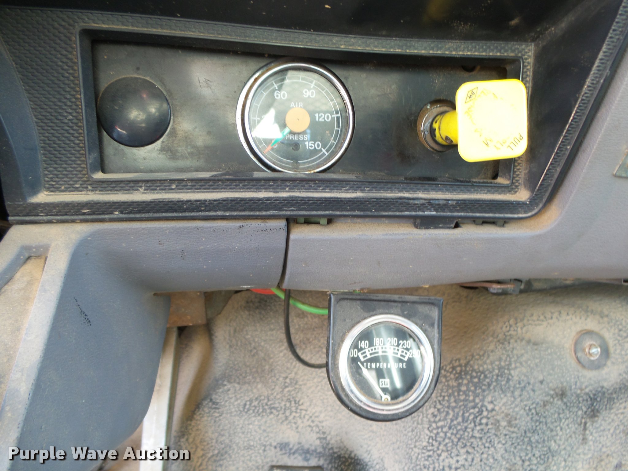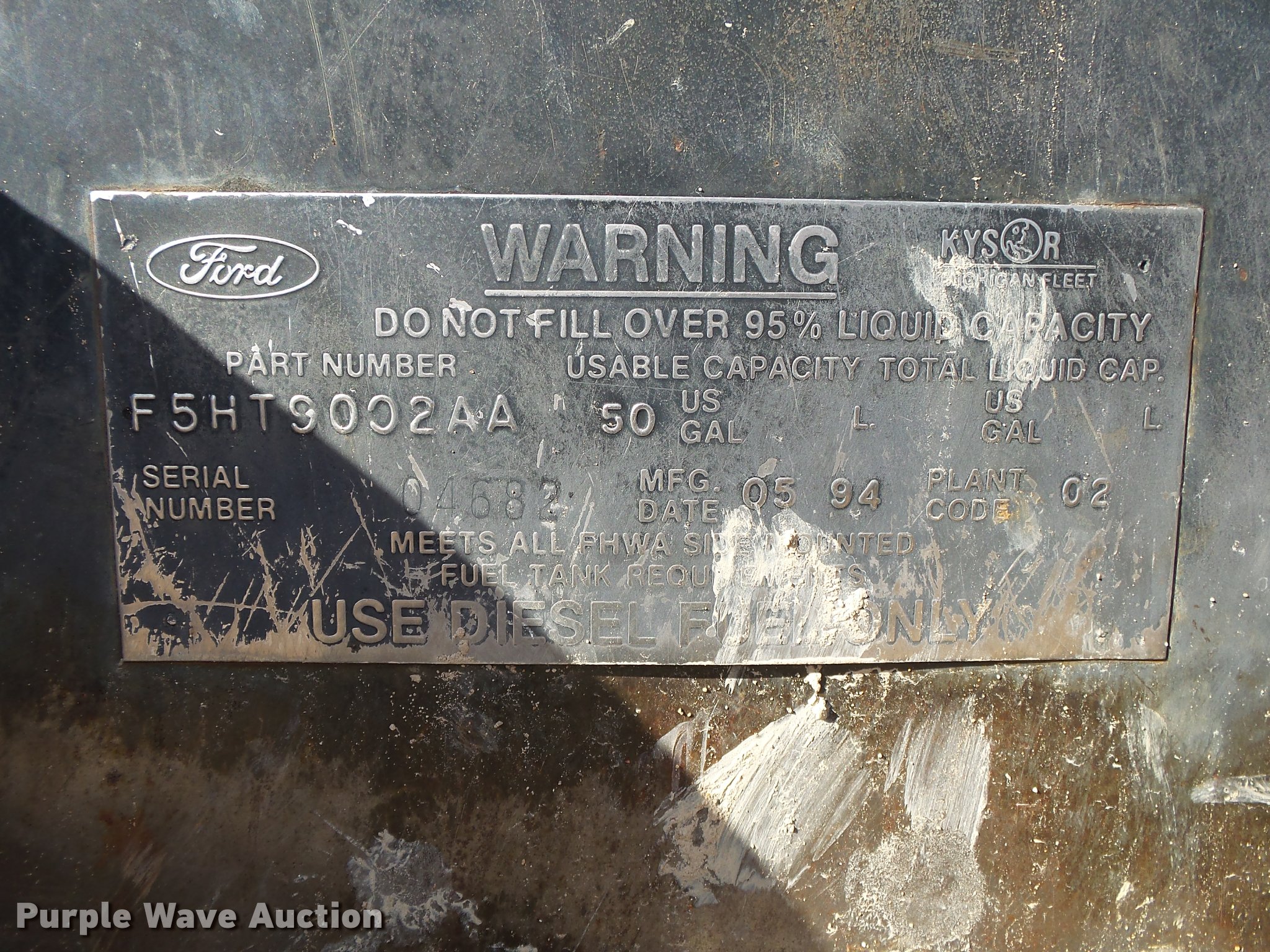 Purple Wave is selling a used Flat Bed Truck in Arkansas. This item is a 1995 Ford F800 Super Duty flatbed truck with the following: 86,879 miles on odometer, Cummins ISB 5.9L L6 turbo diesel engine, Nine speed manual transmission, Tandem axle, AC and heat, AM/FM, Spring suspension seat, Front tow hooks, 14'L x 8'W steel flatbed, Stake side pockets, Storage boxes, Headache rack, Pintle hitch, Trailer wiring, 700 gallon poly tank, Dual fuel tanks, 177" wheelbase, Spring suspension, Air brakes, 11R22.5 front tires, 10R22.5 rear tires, GVWR 27,000 lbs
