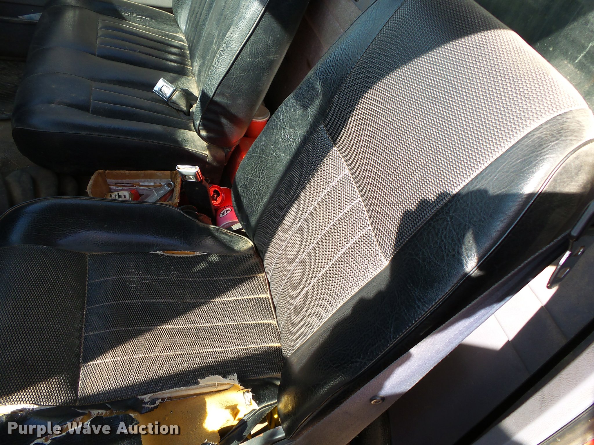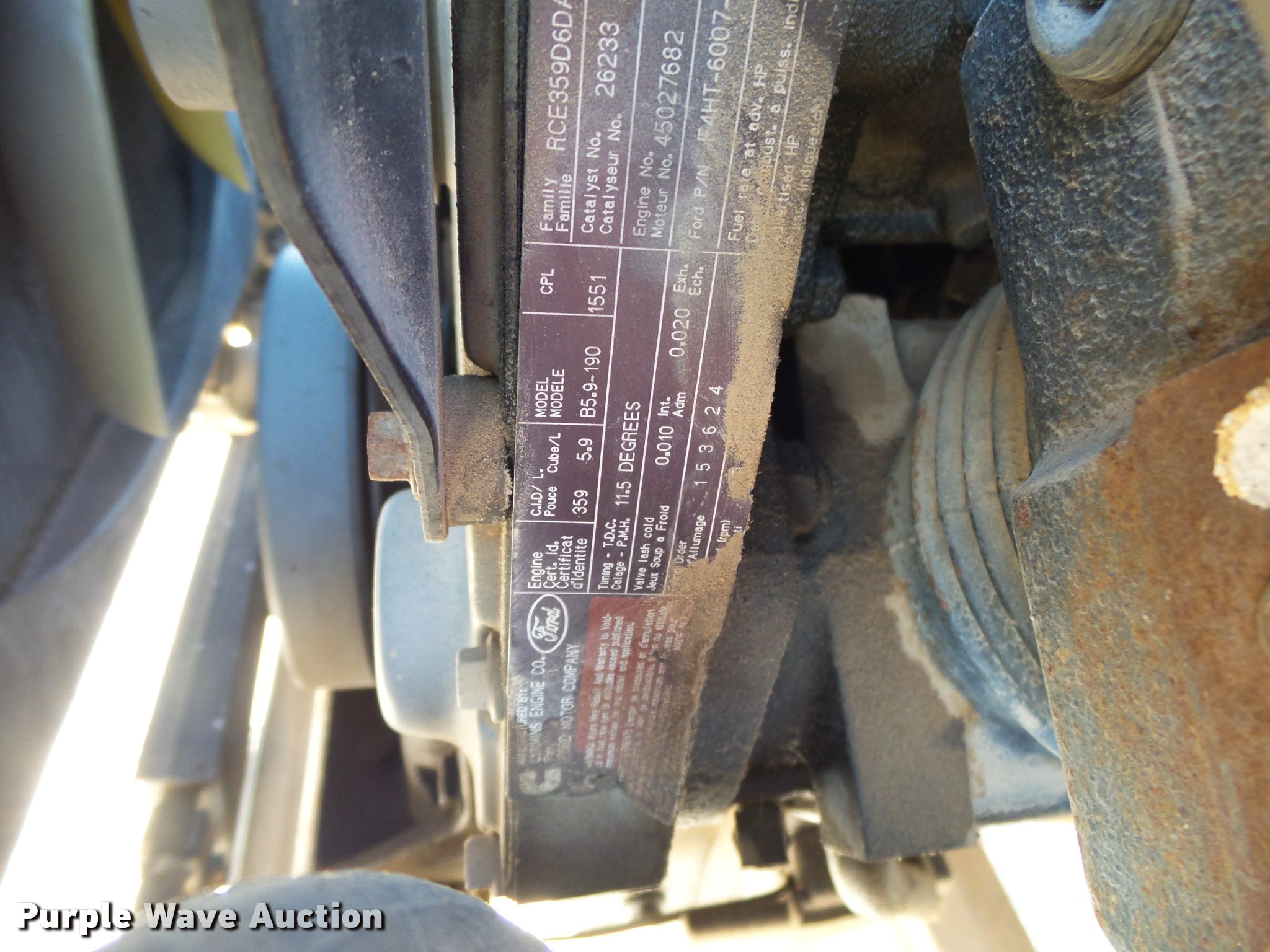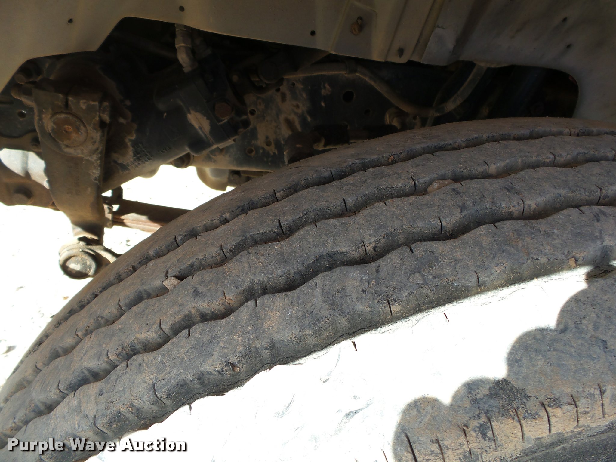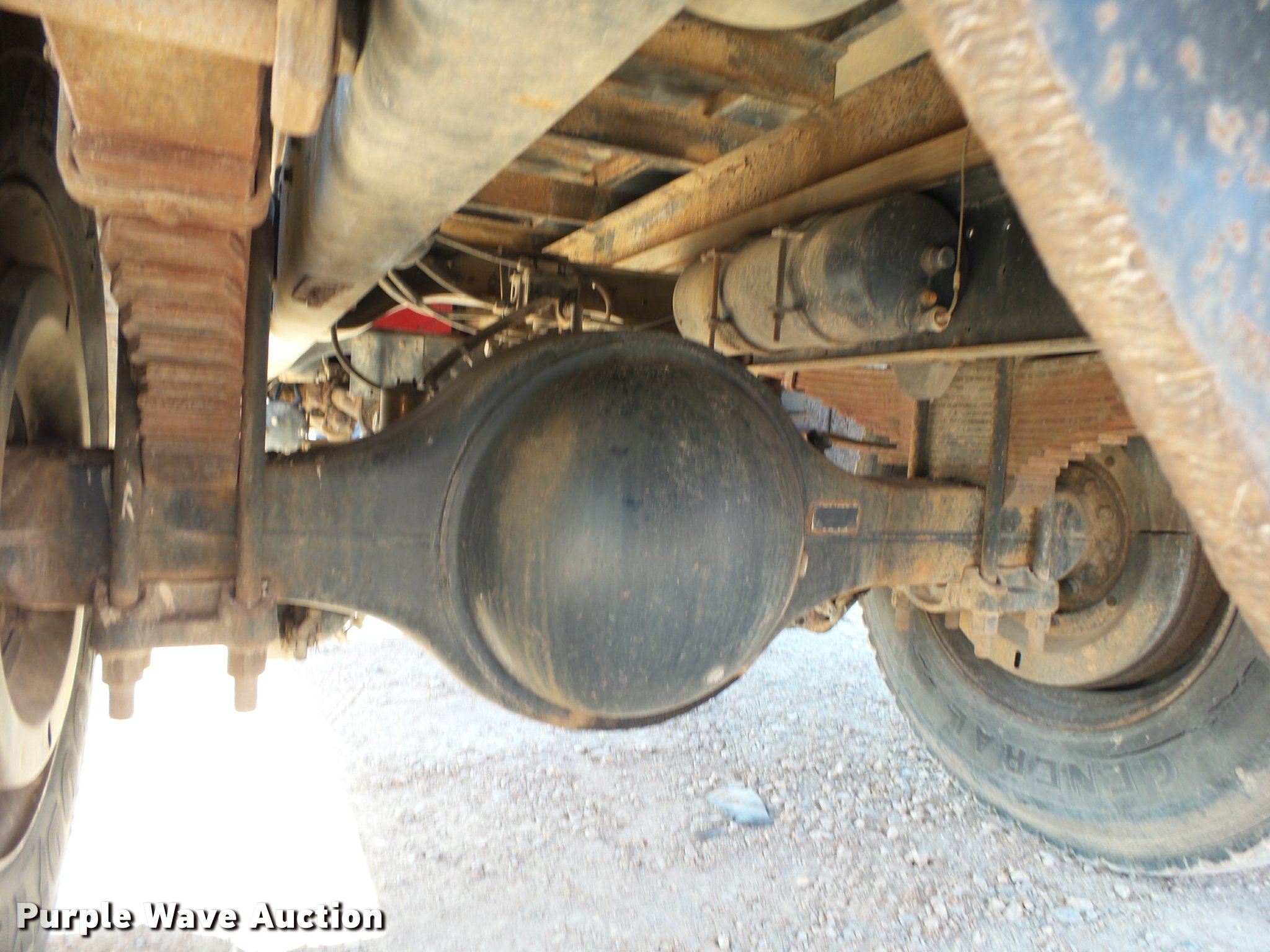 Purple Wave is selling a used Flat Bed Truck in Arkansas. This item is a 1995 Ford F800 Super Duty flatbed truck with the following: 86,879 miles on odometer, Cummins ISB 5.9L L6 turbo diesel engine, Nine speed manual transmission, Tandem axle, AC and heat, AM/FM, Spring suspension seat, Front tow hooks, 14'L x 8'W steel flatbed, Stake side pockets, Storage boxes, Headache rack, Pintle hitch, Trailer wiring, 700 gallon poly tank, Dual fuel tanks, 177" wheelbase, Spring suspension, Air brakes, 11R22.5 front tires, 10R22.5 rear tires, GVWR 27,000 lbs