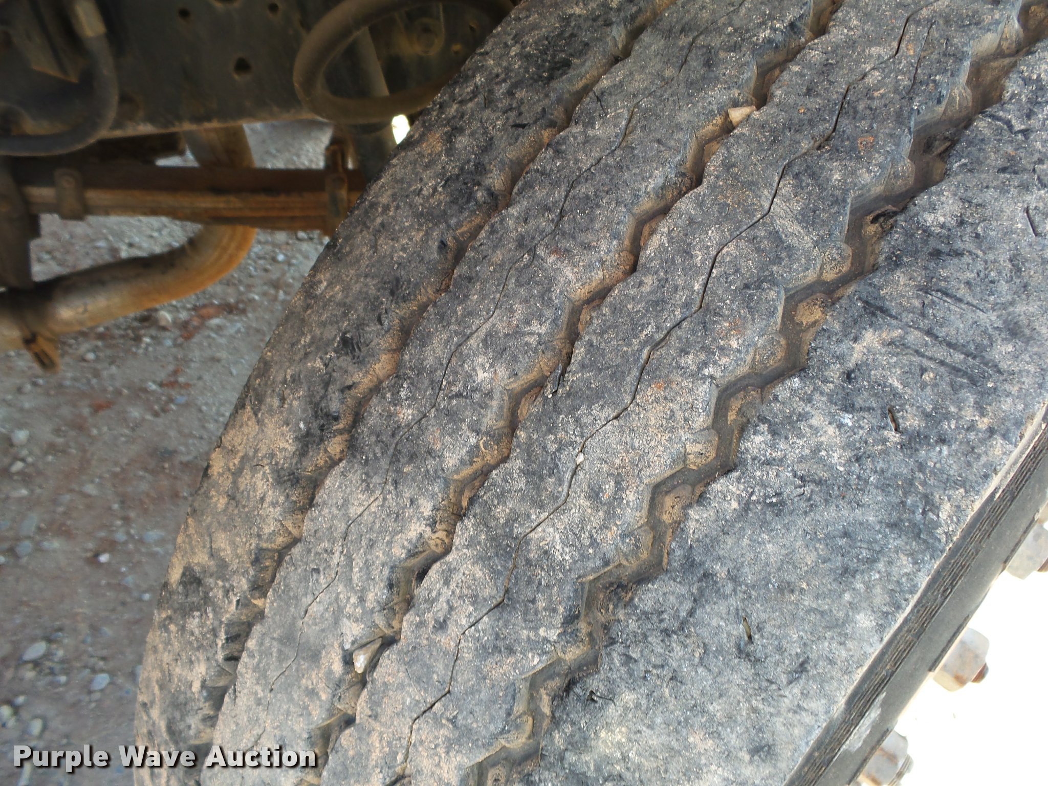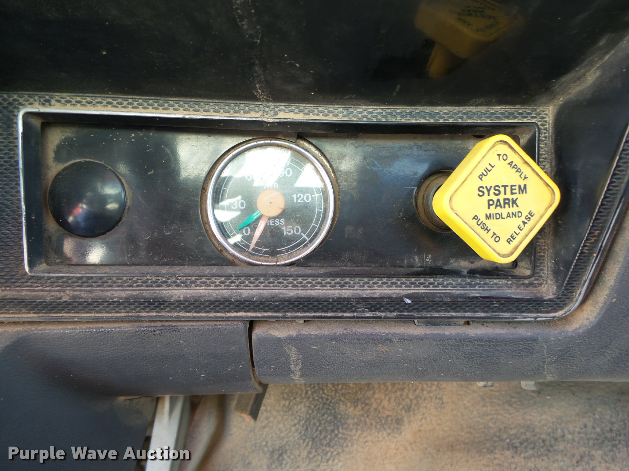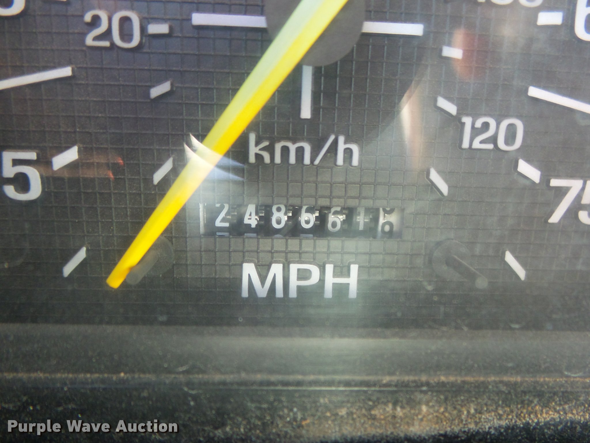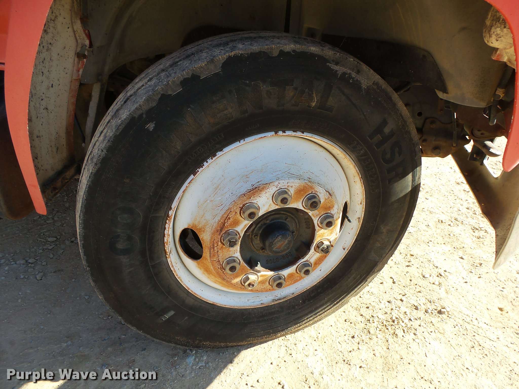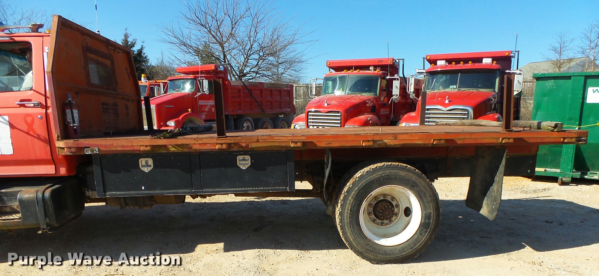 Purple Wave is selling a used Flat Bed Truck in Arkansas. This item is a 1994 Ford F700 flatbed truck with the following: 248,862 miles on odometer, Cummins ISB 5.9L L6 turbo diesel engine, Five speed manual transmission, Single axle, AC and heat, AM/FM, Air suspension seat, Front tow hooks, 16'L x 91"W steel flatbed, Stake side pockets, Headache rack, Toolbox, Dual fuel tanks, 189" wheelbase, Spring suspension, Air brakes, 275/80R22.5 front tires, 10R22.5 rear tires, GVWR 26,000 lbs, Tread separating on one tire, Driver side mirror missing