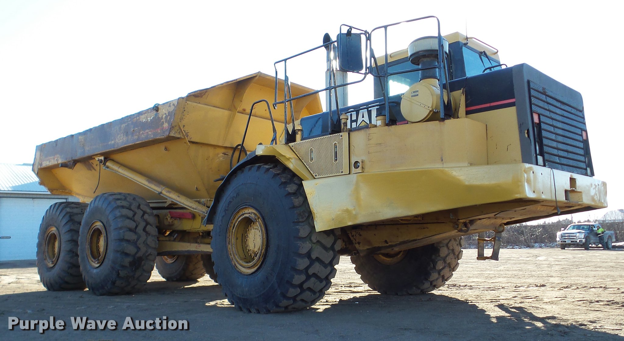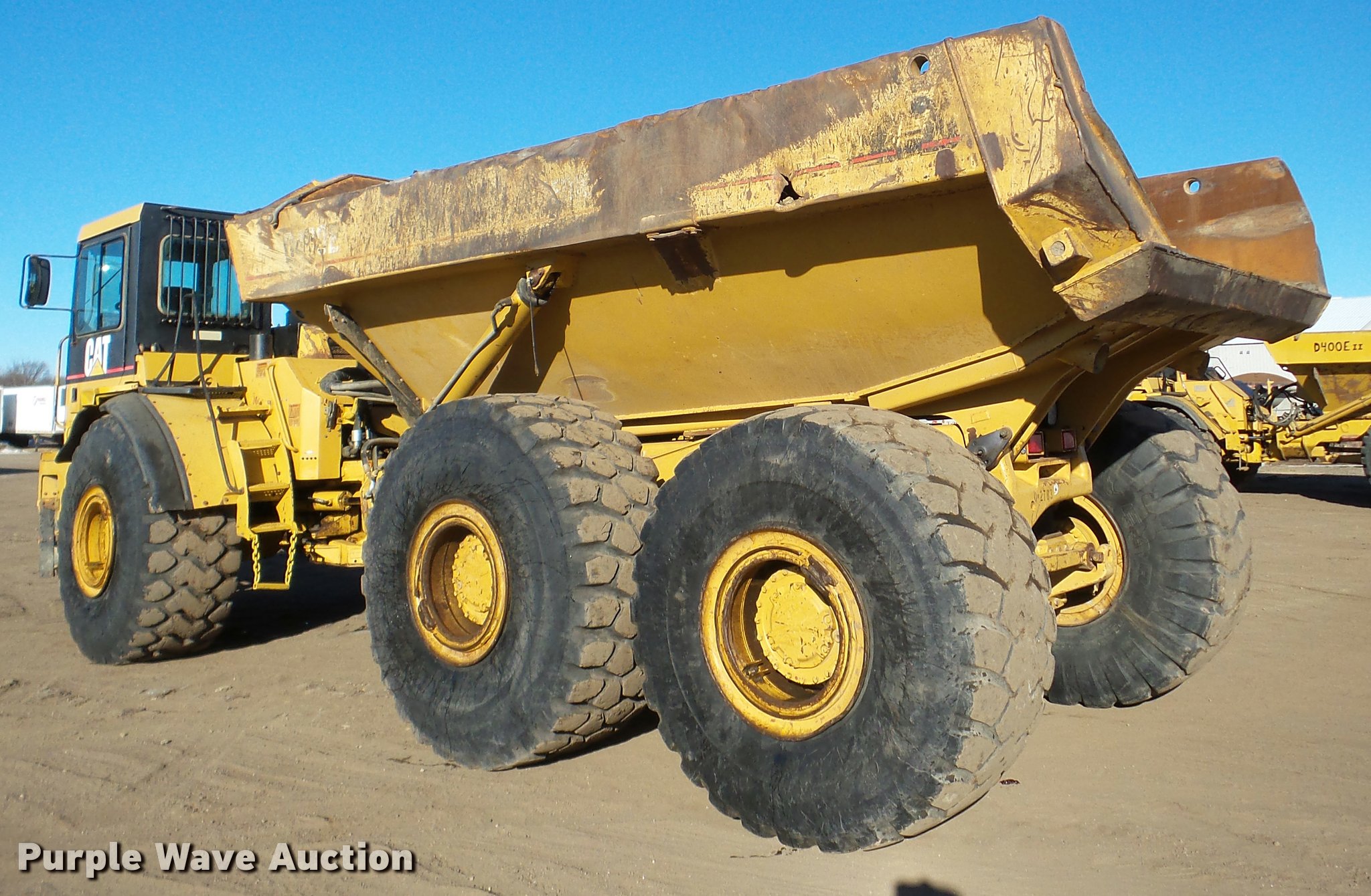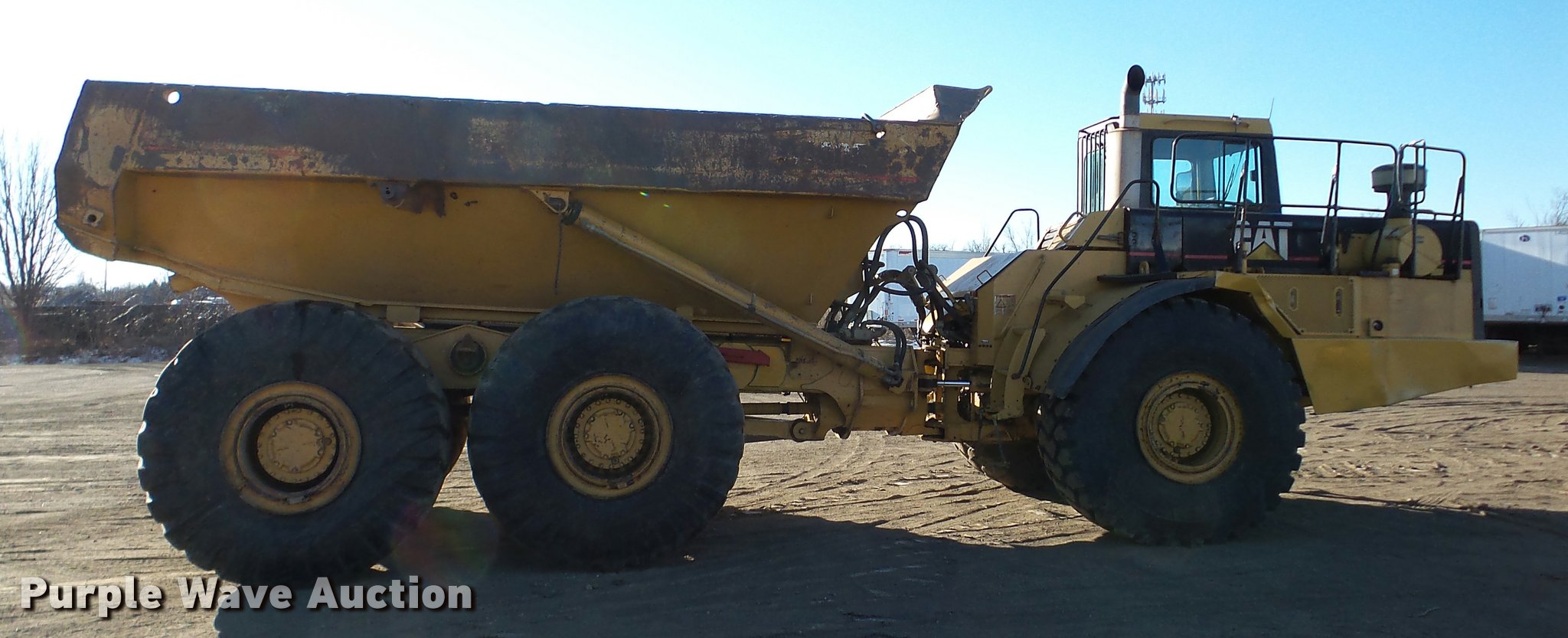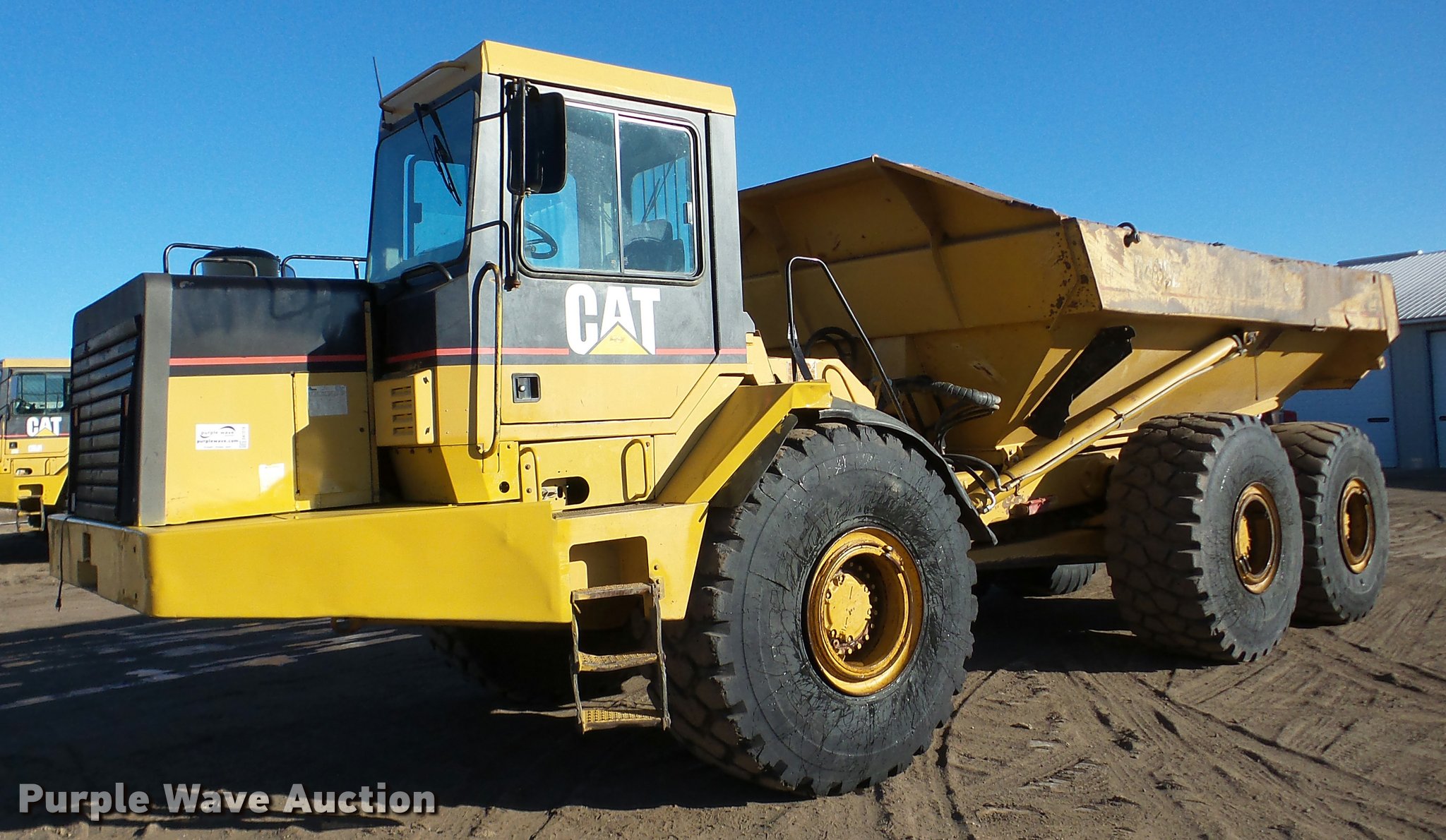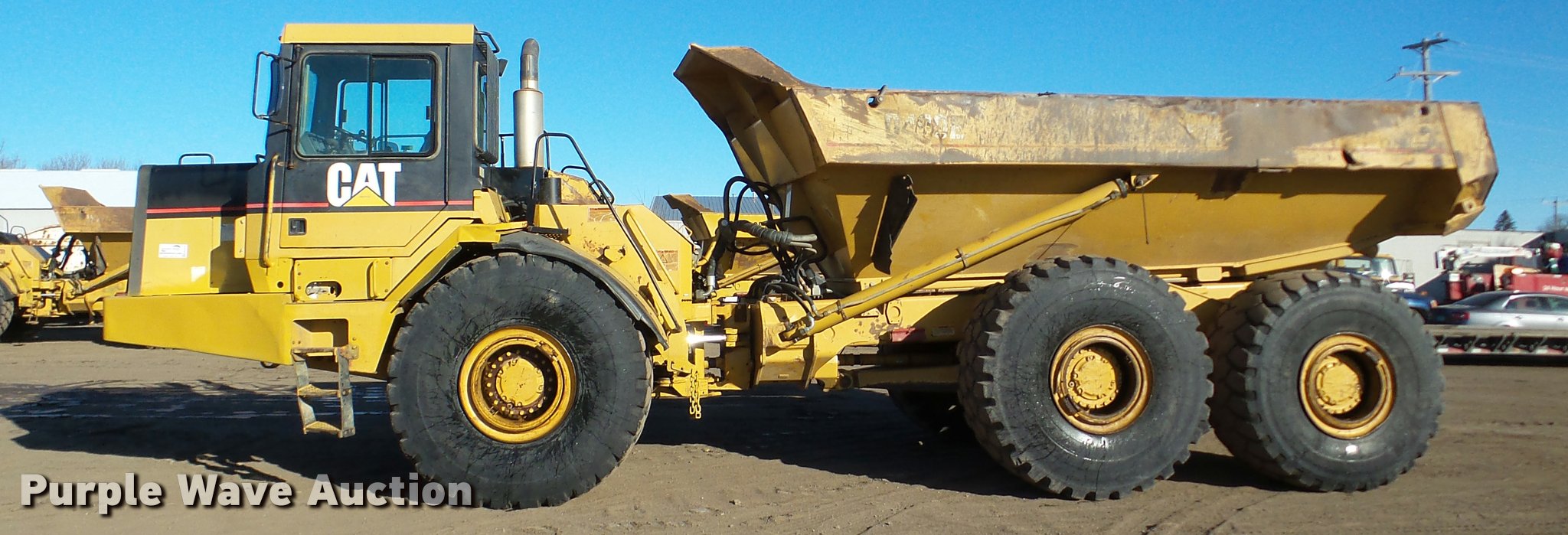 Purple Wave is selling a used Articulated Haul Truck in Minnesota. This item is a 2000 Caterpillar D400E II haul truck with the following: 23,507 hours on meter, Caterpillar 3406E six cylinder turbo diesel engine, Serial 9AP00892, Powershift transmission, 4F-1R gears, AC and heat, AM/FM/cassette, Air suspension seat, Approximately 18'L x 11'W x 64"H bed, Hydraulic brakes, 29.5R25 tires, Serial 08D500642