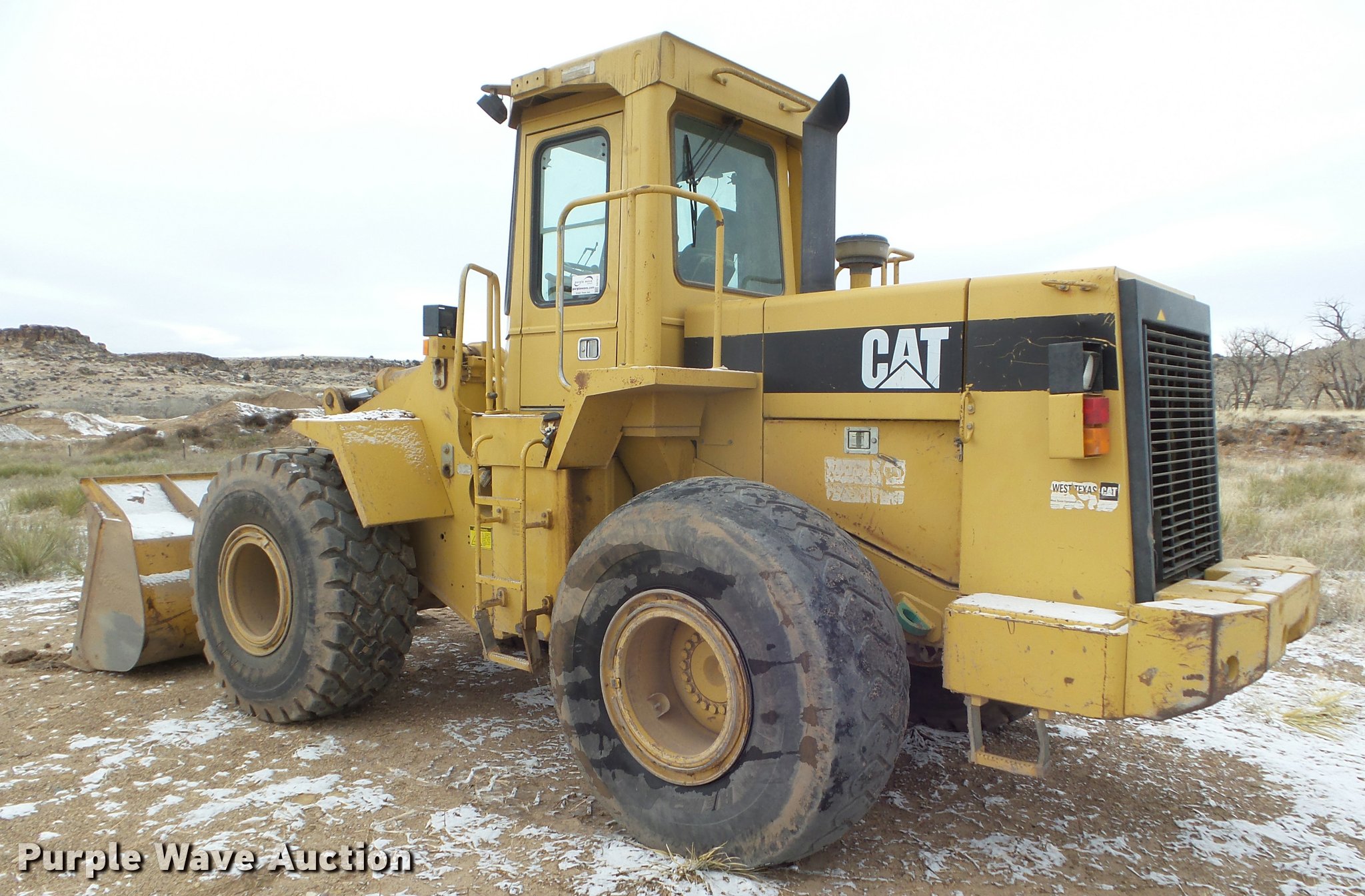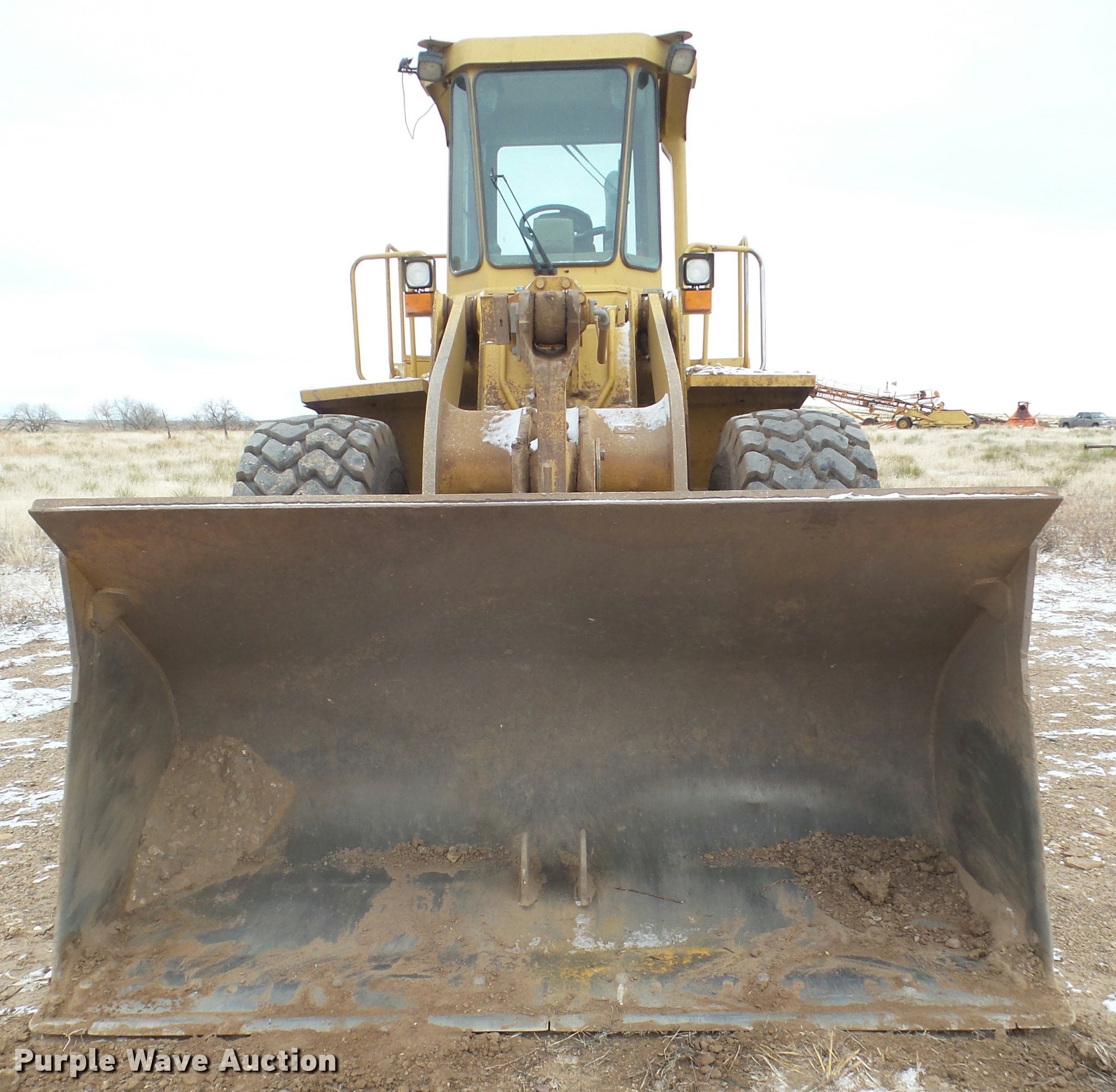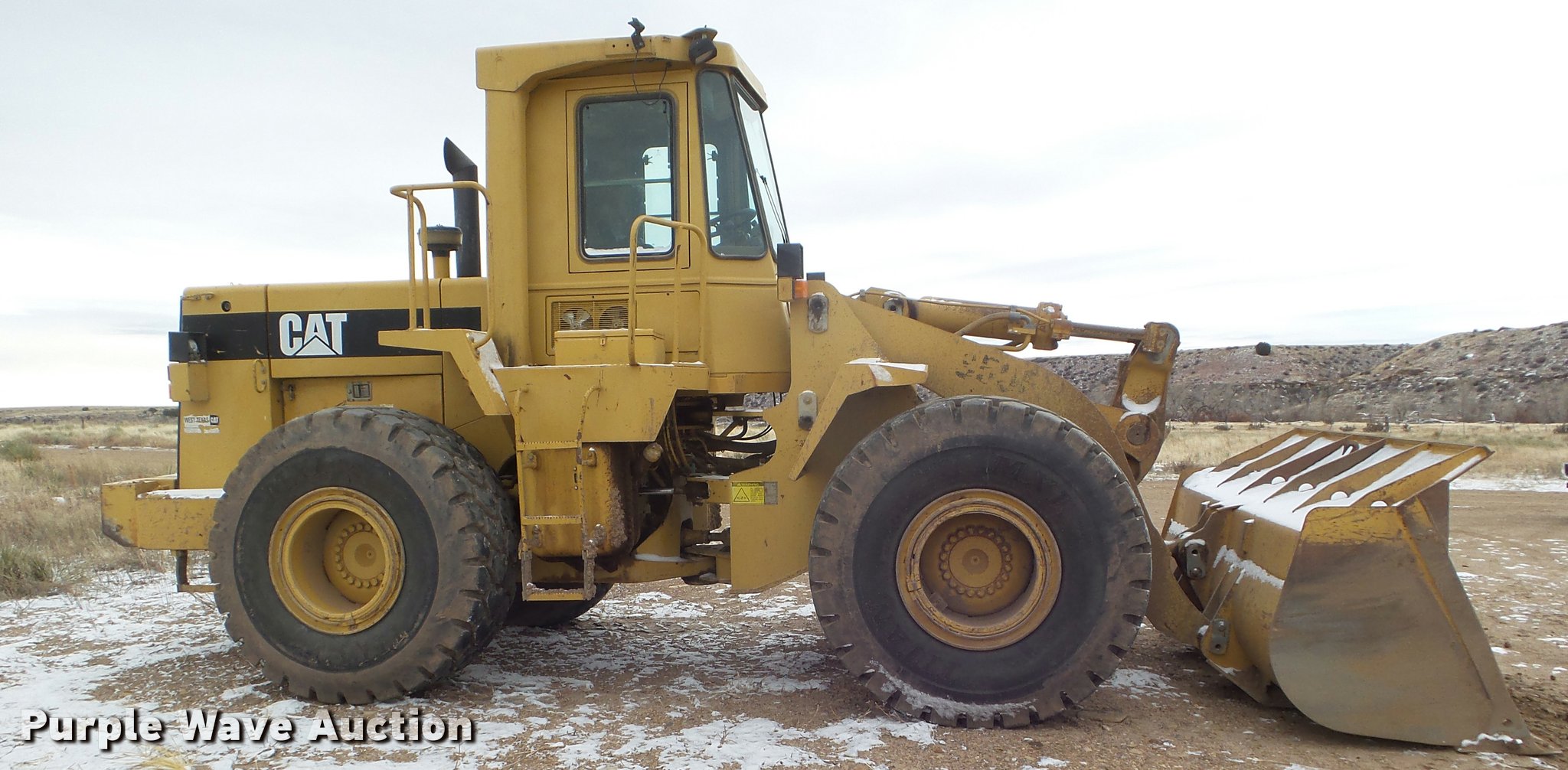 Purple Wave is selling a used Wheel Loader in Oklahoma. This item is a 1992 Caterpillar 950F wheel loader with the following: 10,623 hours on meter, Caterpillar 3110 six cylinder turbo diesel engine, Powershift transmission, 4F-4R gears, EROPS, AC and heat, AM/FM, Tilt steering wheel, Suspension seat, Two-lever bucket controls, Wipers, Front and rear work lights, 110"W general purpose bucket, Bolt-on cutting edge, Self-leveling, Counterweights, 23.5R25 tires, Serial 7ZF01130