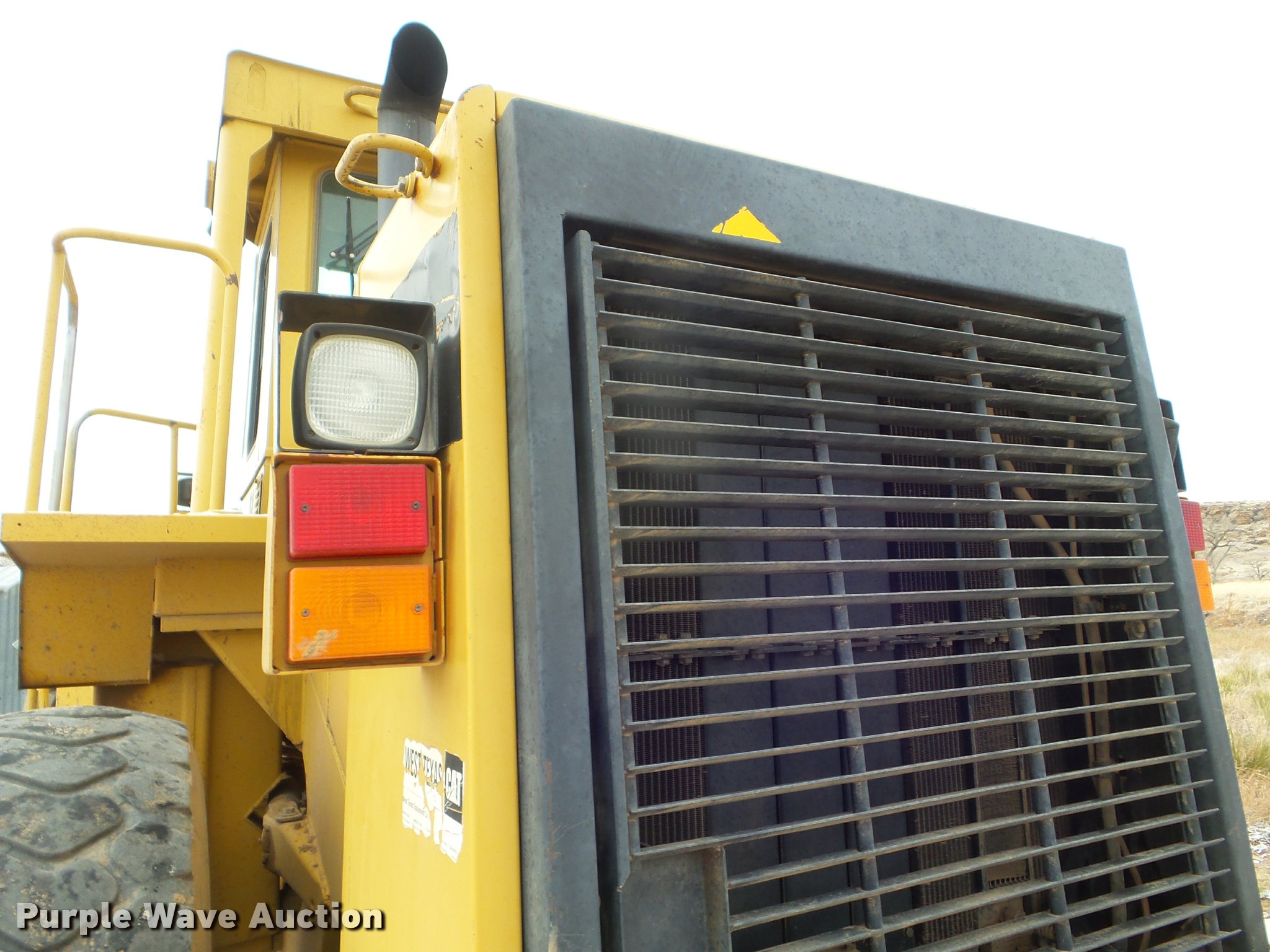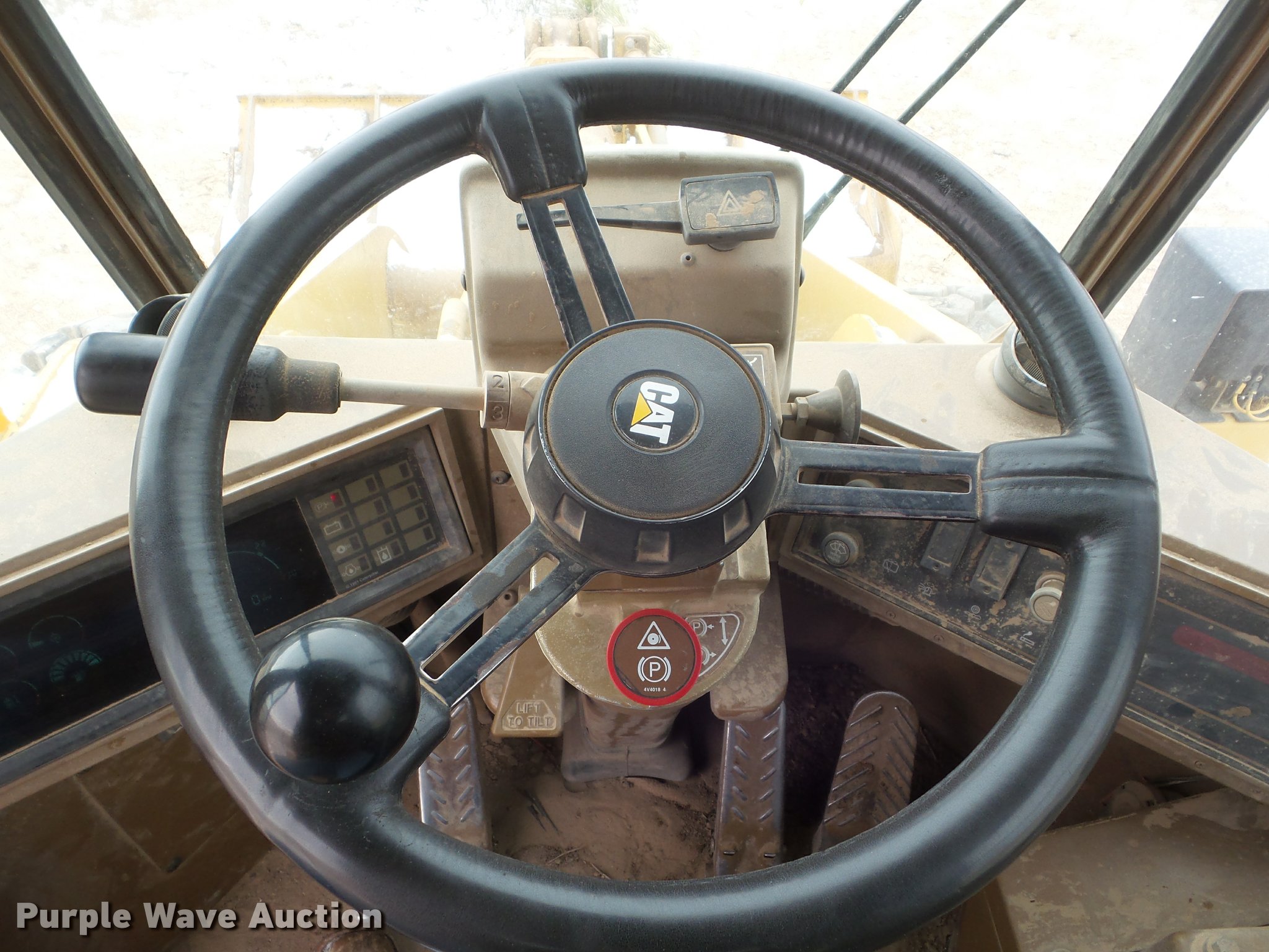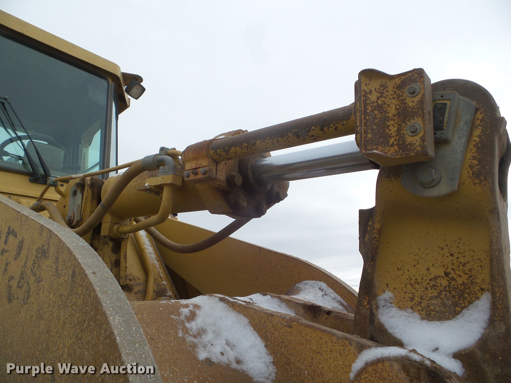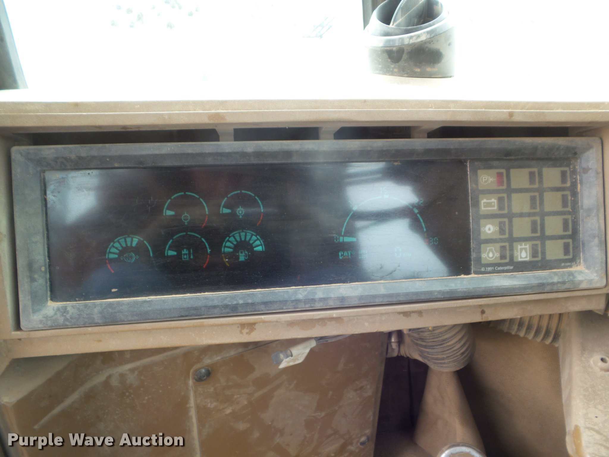Purple Wave is selling a used Wheel Loader in Oklahoma. This item is a 1992 Caterpillar 950F wheel loader with the following: 10,623 hours on meter, Caterpillar 3110 six cylinder turbo diesel engine, Powershift transmission, 4F-4R gears, EROPS, AC and heat, AM/FM, Tilt steering wheel, Suspension seat, Two-lever bucket controls, Wipers, Front and rear work lights, 110"W general purpose bucket, Bolt-on cutting edge, Self-leveling, Counterweights, 23.5R25 tires, Serial 7ZF01130