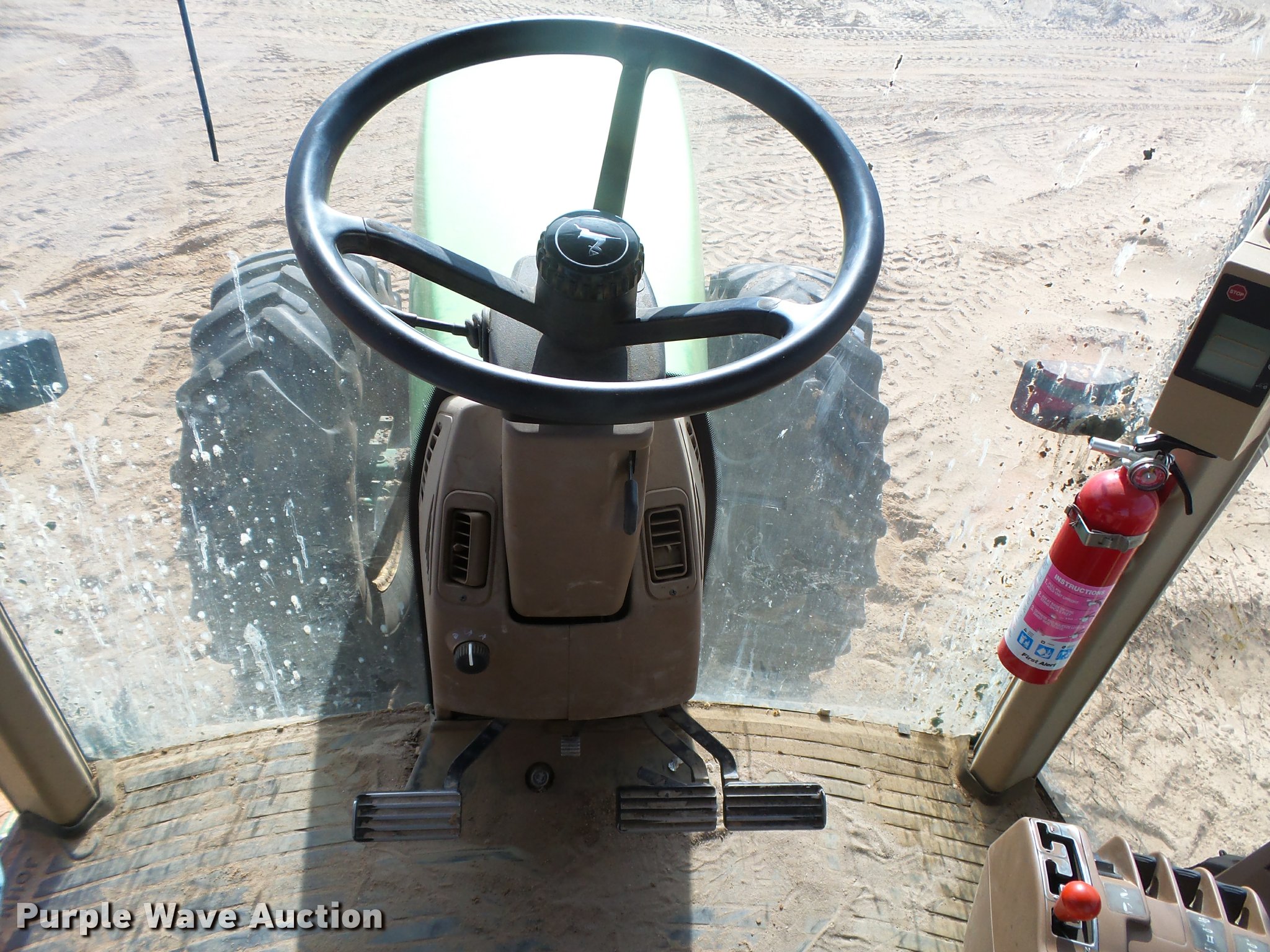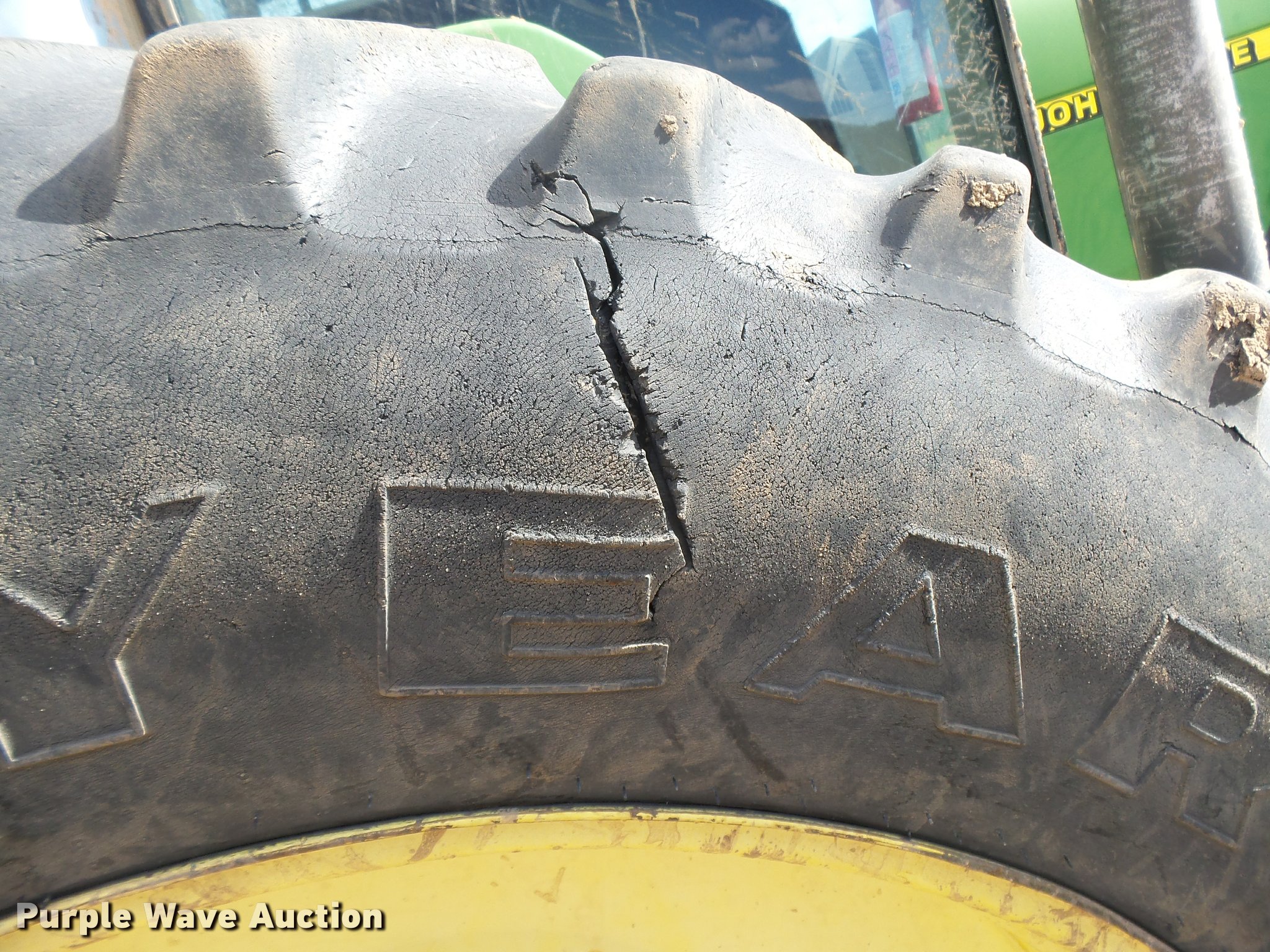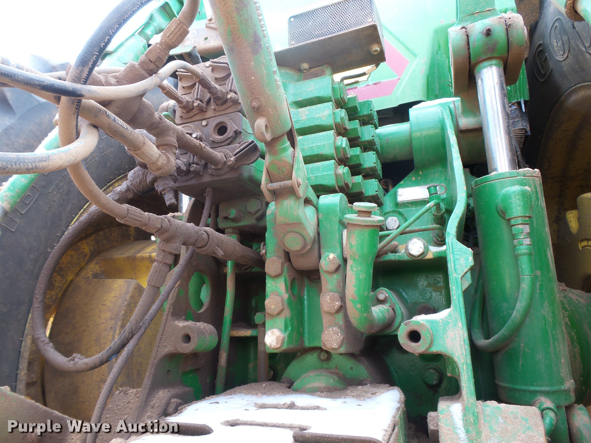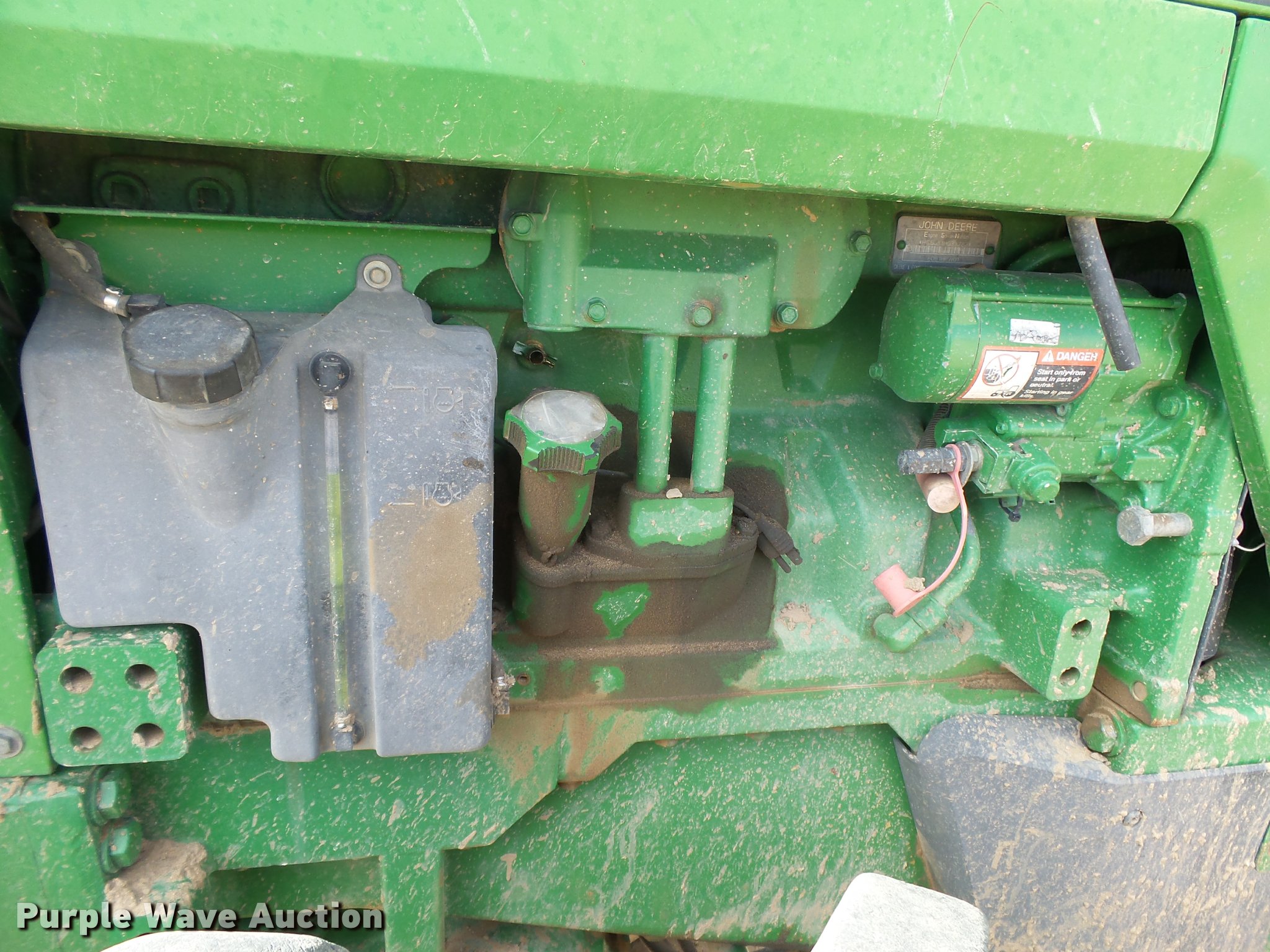 Purple Wave is selling a used Tractor in Oklahoma. This item is a 1998 John Deere 8400 MFWD tractor with the following: 8,168 hours on meter, John Deere 6081HRW01 8.1L six cylinder turbo diesel engine, Powershift transmission, 16F-4R gears, AC and heat, FM, Air suspension seat, Tilt steering wheel, Visors, Three point, Quick attach, Large 1000 PTO, Seven pin outlet, (4) rear hydraulic remote sets, (20) suitcase weights, One inner wheel weight per side, 240/90R30 front tires, 18.4R46 dual rear tires, Serial RW8400P020068