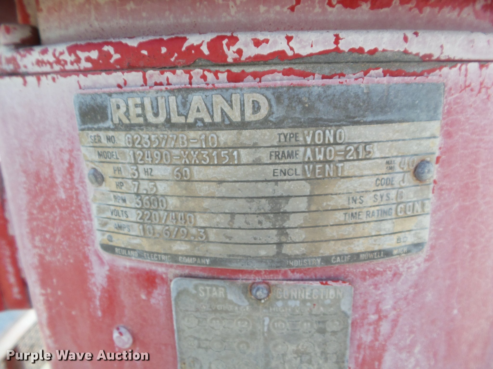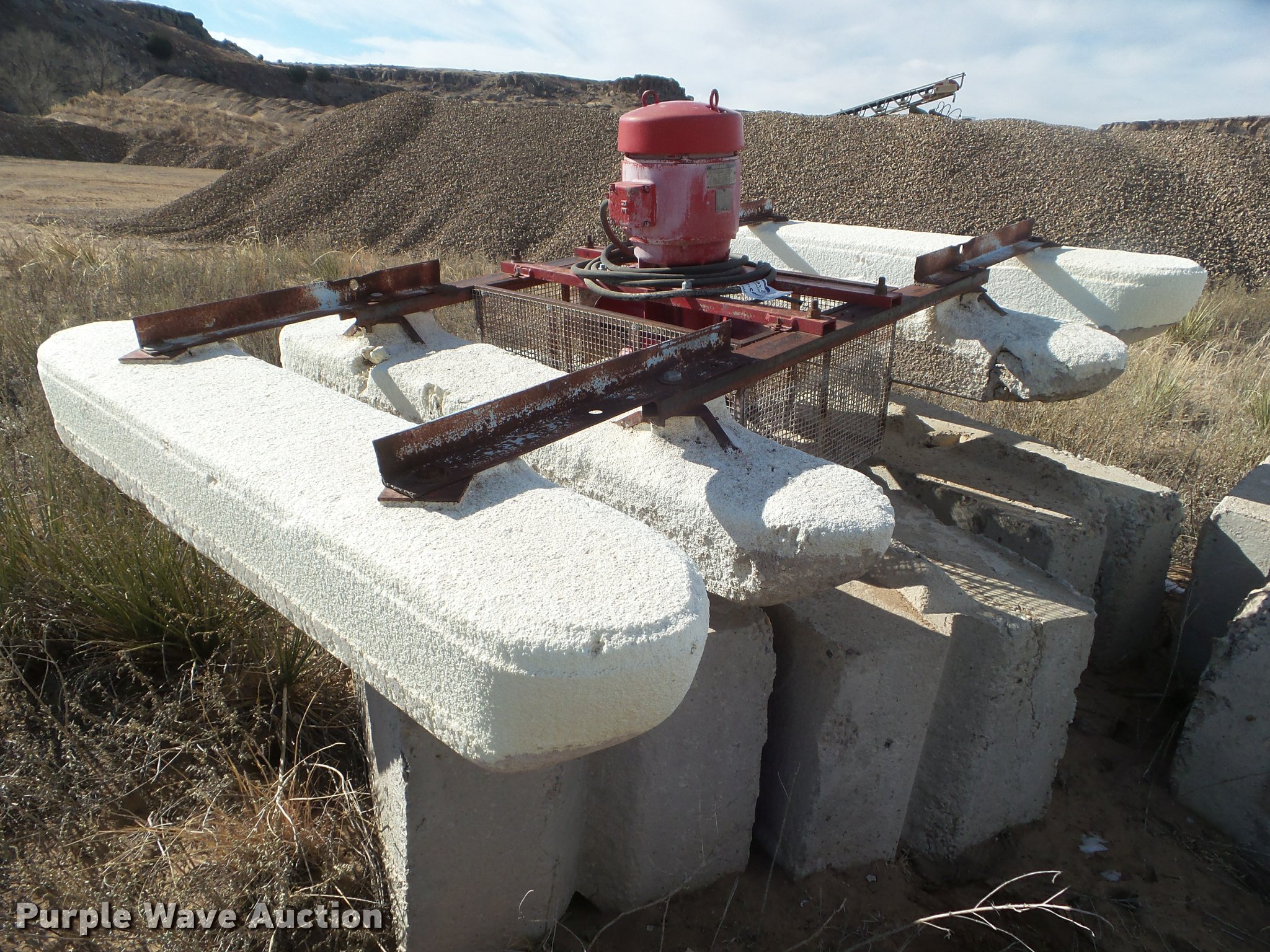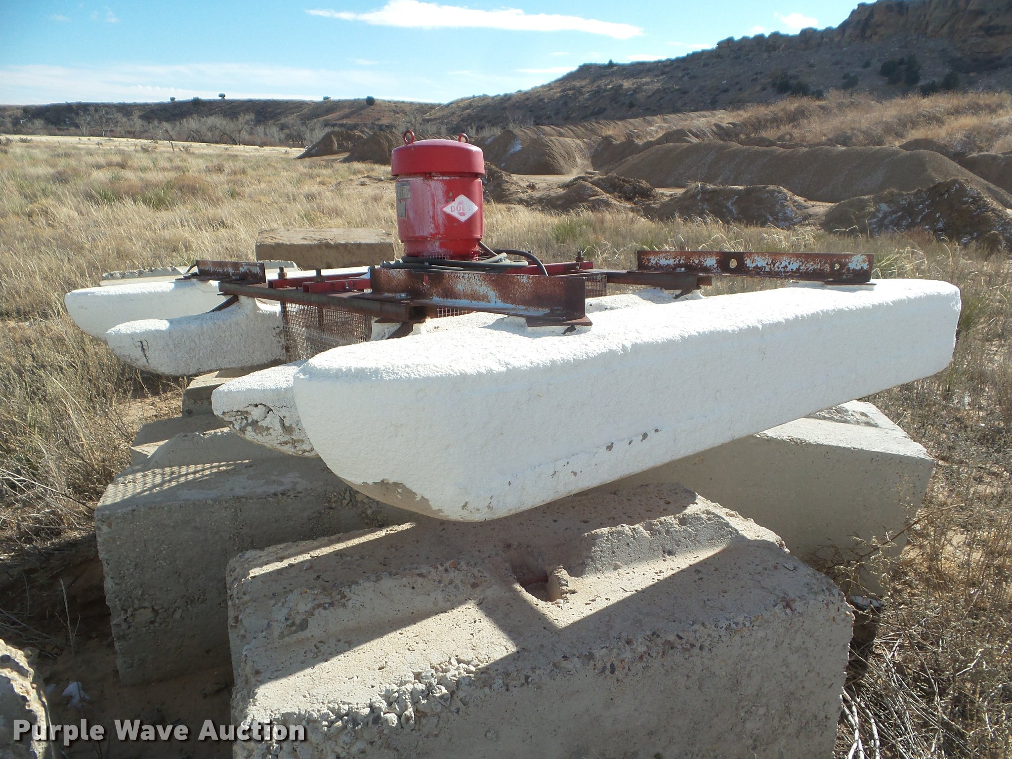 Purple Wave is selling a used Pump in Oklahoma. This item is a Dobbs floating water pump with the following: Reuland electric motor, 7.5 HP, Three phase, 6" tube, (4) foam floats