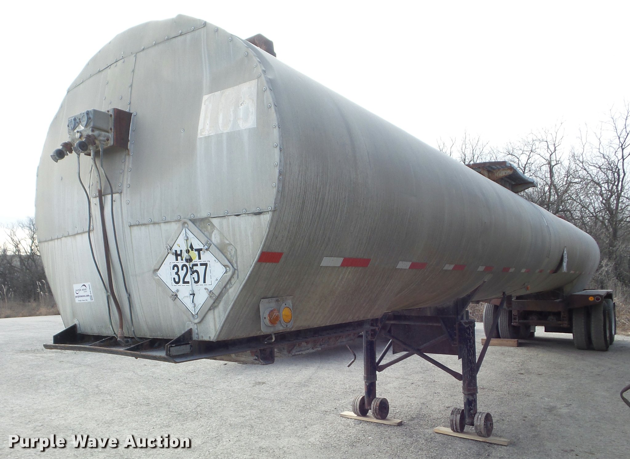 Purple Wave is selling a used Tank Trailer in Kansas. This item is a 1971 Gorbett Bros. asphalt trailer with the following: 42'L x 8'W, Stainless steel tank, 6,500 gallon capacity, Two baffles, Dual leg landing gear, Fifth wheel plate, Tandem axle, Spring suspension, Air brakes, Steel wheels, 11R22.5 tires, GVWR 60,000 lbs