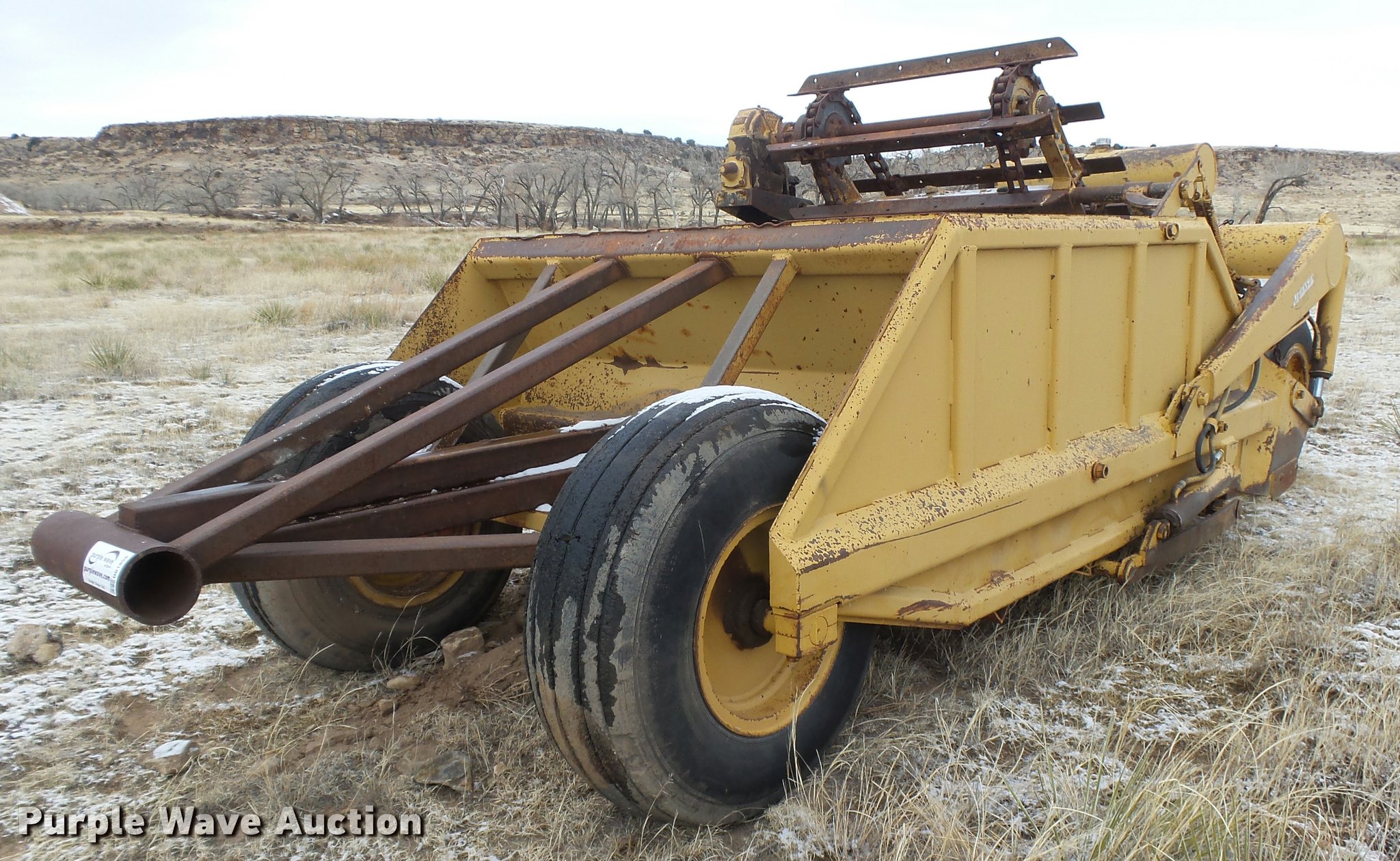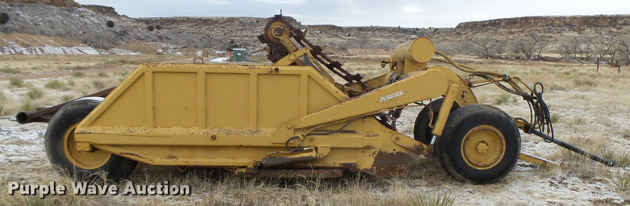 Purple Wave is selling a used Pull Type Scraper in Oklahoma. This item is a Johnson elevating scraper with the following: 84"W bowl, Hydraulic lift, Hydraulic pan, 1 3/4" 1000 PTO, Pin hitch, 46 x 16 tires